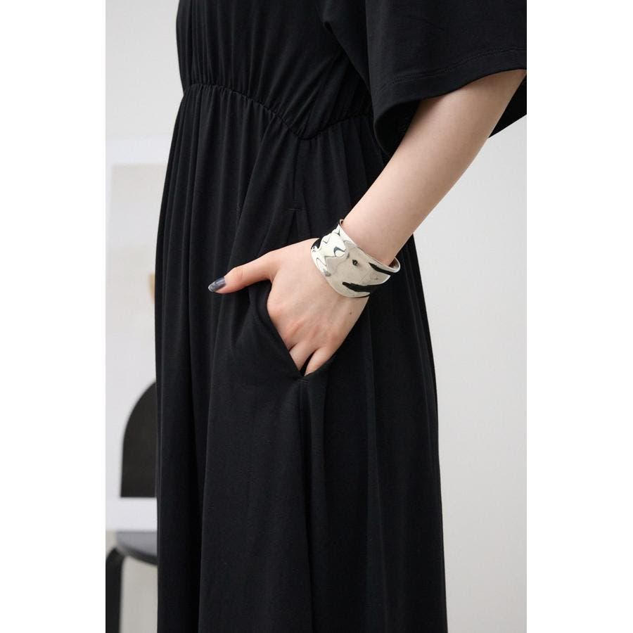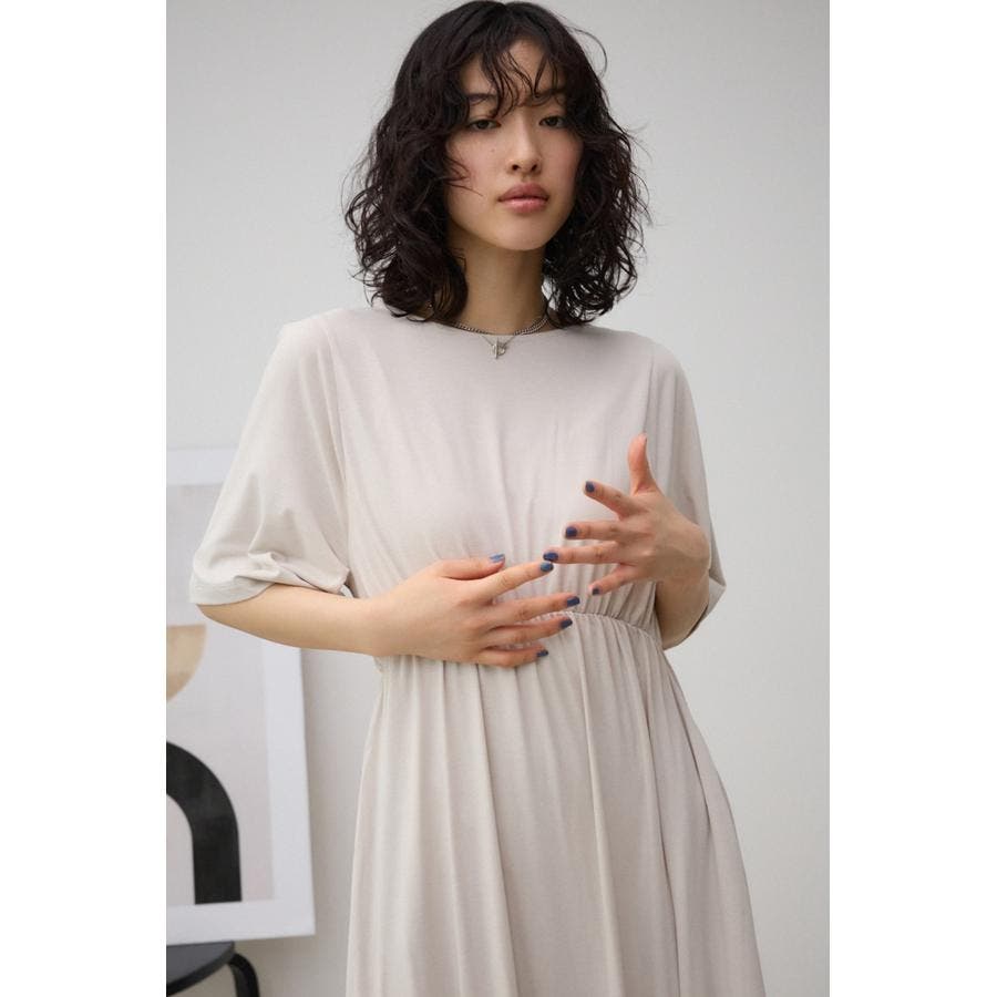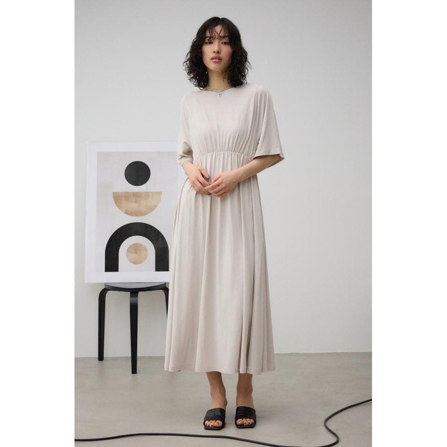 落ち感のある素材で、リラックスして着用出来、スタイルアップが出来るワンピース。