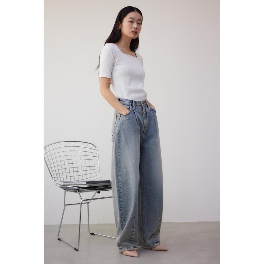 ・立体的なシルエットがポイントのタックカーブデニム。