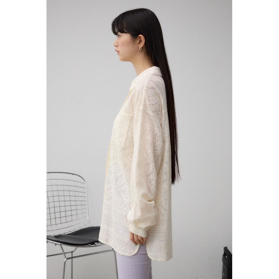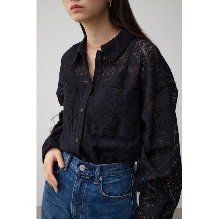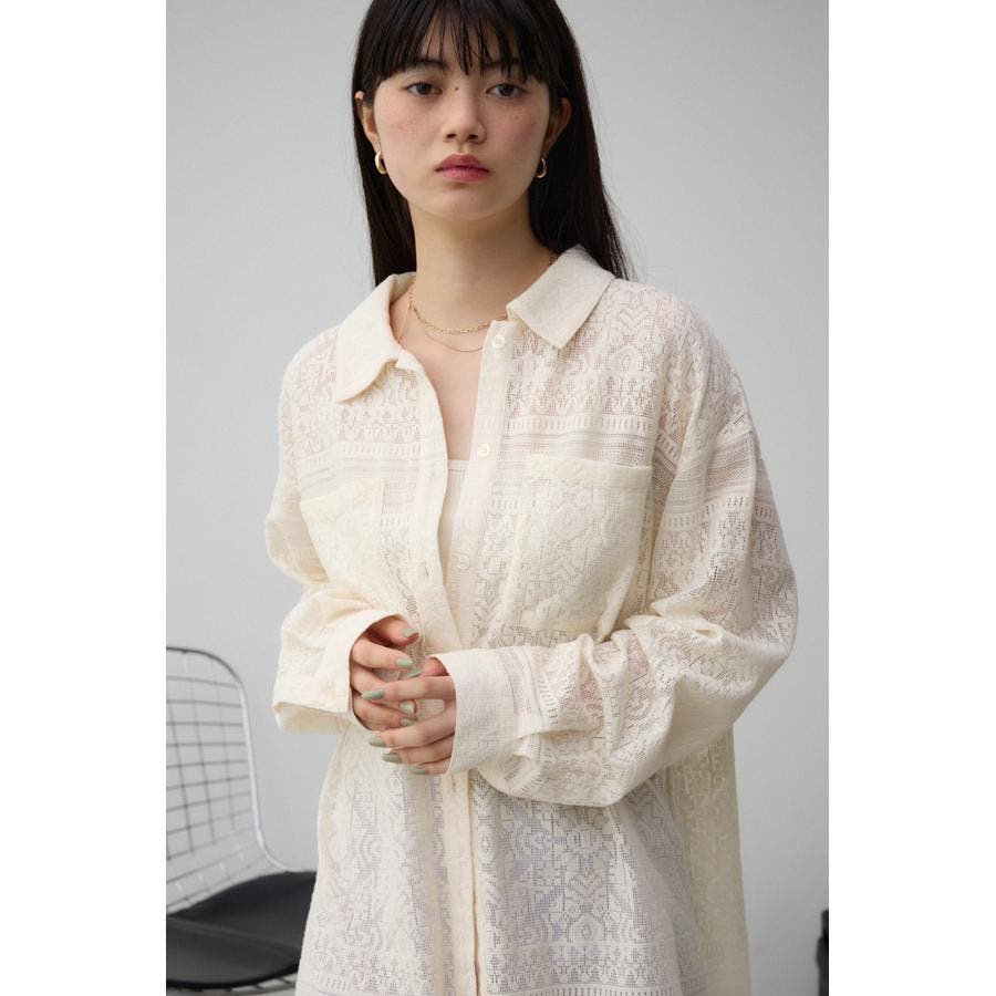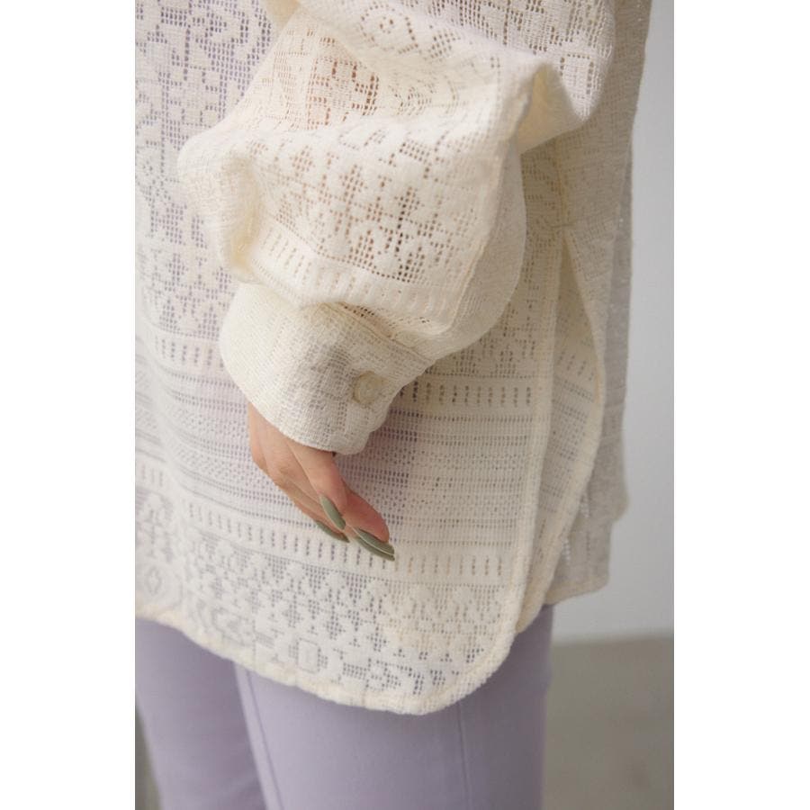 ■商品(デザイン)ポイント: 幾何学柄風のレースを使用したシャツ。