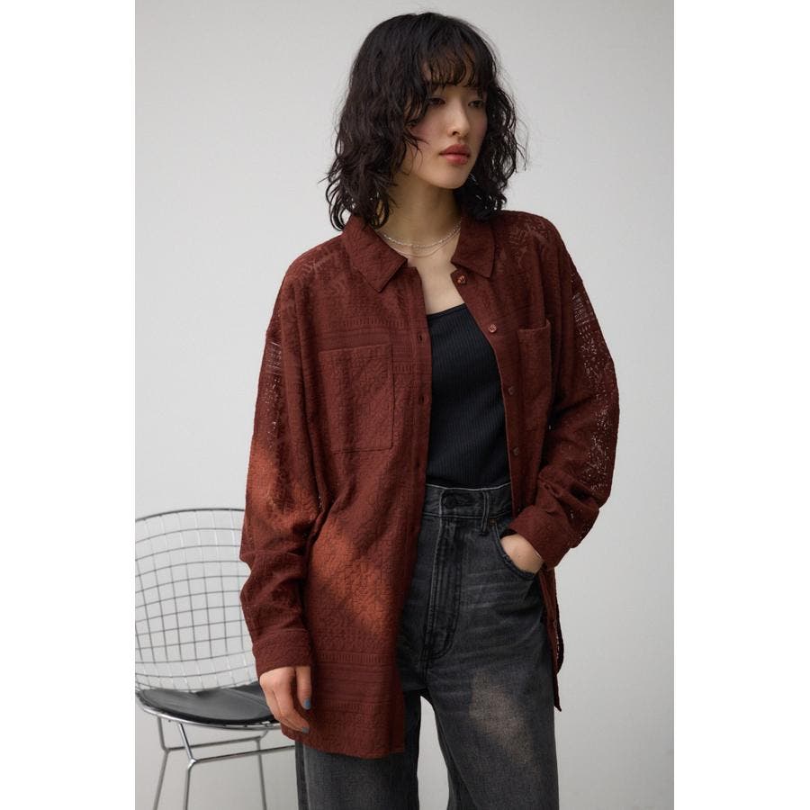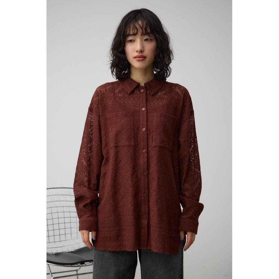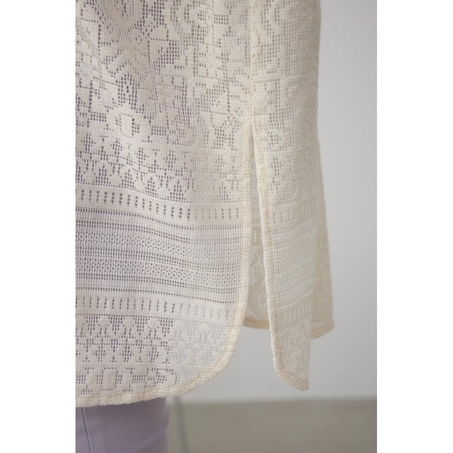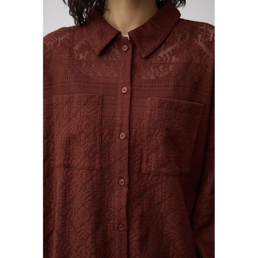 ■商品(デザイン)ポイント: 幾何学柄風のレースを使用したシャツ。
