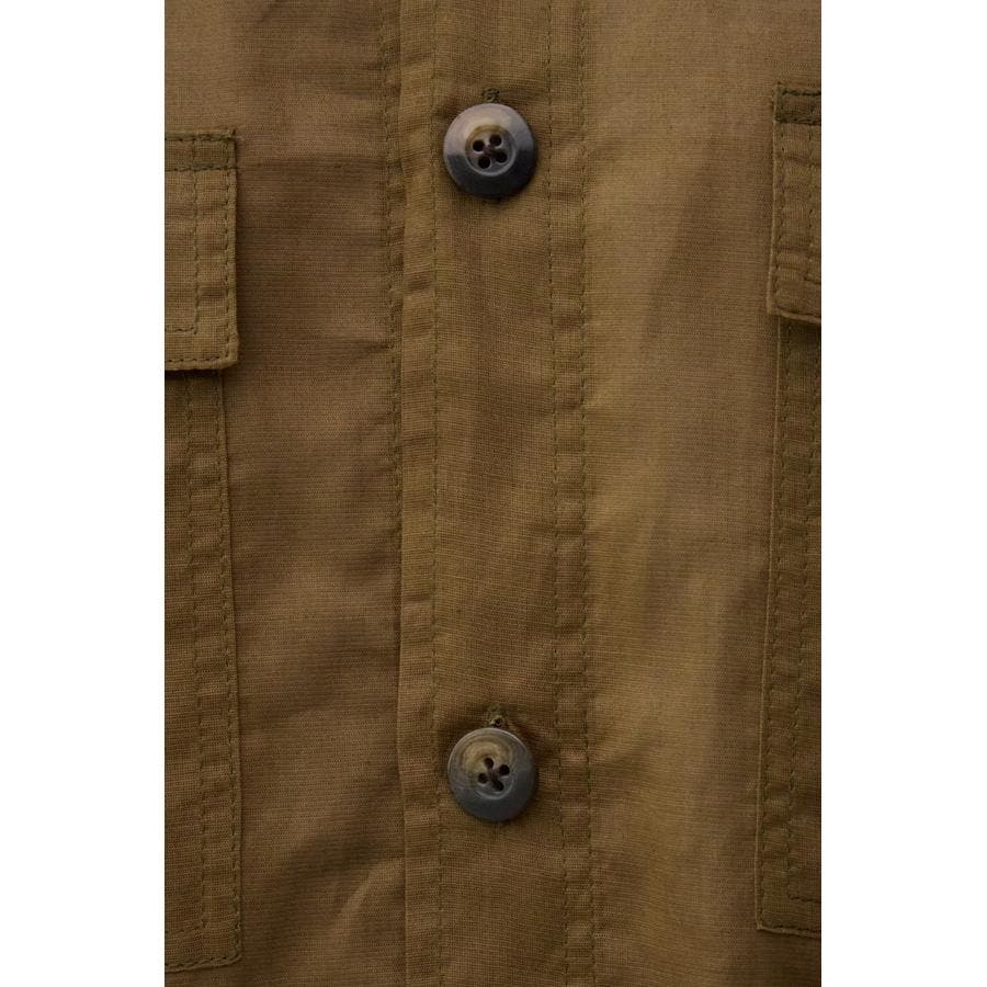 アウトポケットがアクセントのミリタリーシャツデザイン。