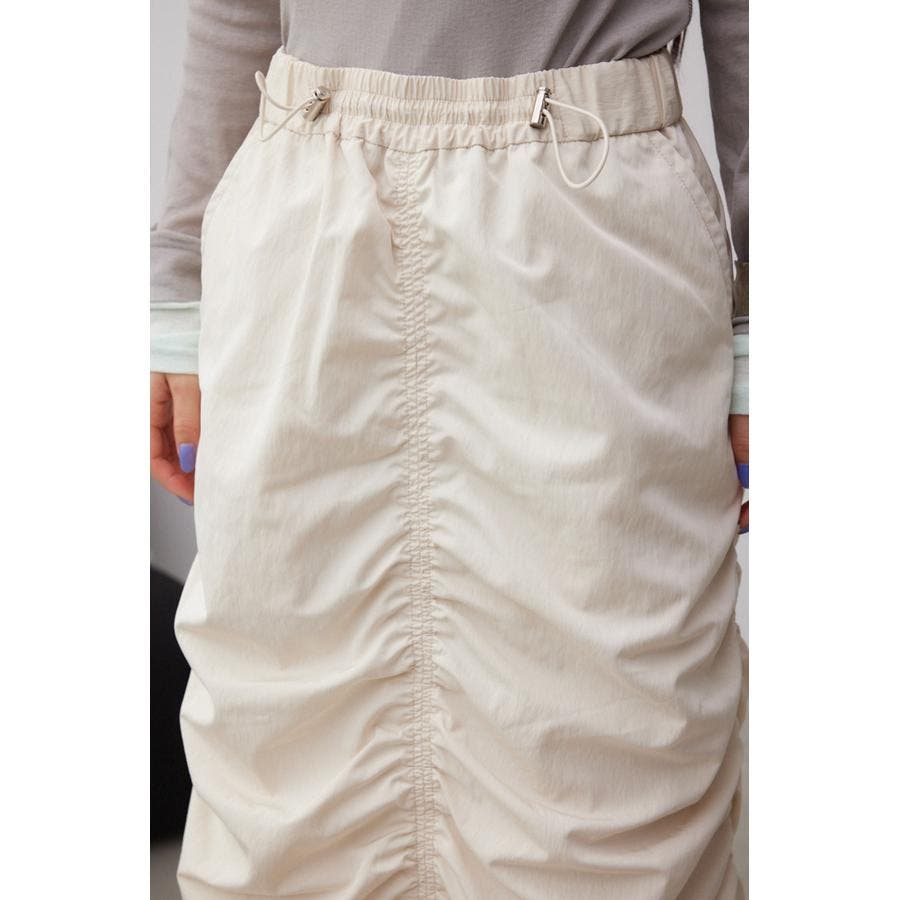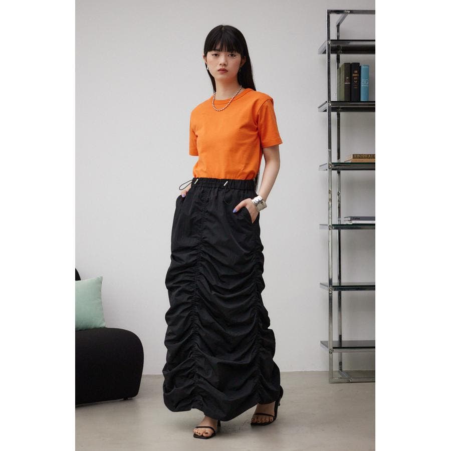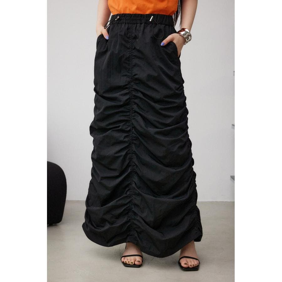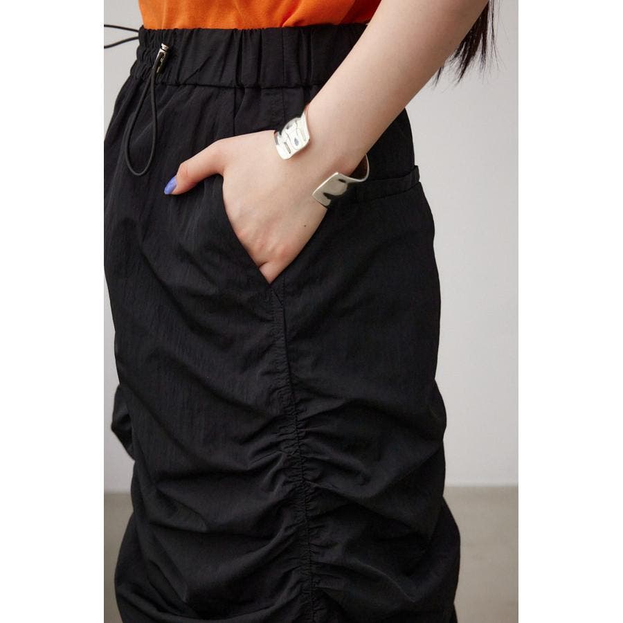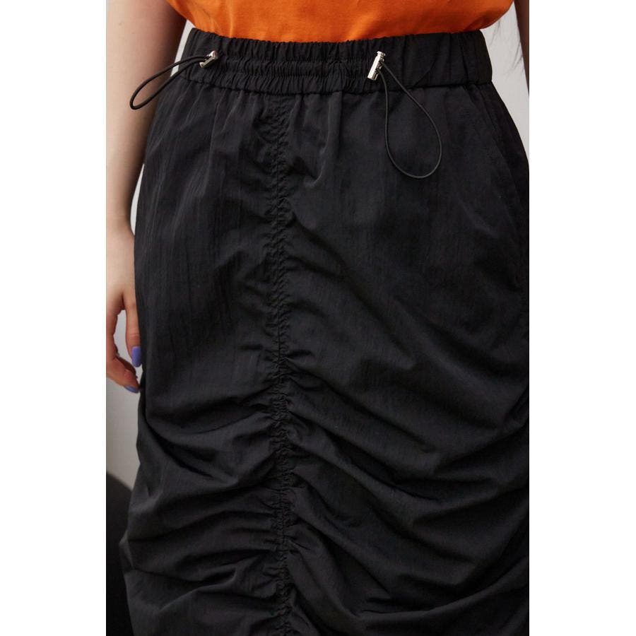■商品(デザイン)ポイント: マットな表面感のナイロン素材を使用した、デザインナロースカートです。
