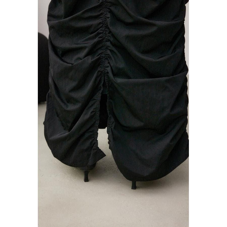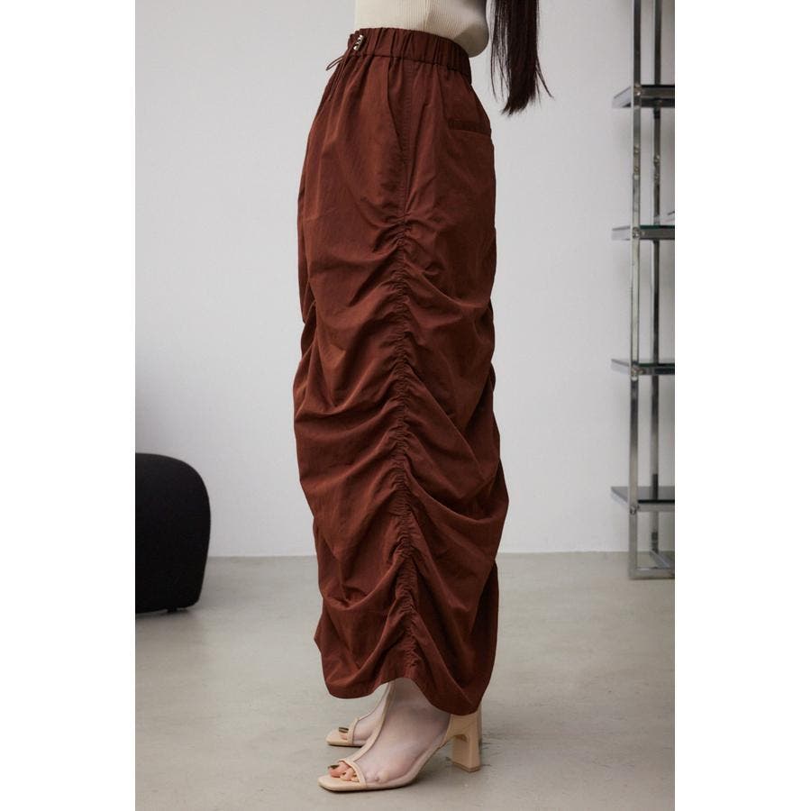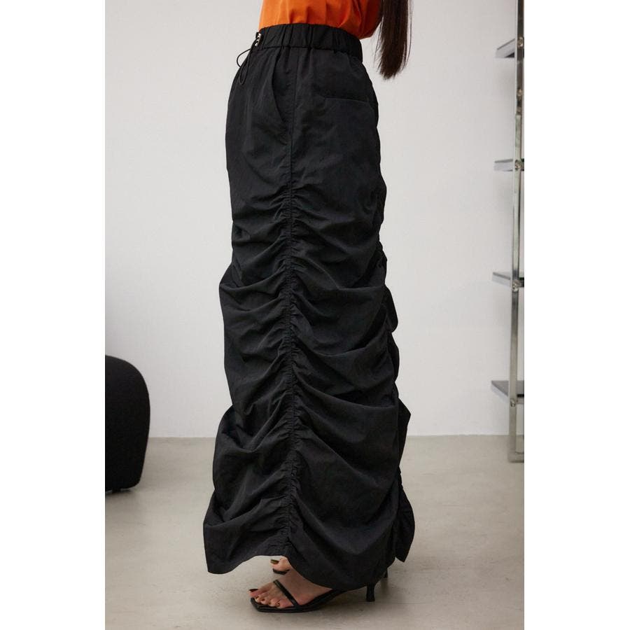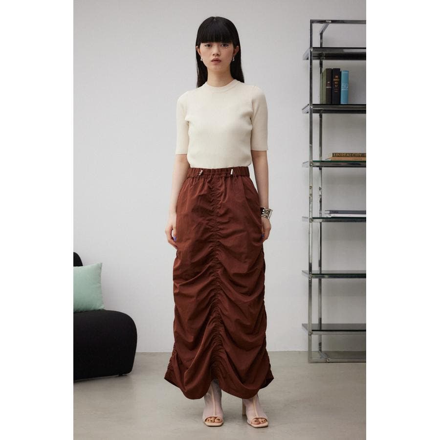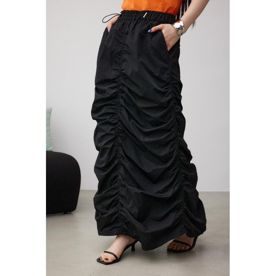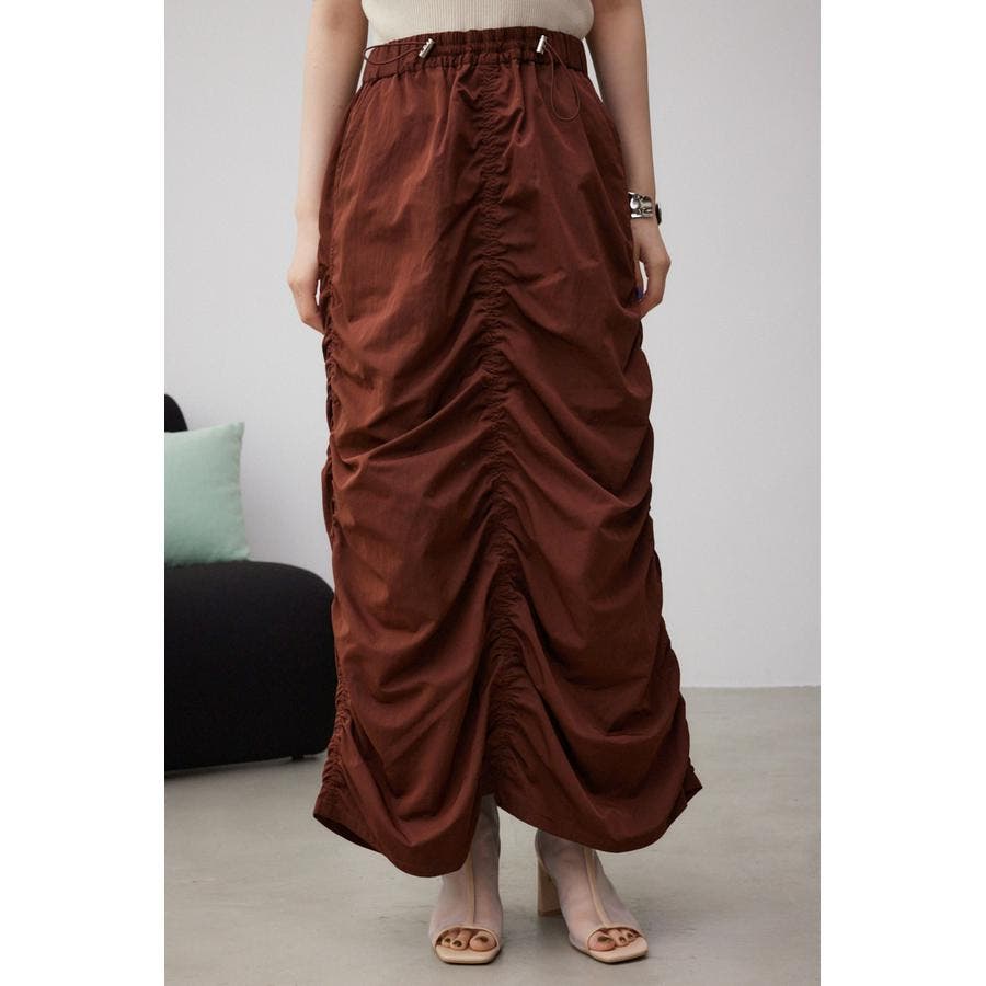 ■商品(デザイン)ポイント: マットな表面感のナイロン素材を使用した、デザインナロースカートです。