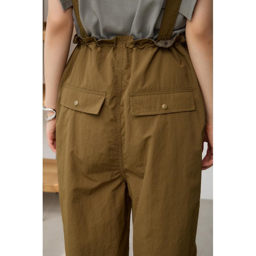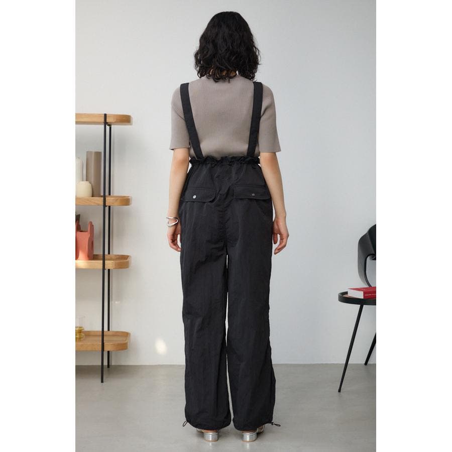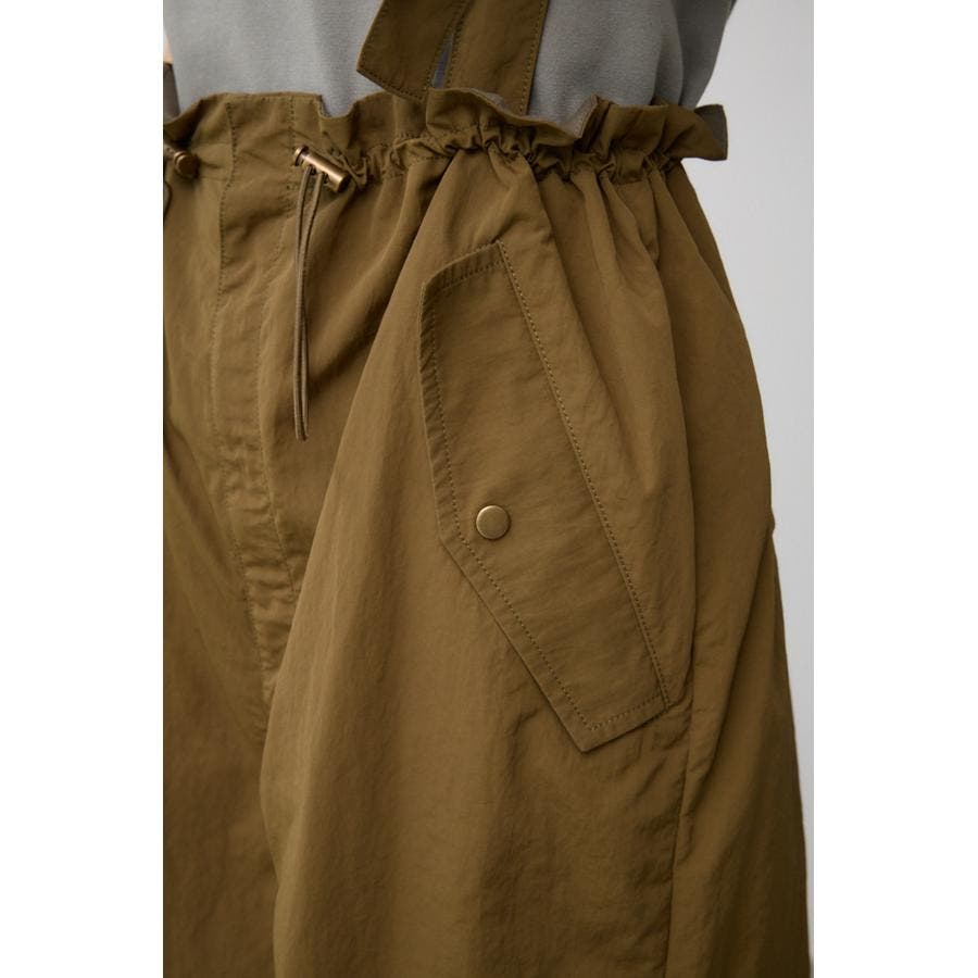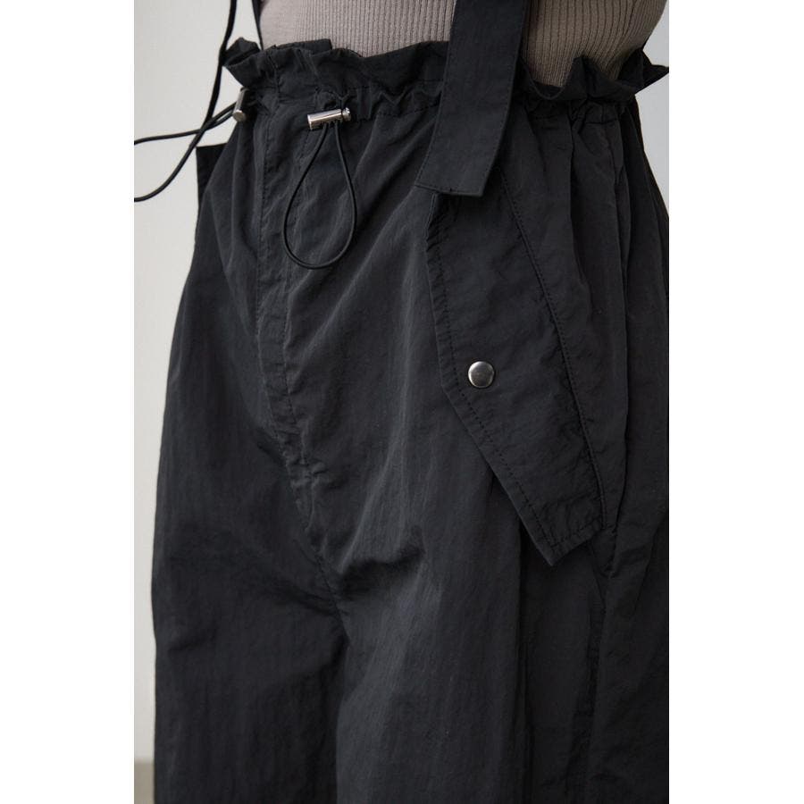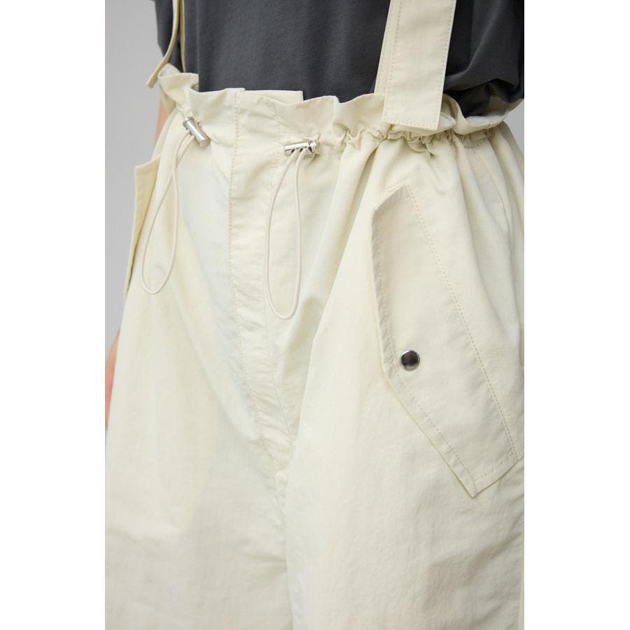 ■商品(デザイン)ポイント : さらりとした風合いのナイロン素材を使用したサスペンダー付パンツです。