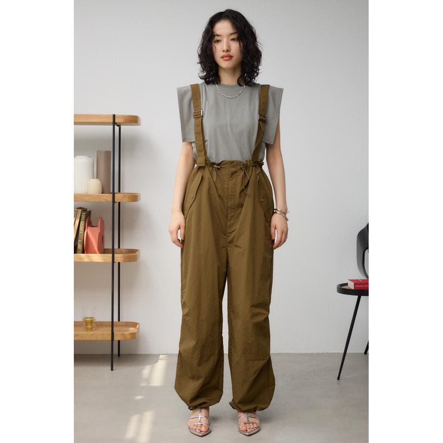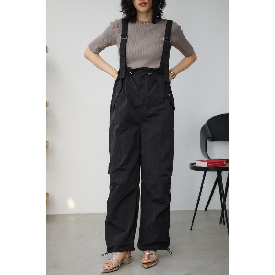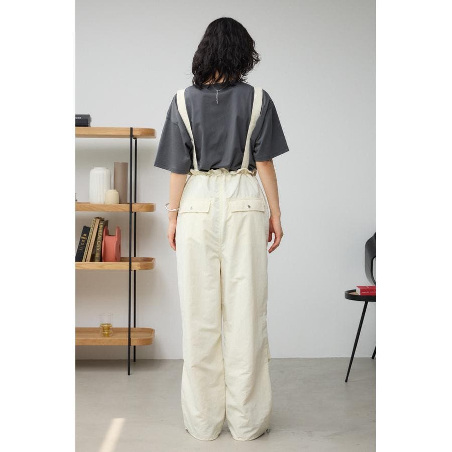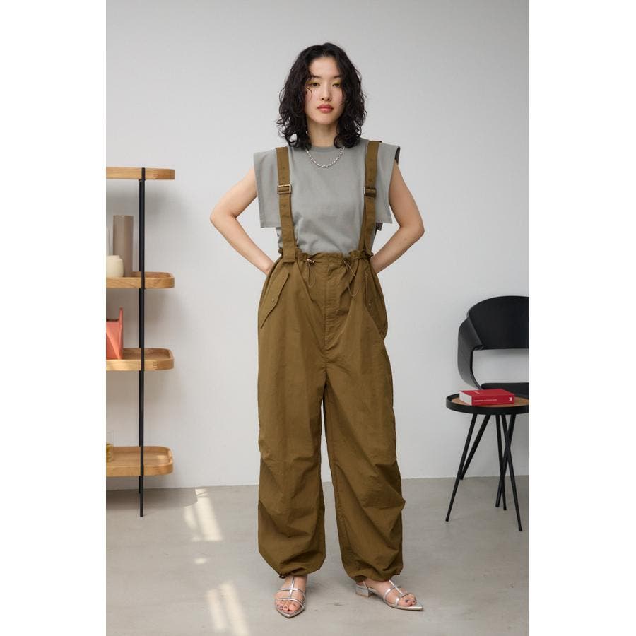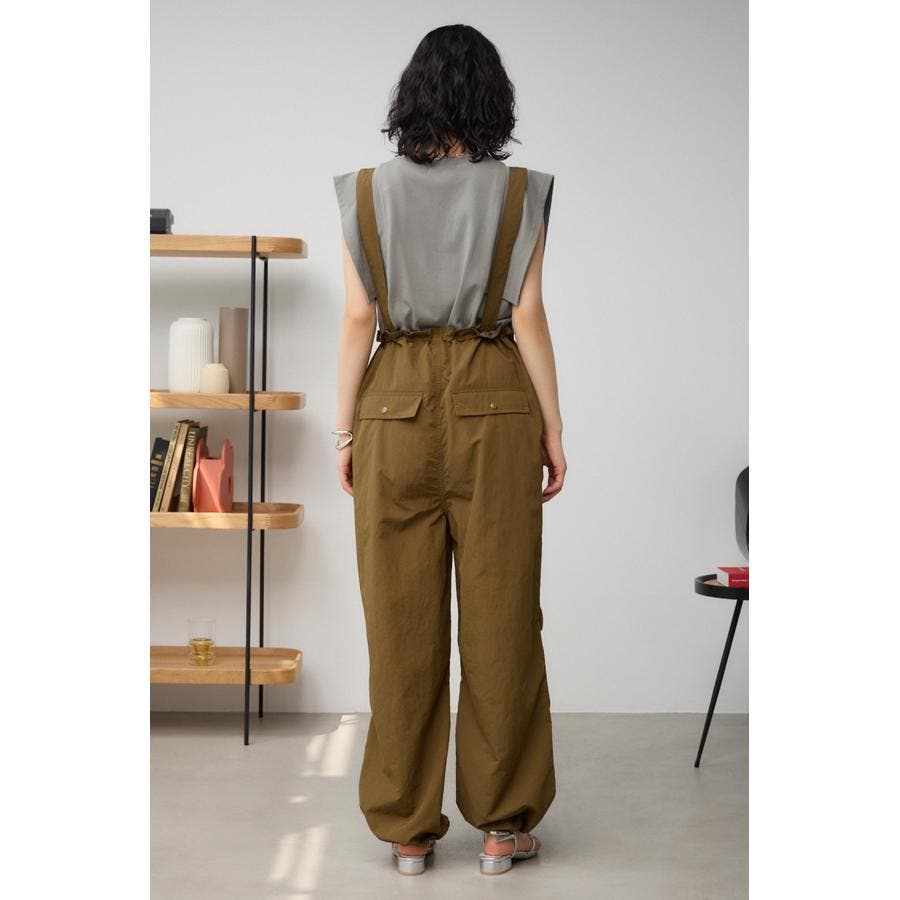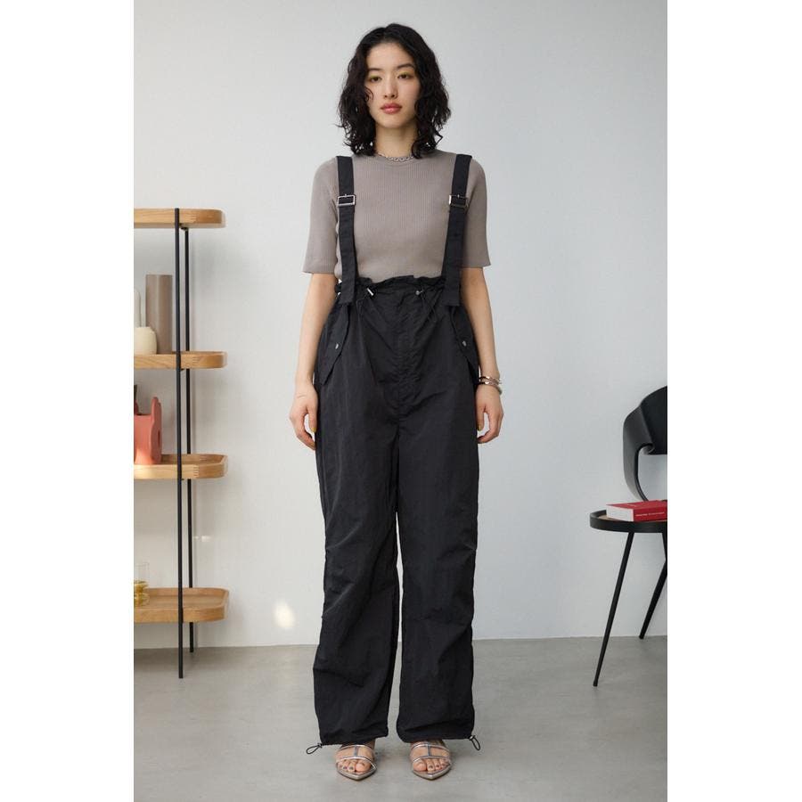 ■商品(デザイン)ポイント : さらりとした風合いのナイロン素材を使用したサスペンダー付パンツです。