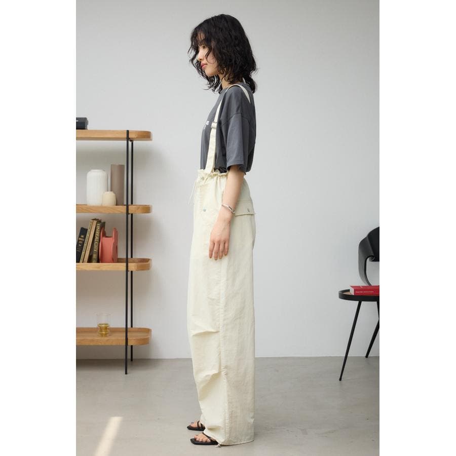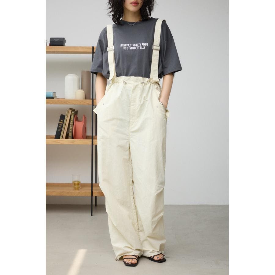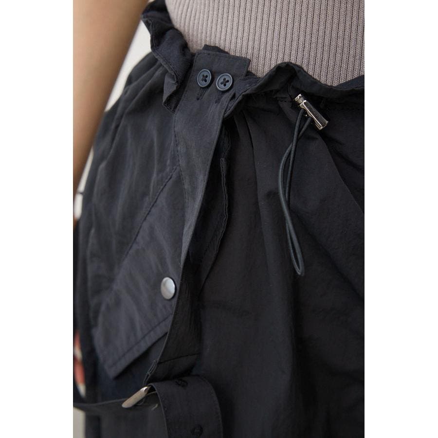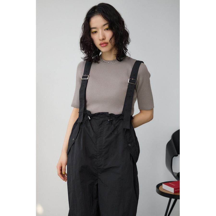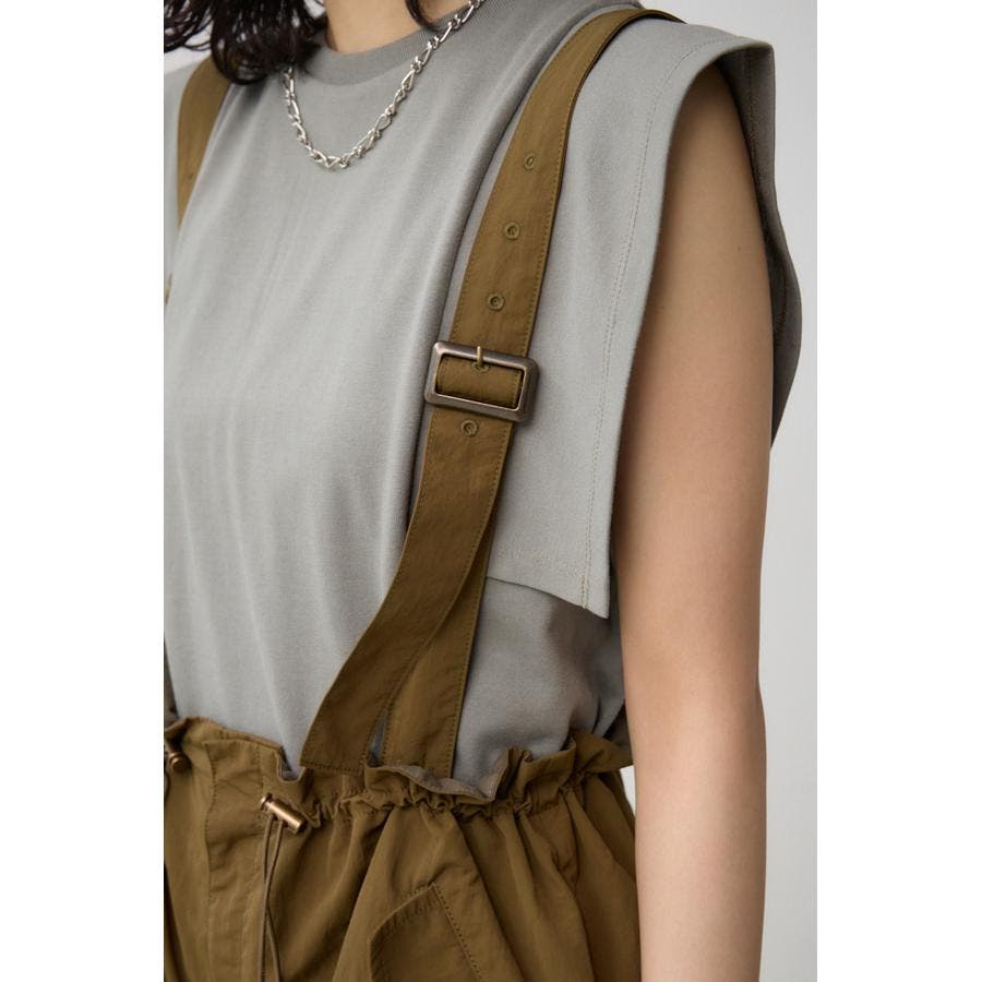 ■商品(デザイン)ポイント : さらりとした風合いのナイロン素材を使用したサスペンダー付パンツです。
