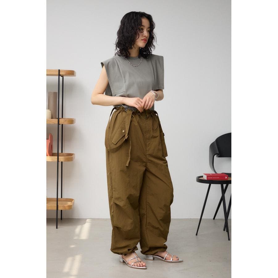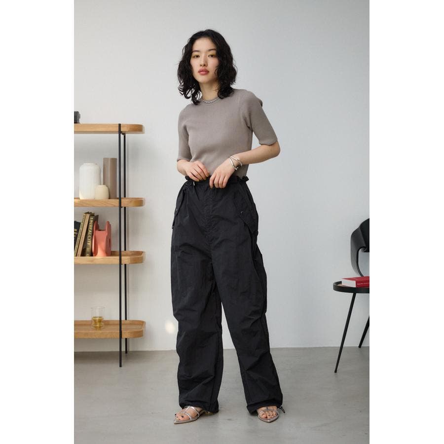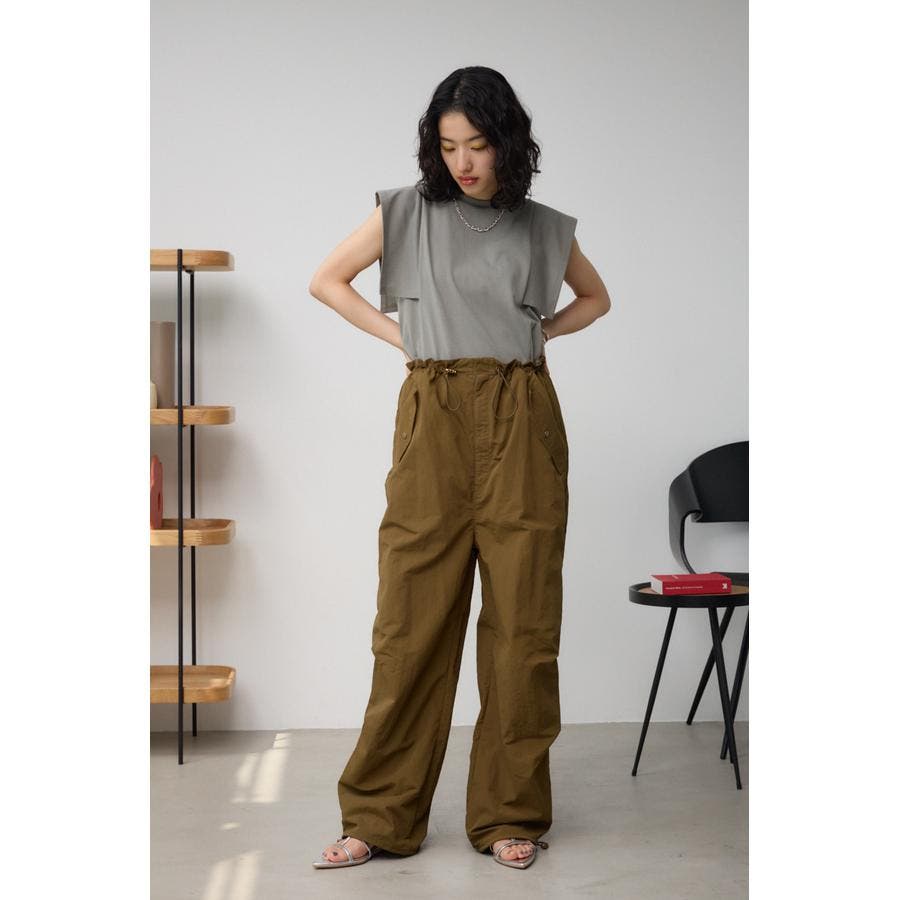 ■商品ディティール :ゆったりとしたワイドレッグに、ウエストと裾のカジュアルなドローコードがポイント。
