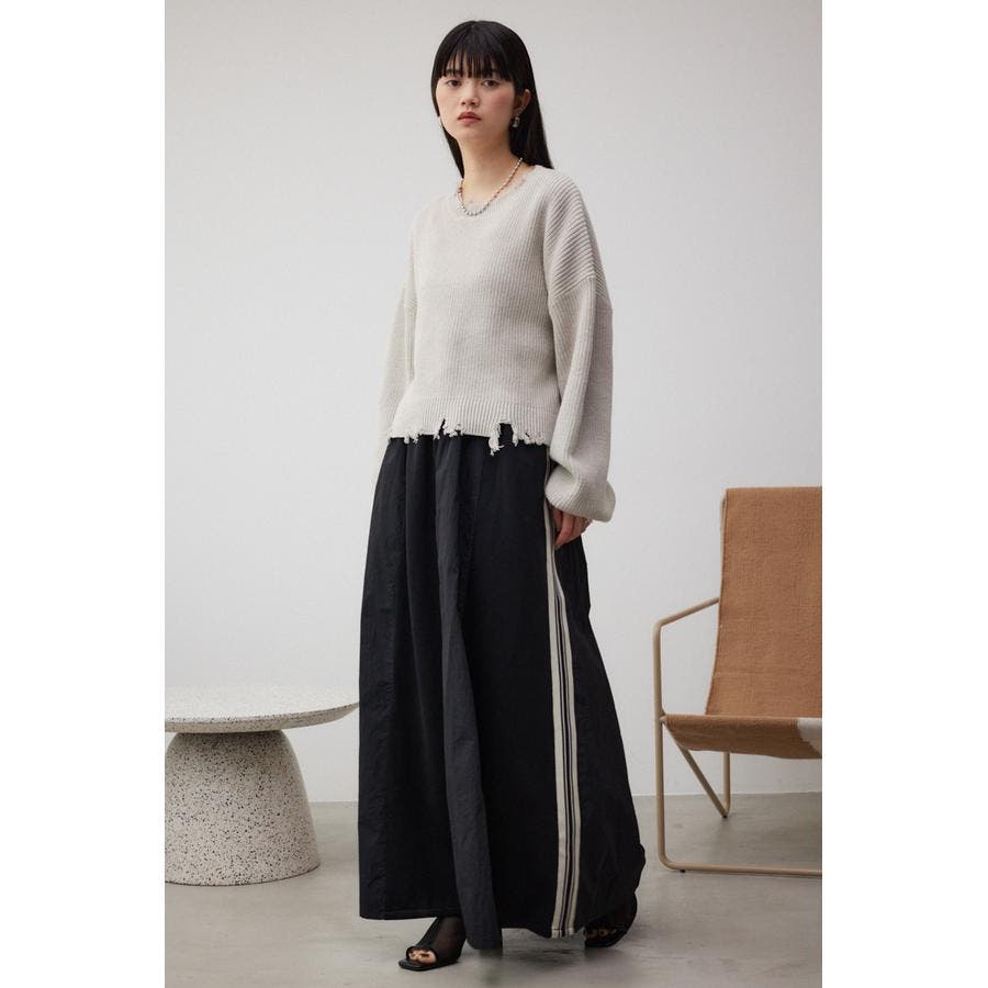 ・トレンドのサイドラインデザインを施した、マキシ丈のフレアスカートです。
