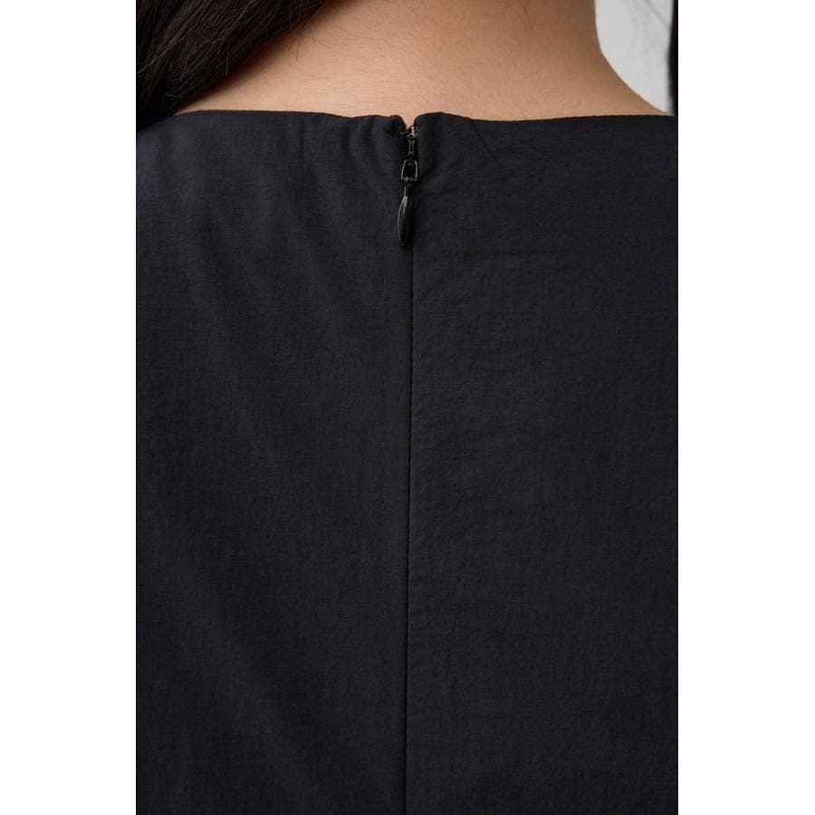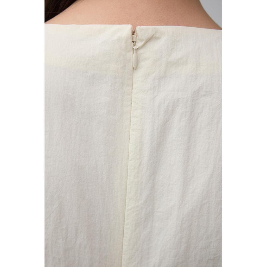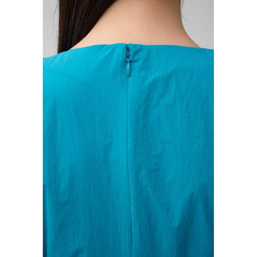 ■商品ディティール:ネック、上身はややタイトでボトムはボリュームのあるシルエット。