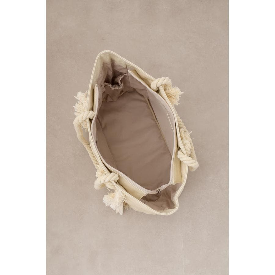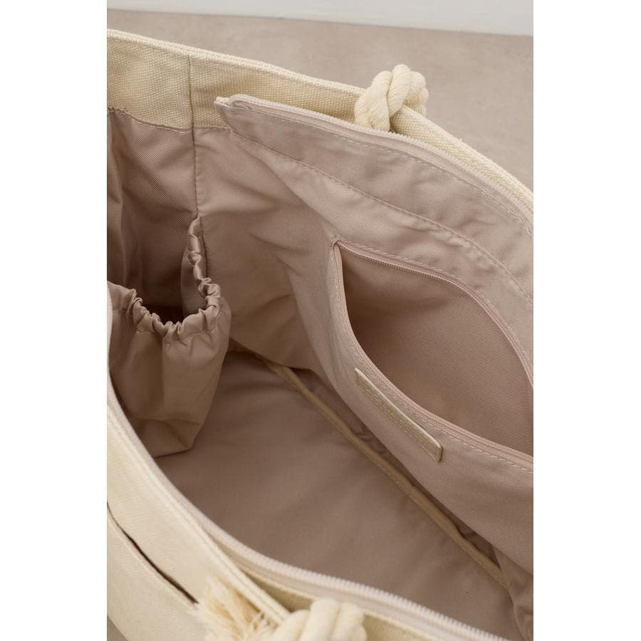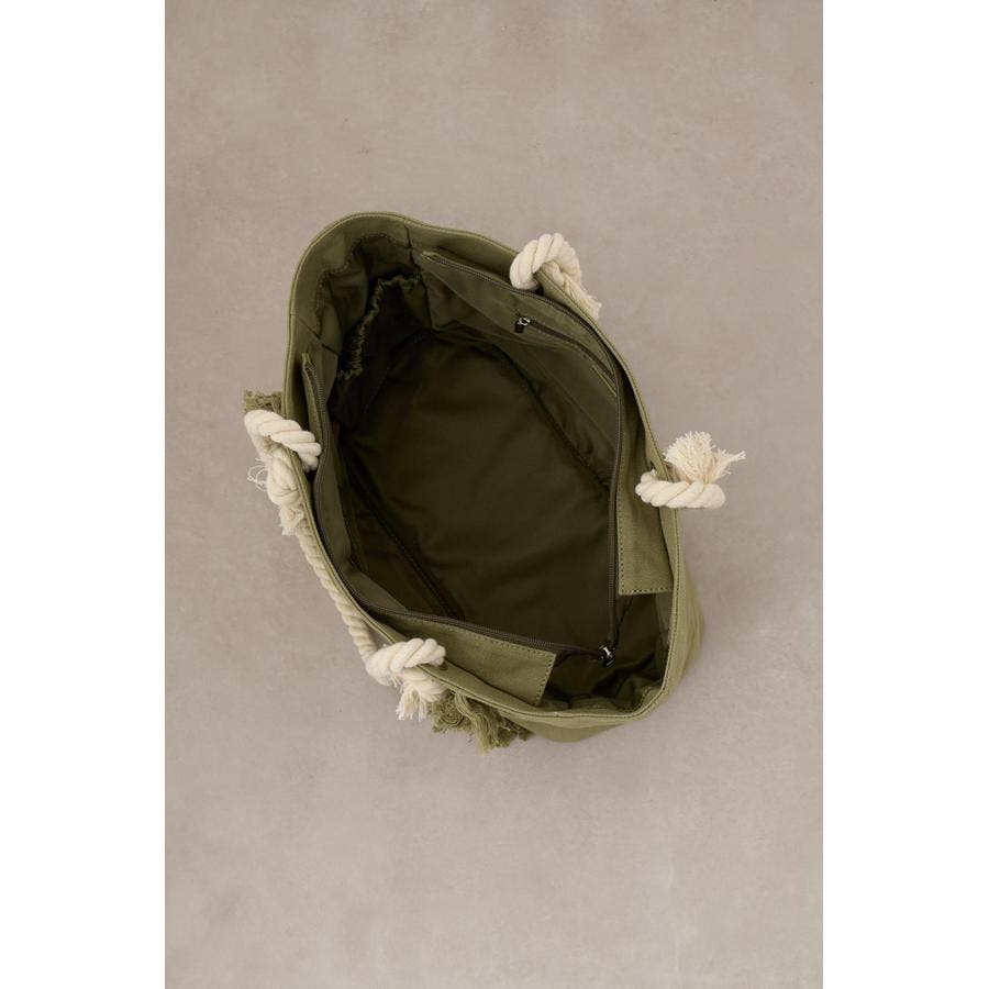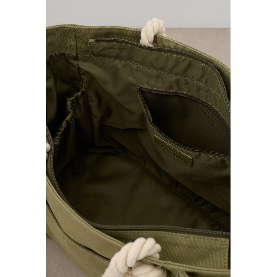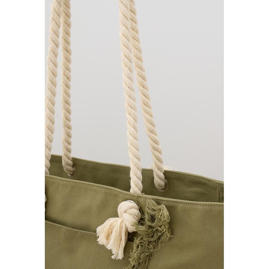 ウォッシュ感のあるキャンバス素材とロープの持ち手の組み合わせが季節感を感じられるデザイン。