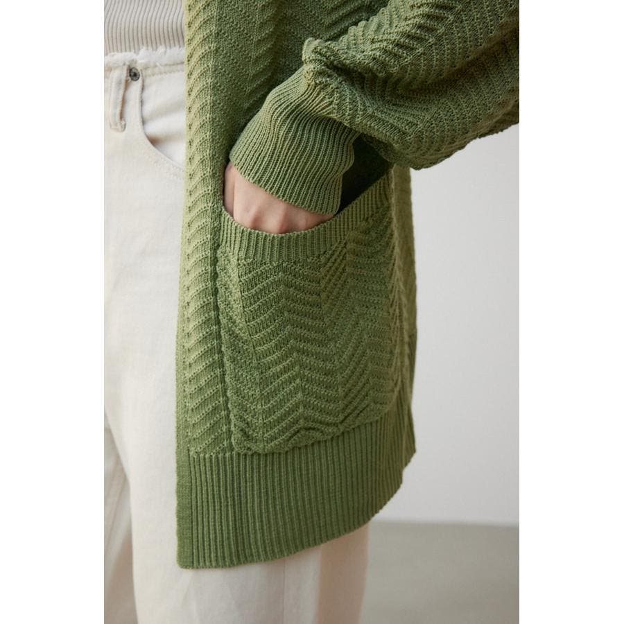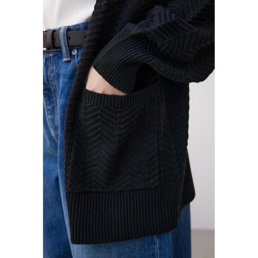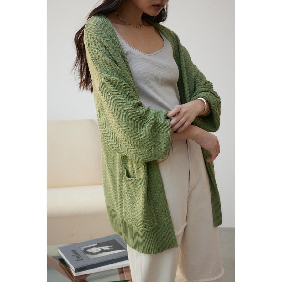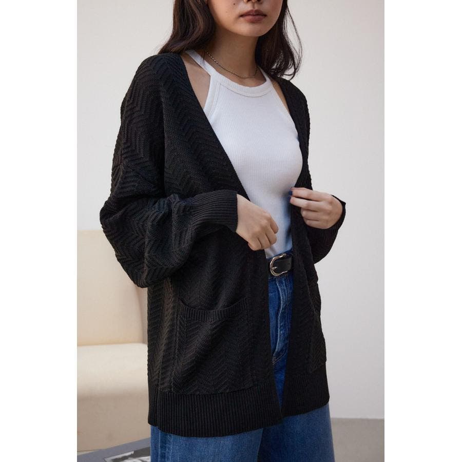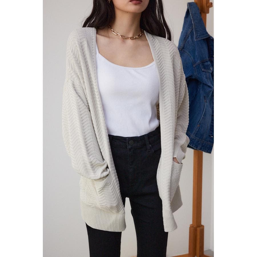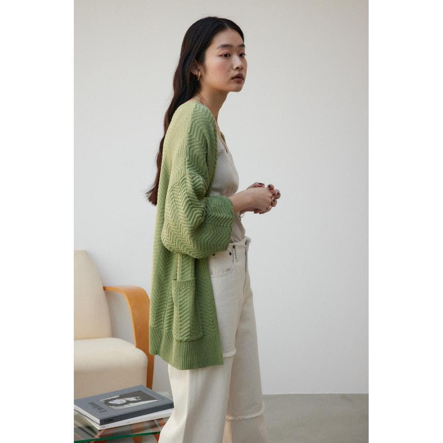 ・さらっと羽織るだけでサマになるヘリンボーン柄のニットカーディガンです。