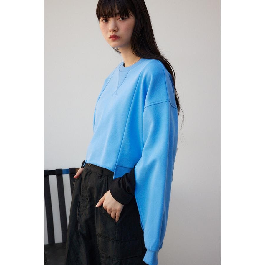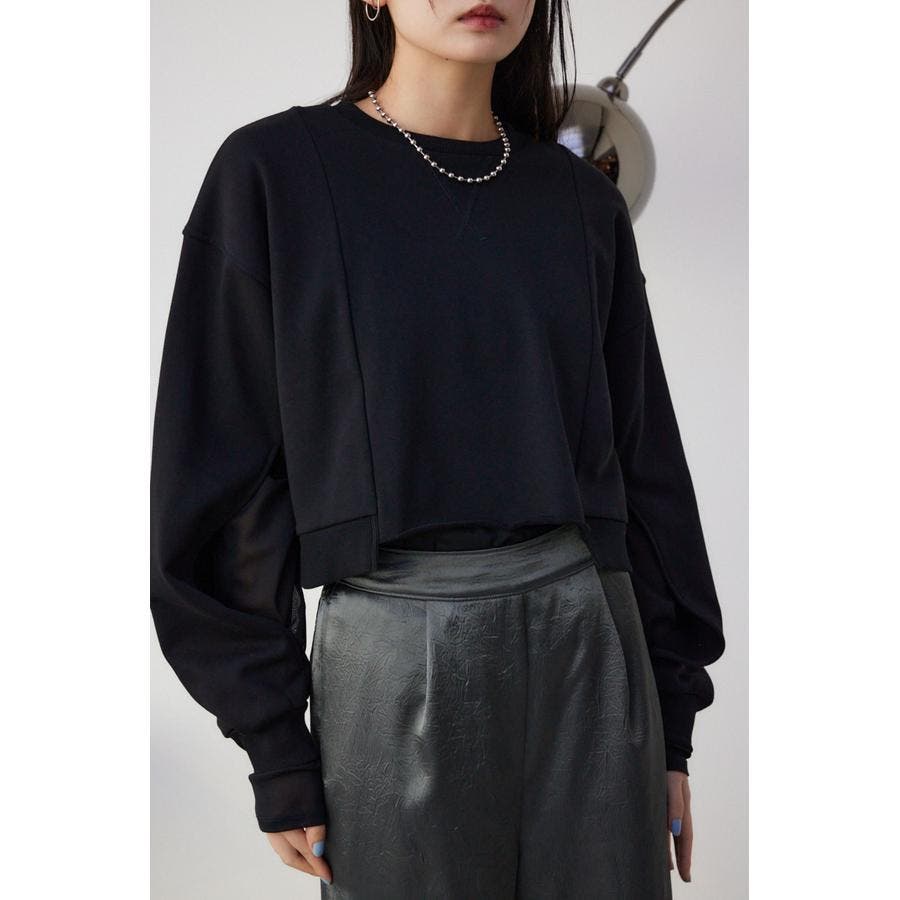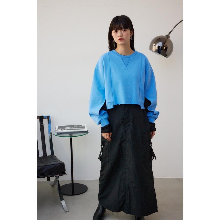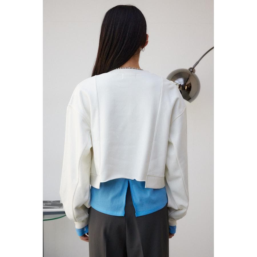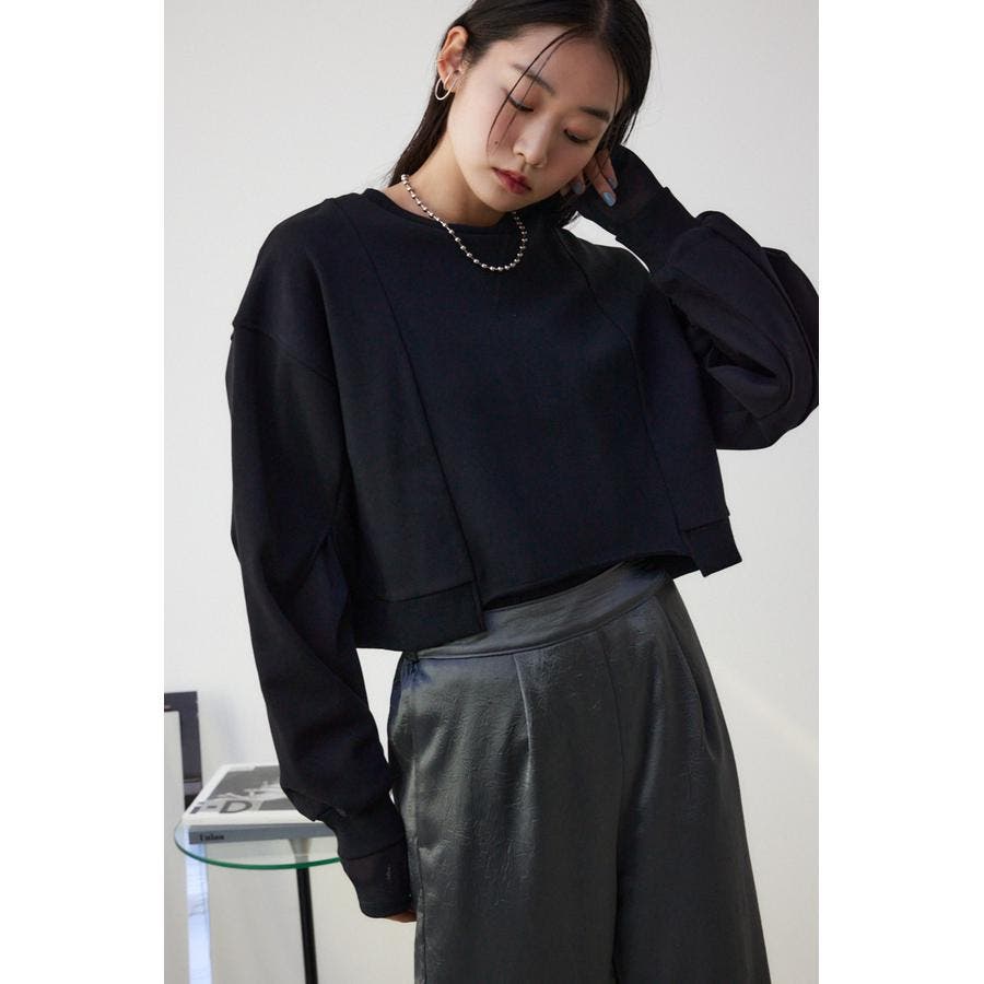 ・トレンドのコンパクトなクロップド丈に、身頃には切り替えデザインを施しました。