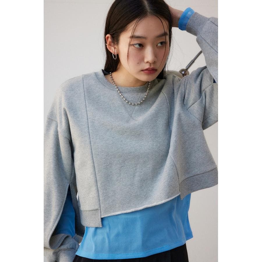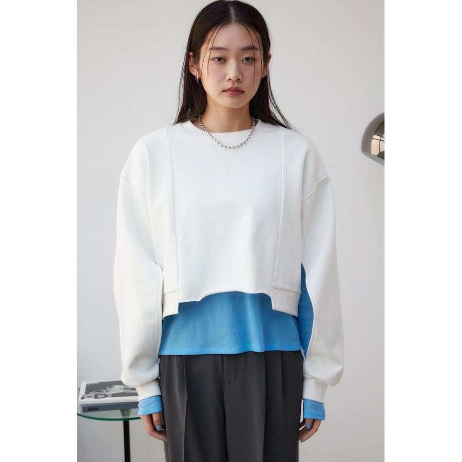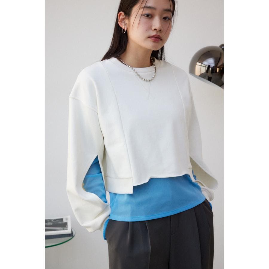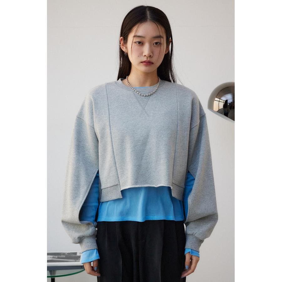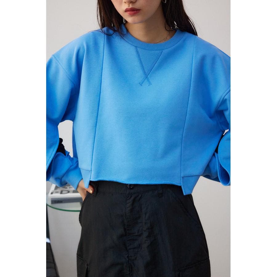 ・トレンドのコンパクトなクロップド丈に、身頃には切り替えデザインを施しました。
