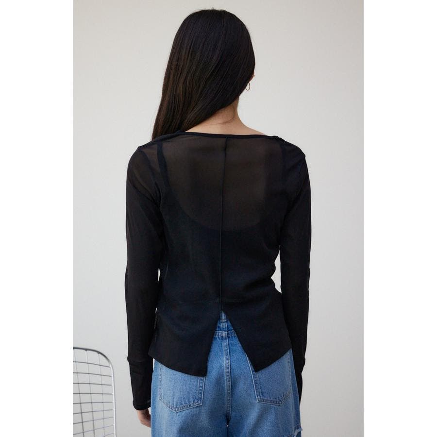 バックスリットシアーロングトップス