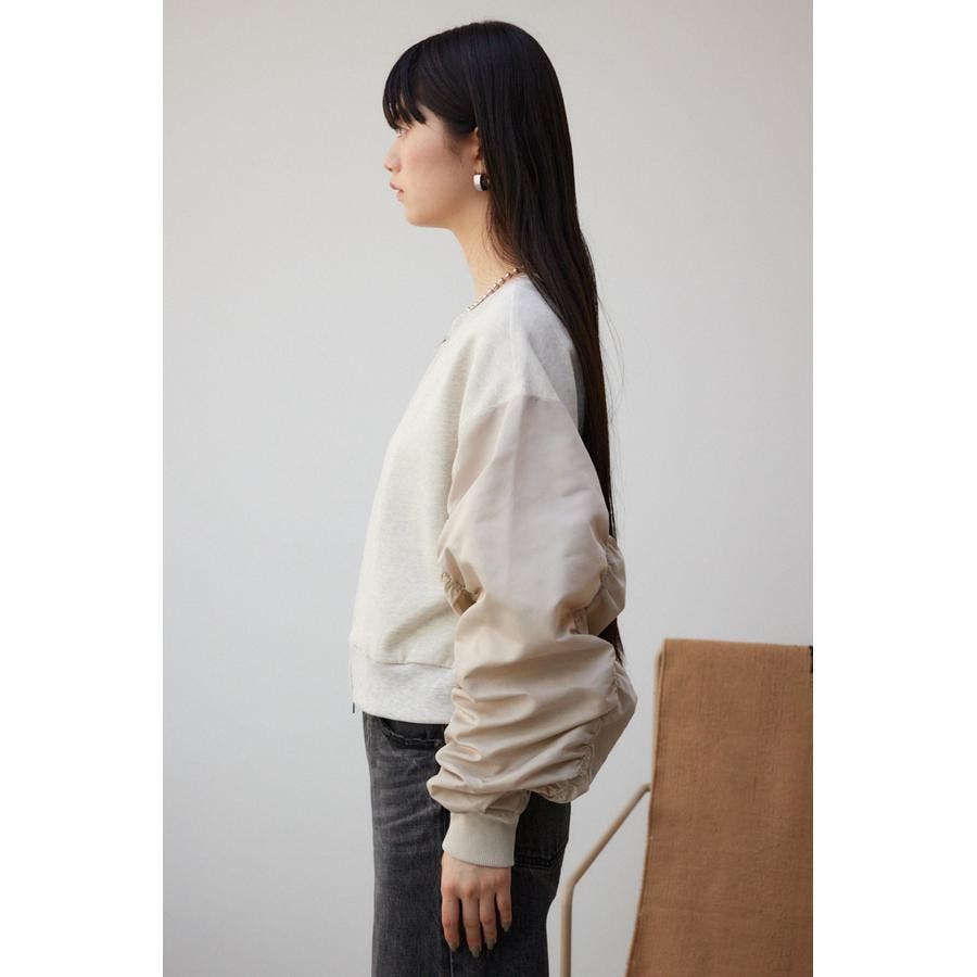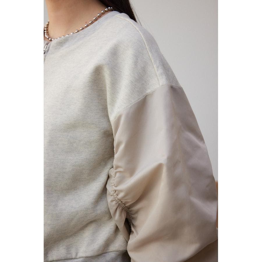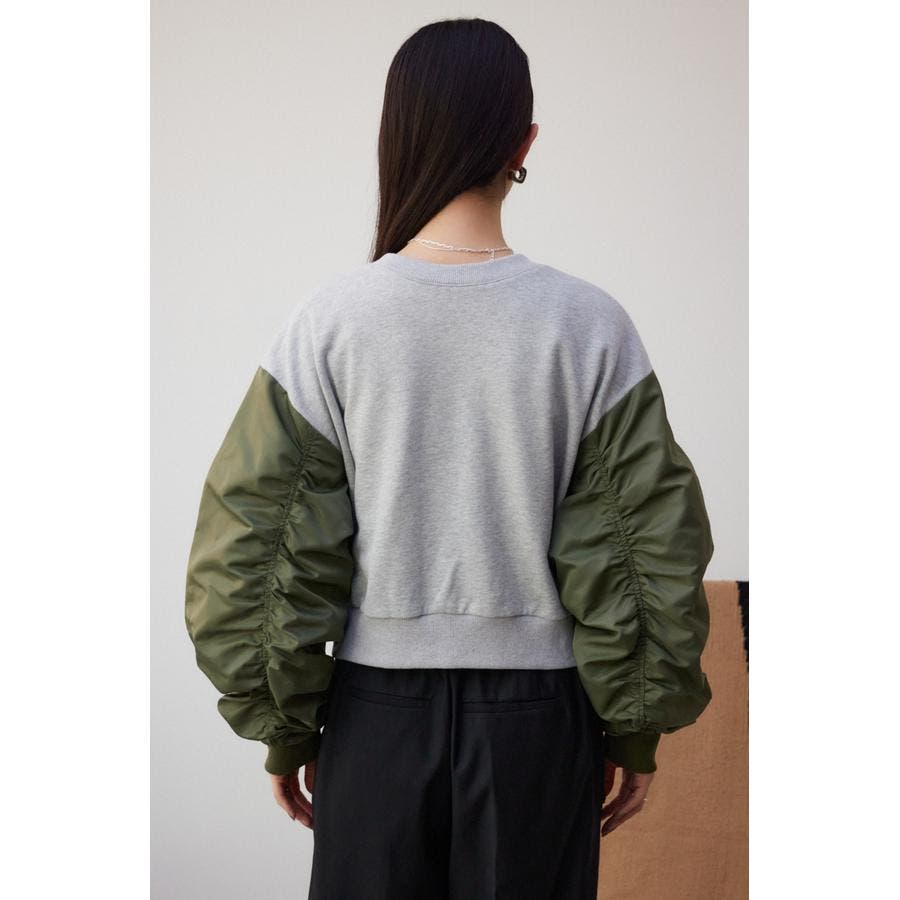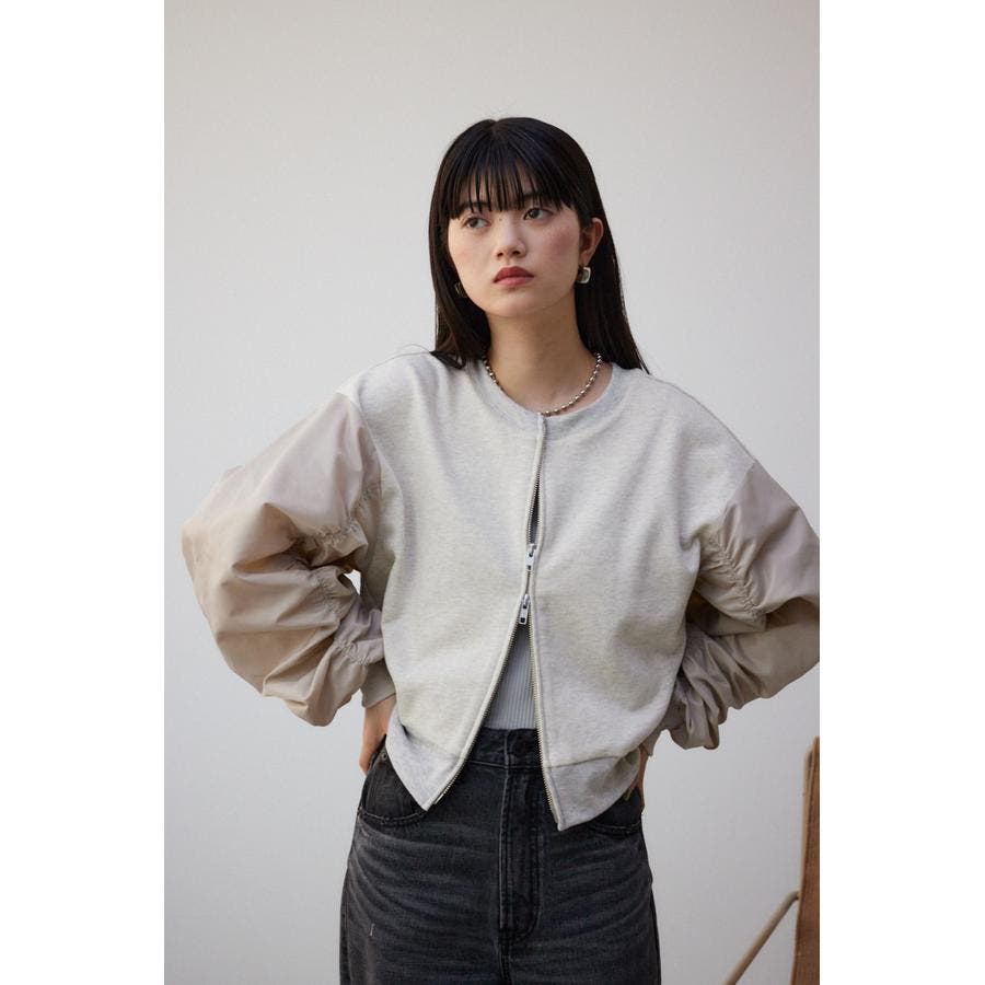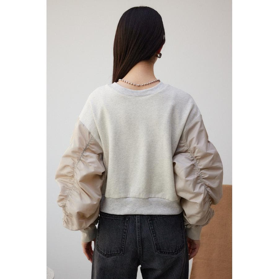 ・たっぷりとギャザーを寄せた立体感のある異素材使いのボリュームスリーブと、コンパクトな身頃の丈感でトレンドライクなバランスに仕上げました。