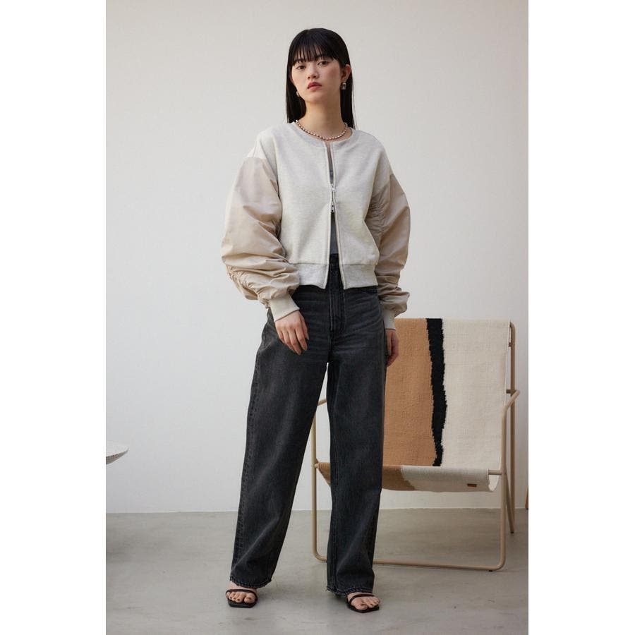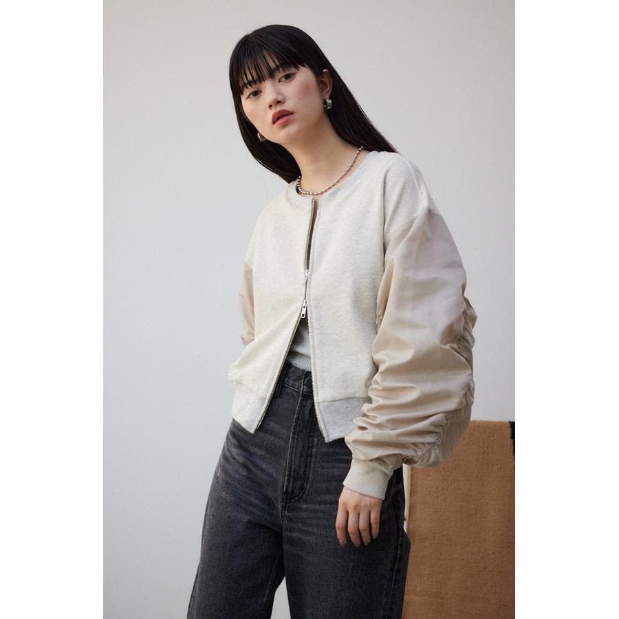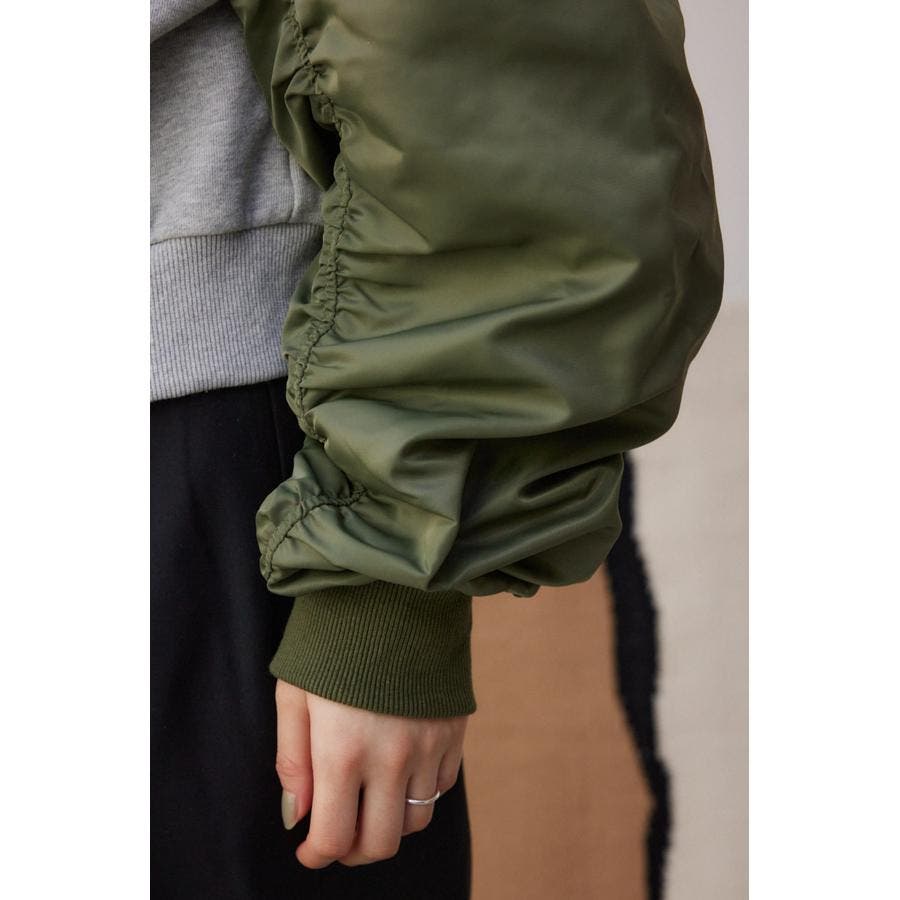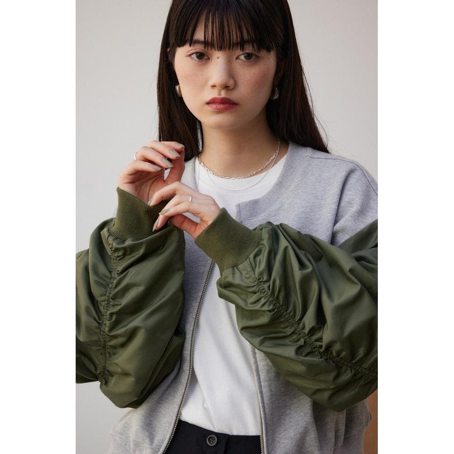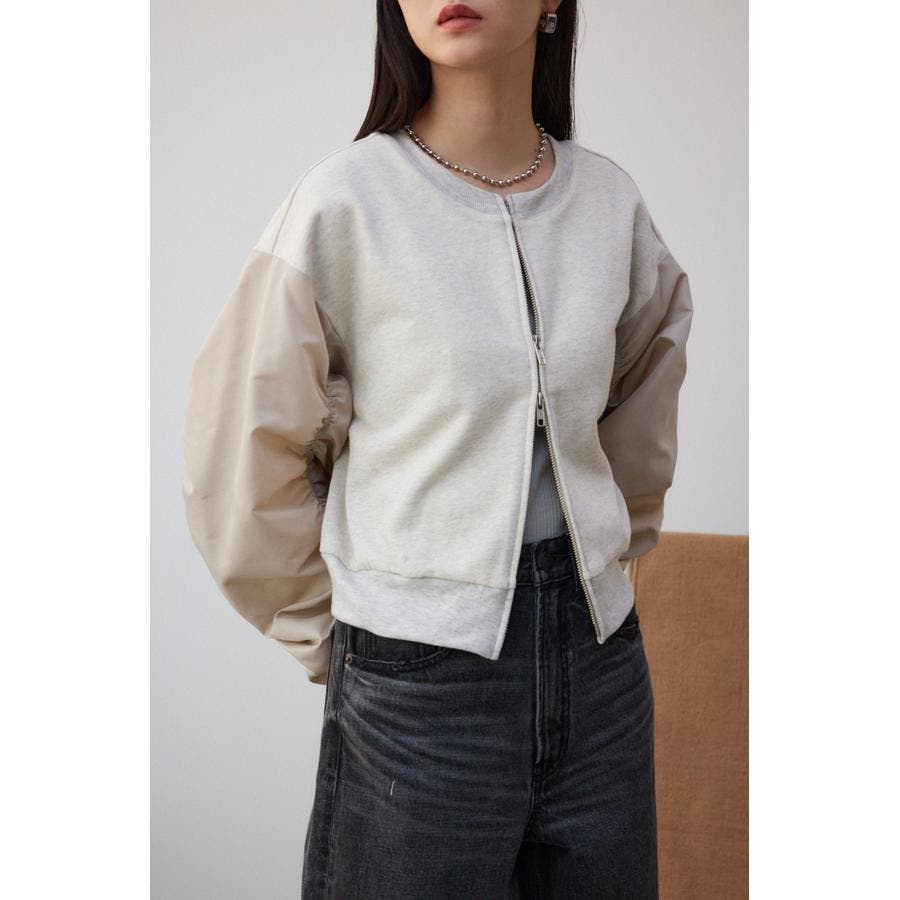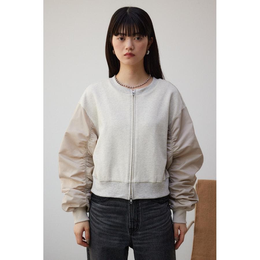 ・たっぷりとギャザーを寄せた立体感のある異素材使いのボリュームスリーブと、コンパクトな身頃の丈感でトレンドライクなバランスに仕上げました。