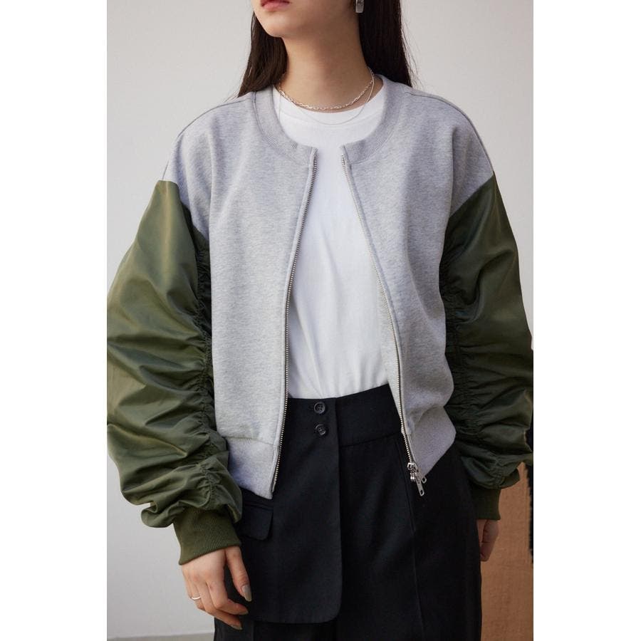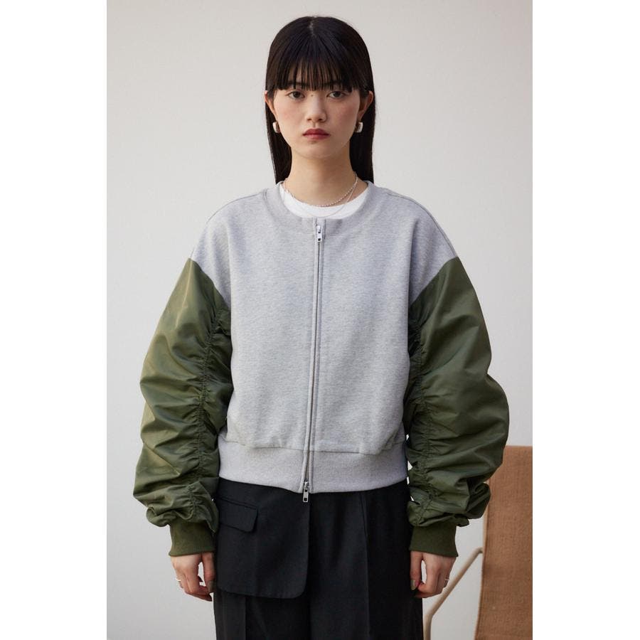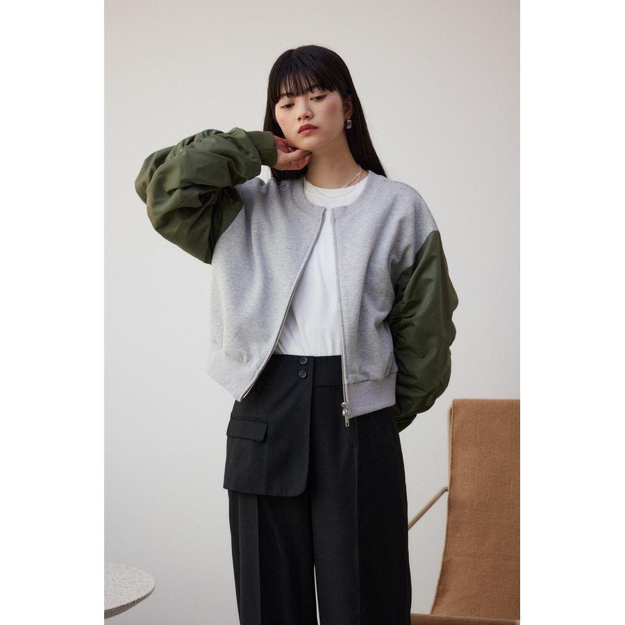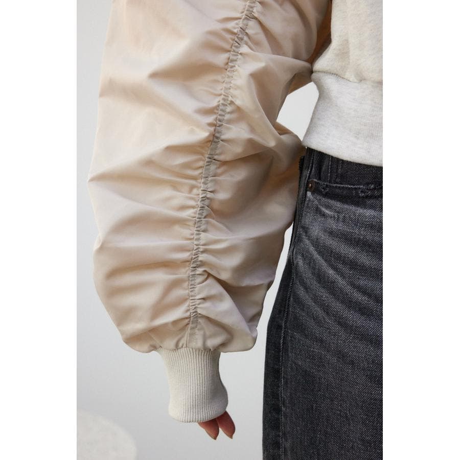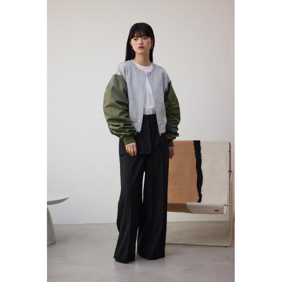 ・たっぷりとギャザーを寄せた立体感のある異素材使いのボリュームスリーブと、コンパクトな身頃の丈感でトレンドライクなバランスに仕上げました。