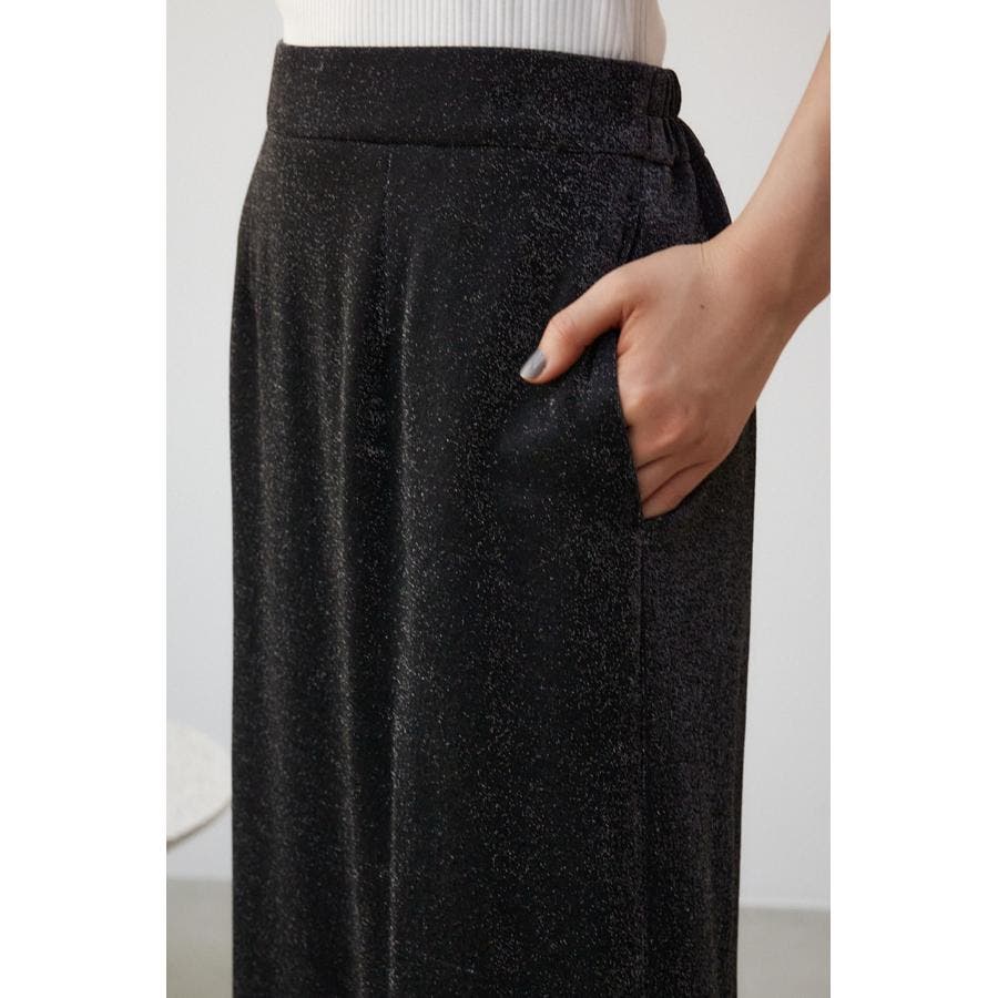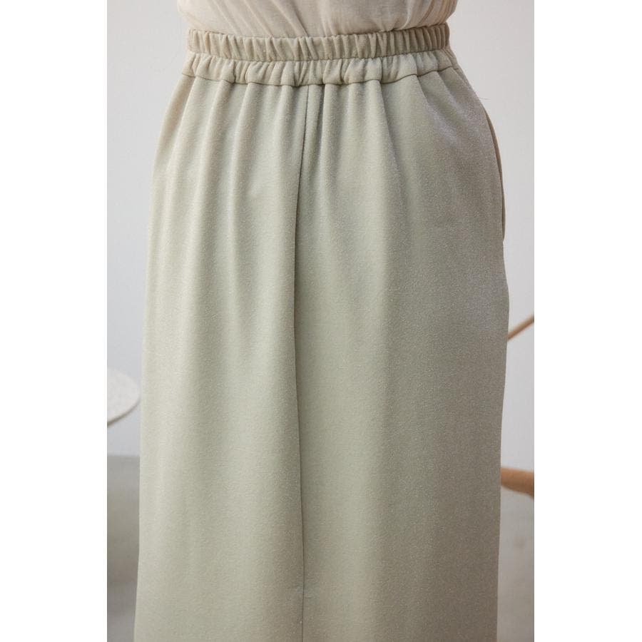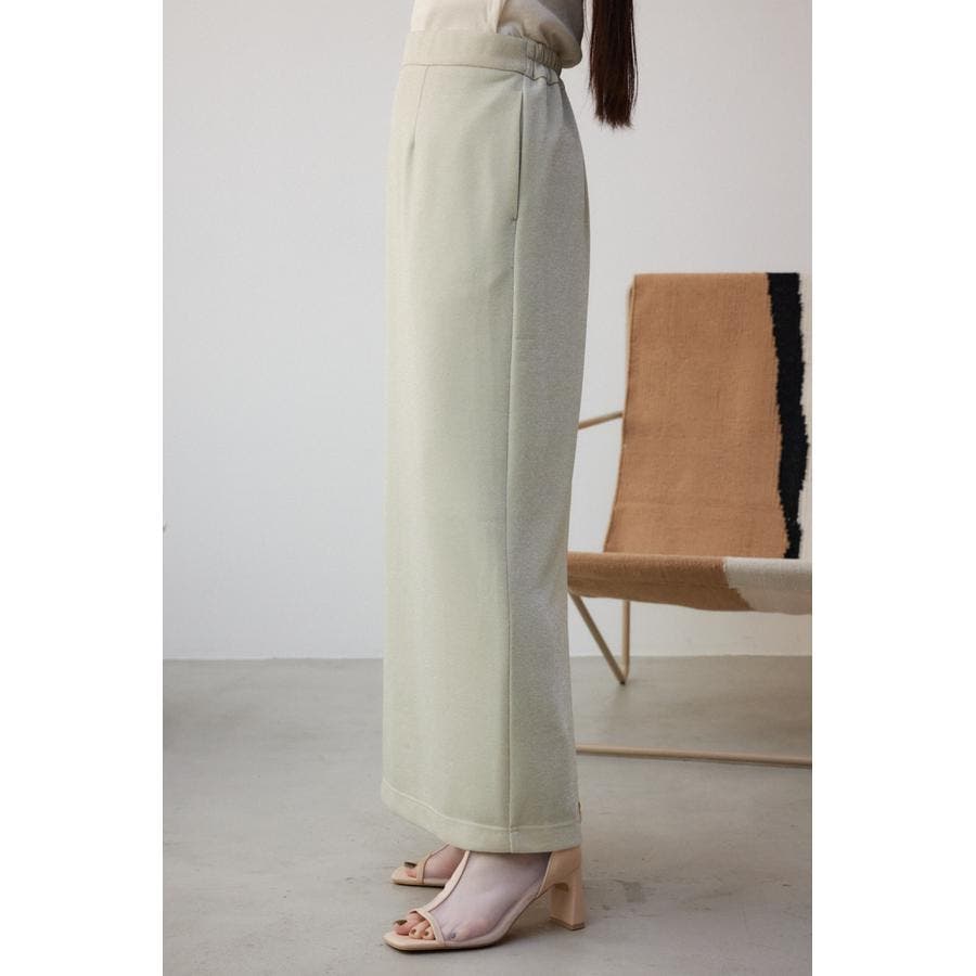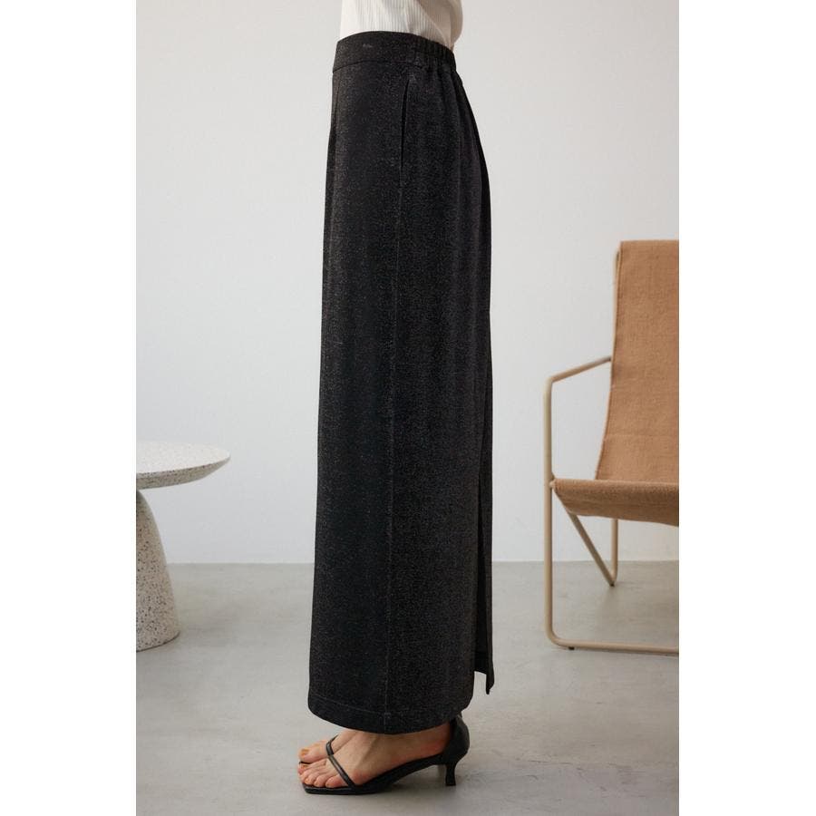 ・伸縮のある細めのリブ素材に華やかなラメが入った伸縮のあるカットソー地を使用し、すっきりとしたシルエットとイージーな履き心地がポイント。