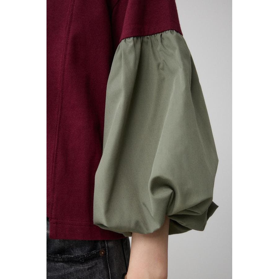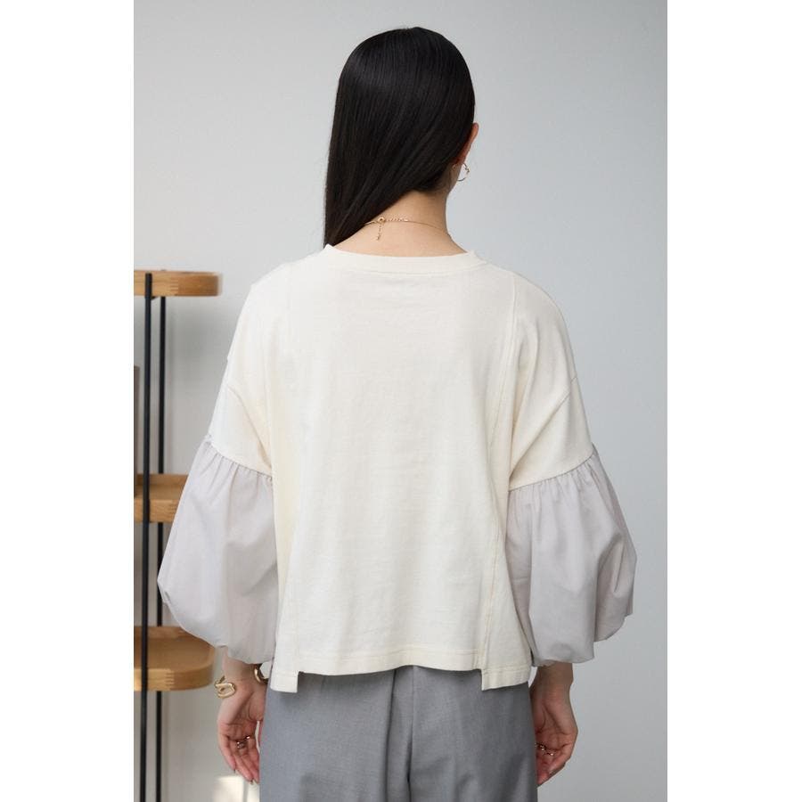 ■商品(デザイン):異素材使いのデザインスリーブカットトップス。