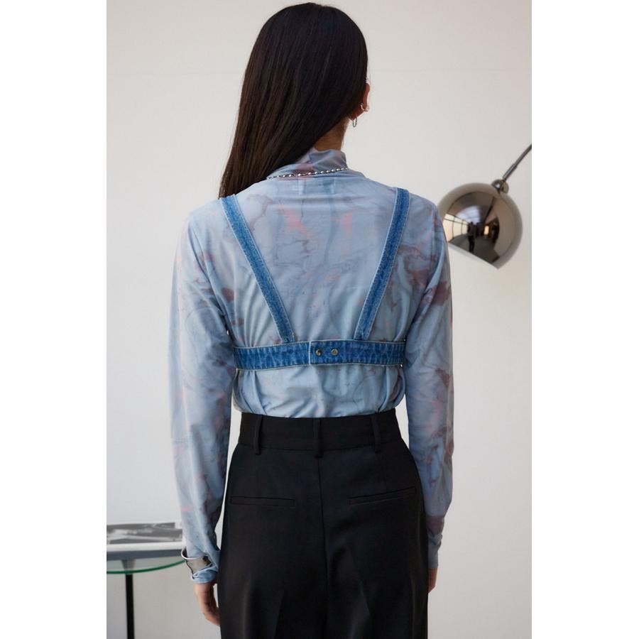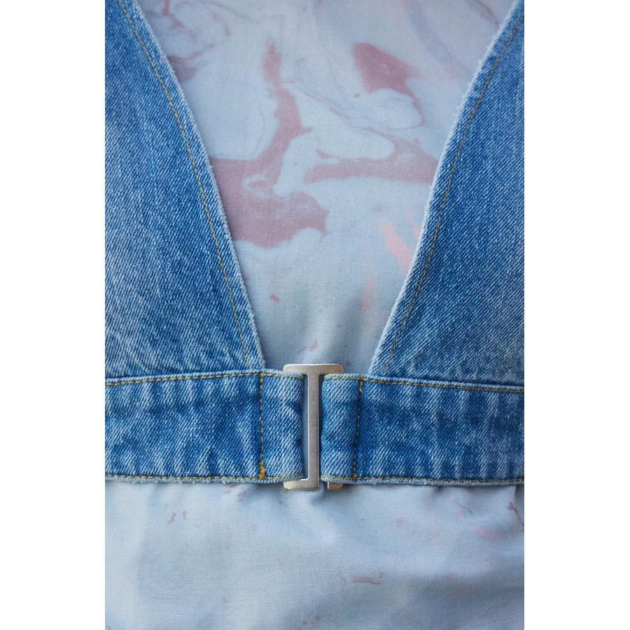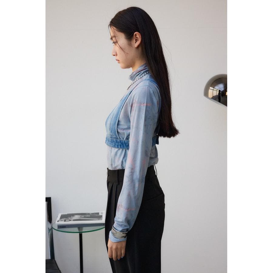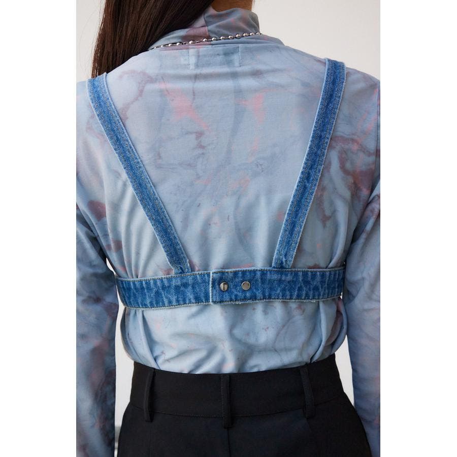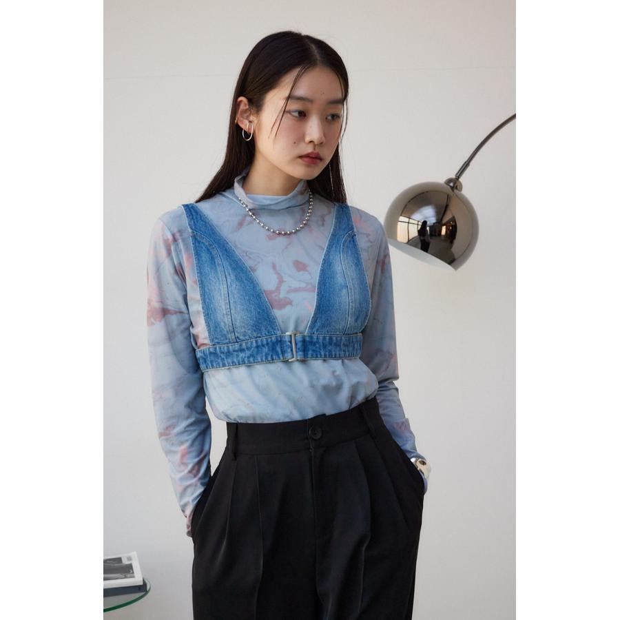 ・程よい生地に肉感があるデニムを使用し、加工を施すことでビンテージ感を演出したデニムビスチェです。