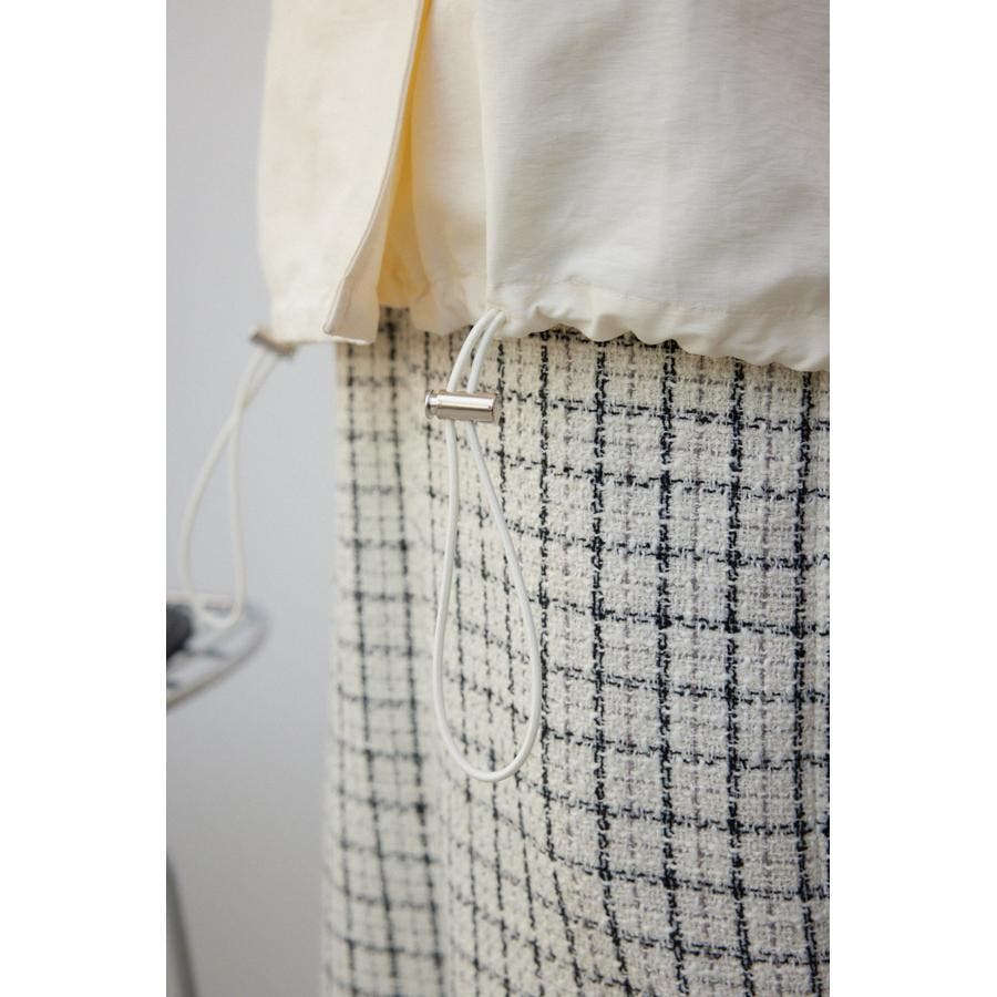 ・裾にコードが付いているので、絞ってシルエットに変化を付けるのがおすすめです。