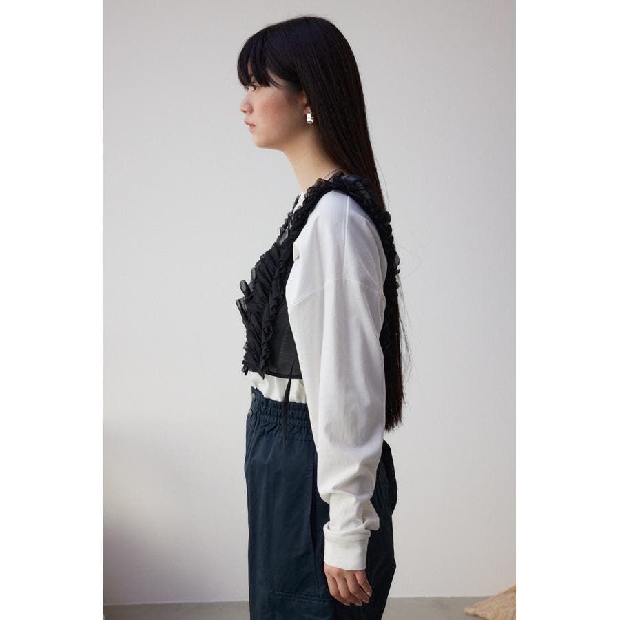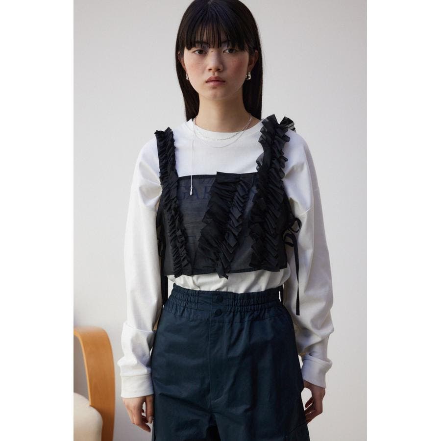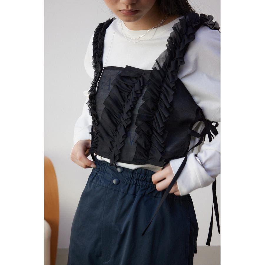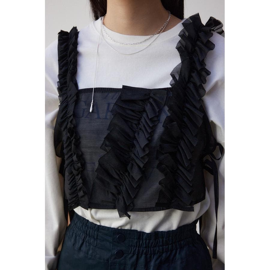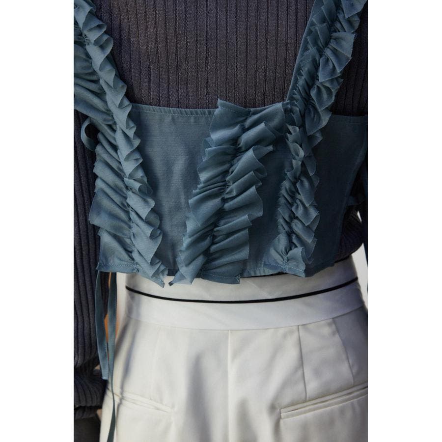 ・適度に張り感のある、ポリエステルオーガンジー素材のフリルビスチェ。