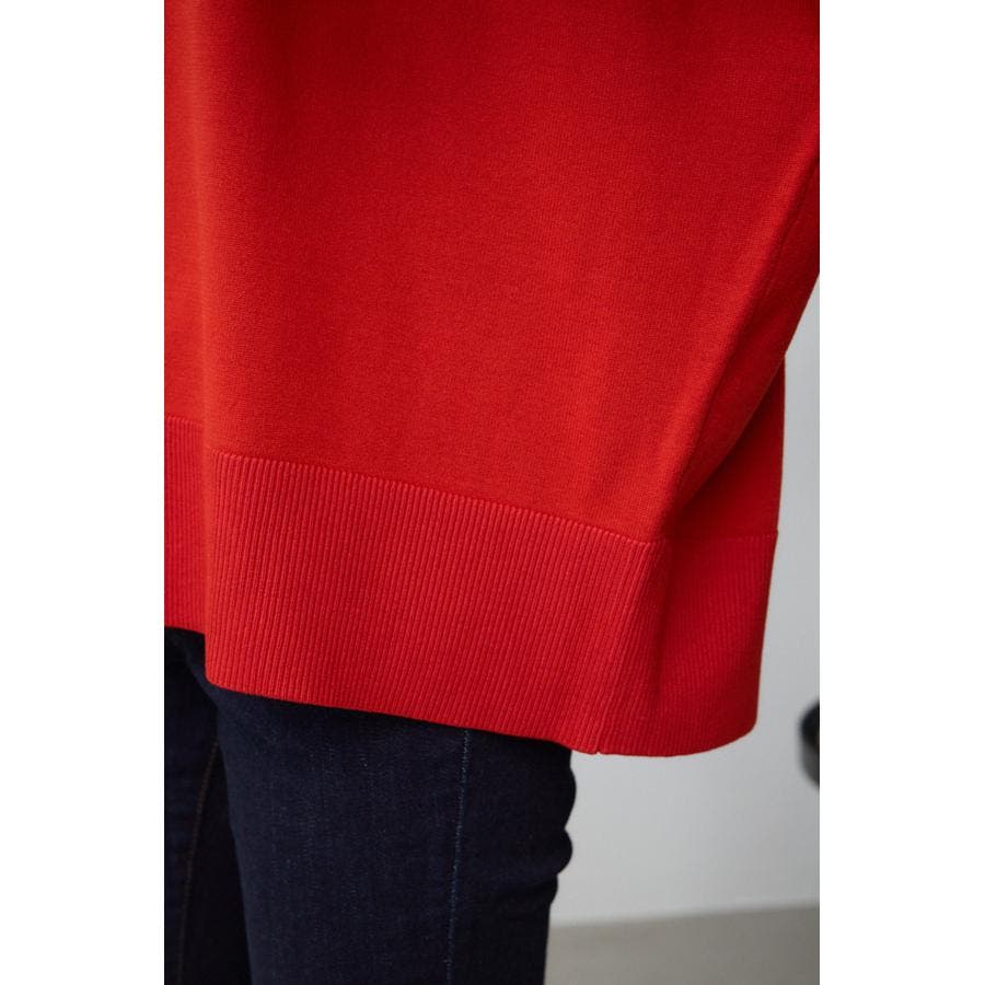 ■商品(デザイン)ポイント: ワイドシルエットながら女性らしさのあるルーズニットです。