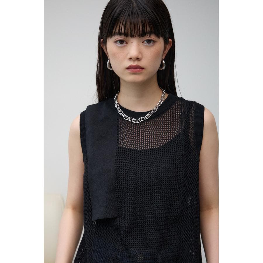 カジュアルなメッシュタンクながらも総針のパネルデザインがモードさをプラスします。