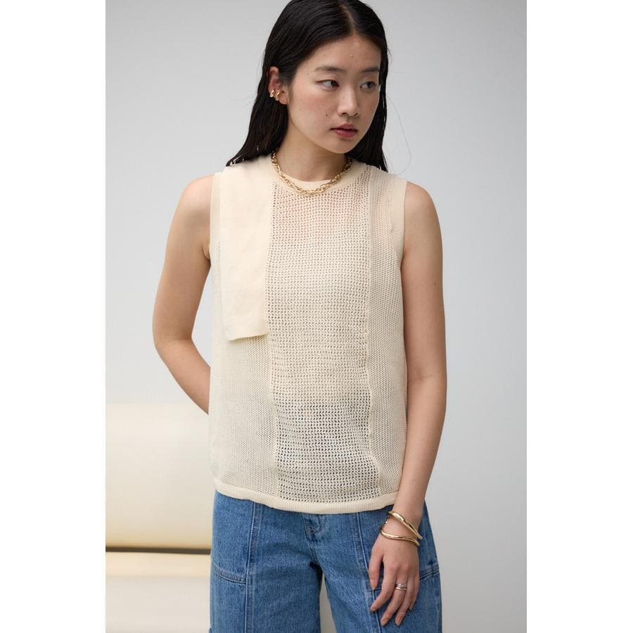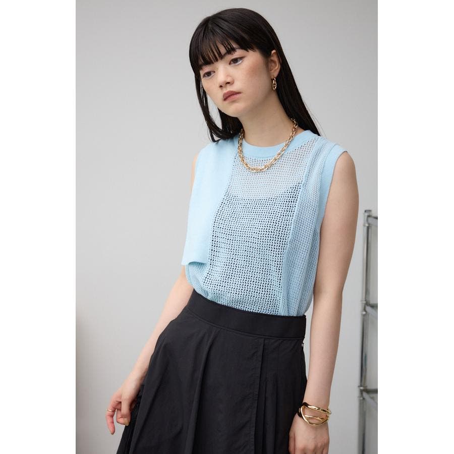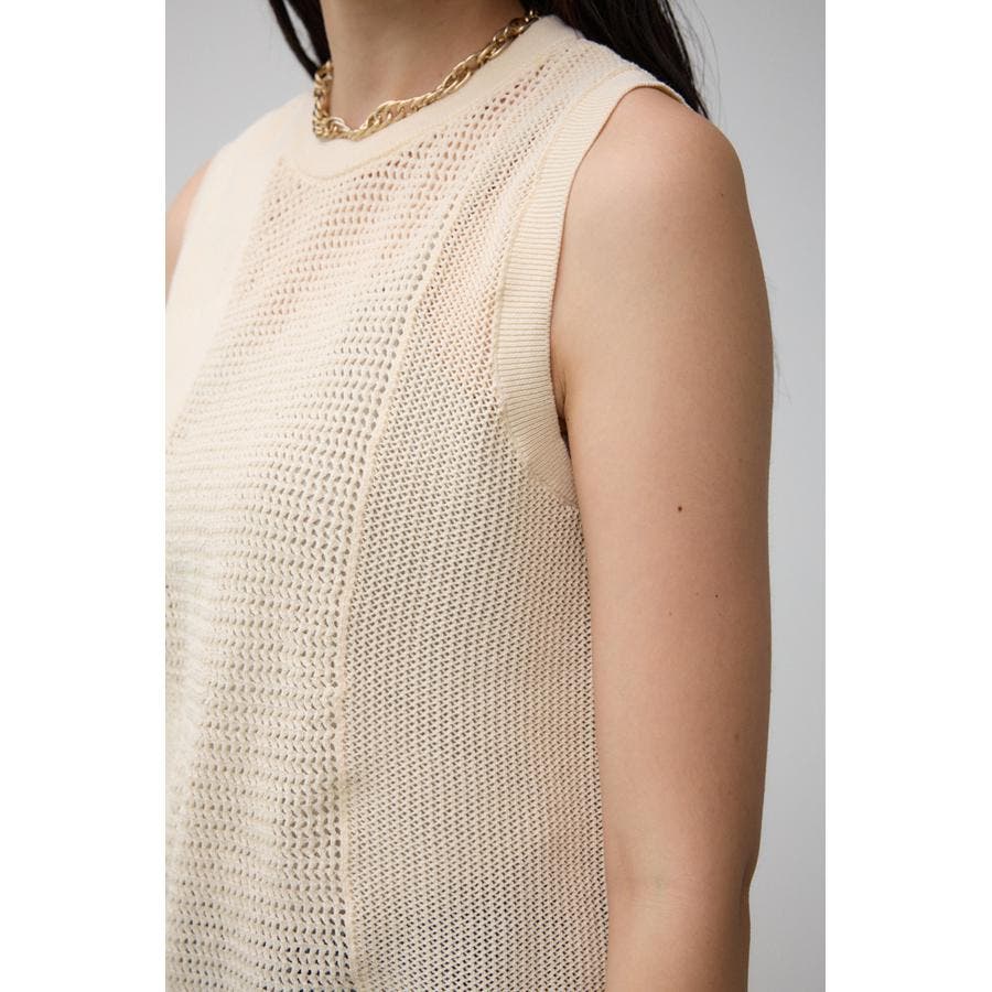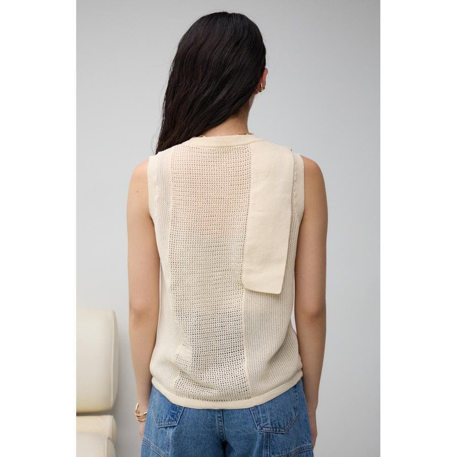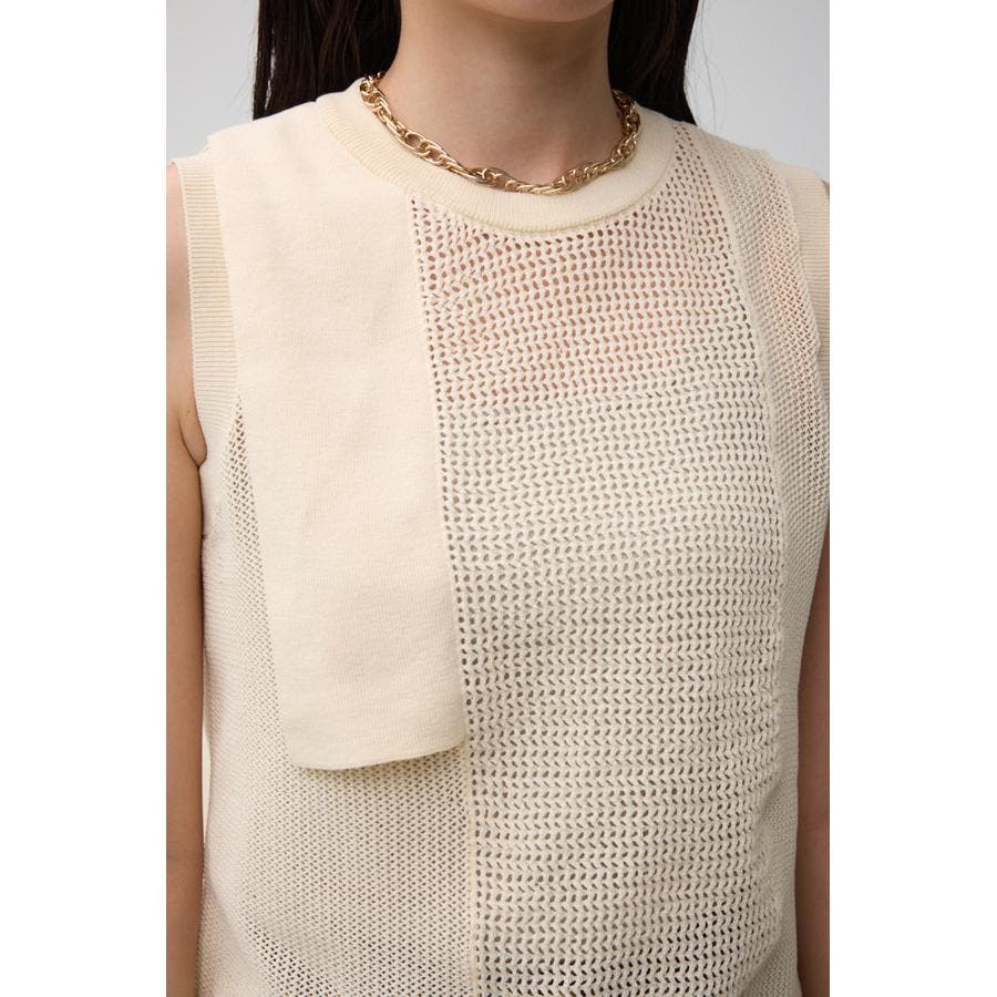 ■商品(デザイン)ポイント:異なるサイズのメッシュ網切り替えがポイントのニットタンクです。