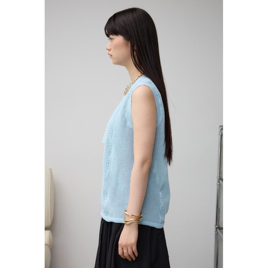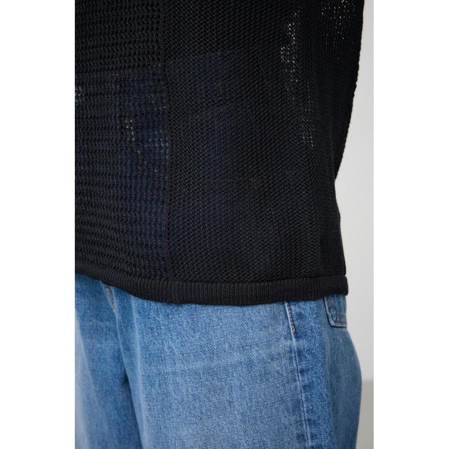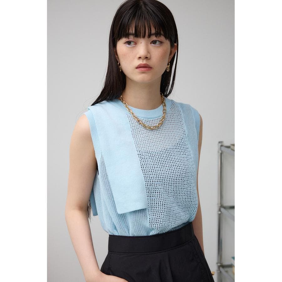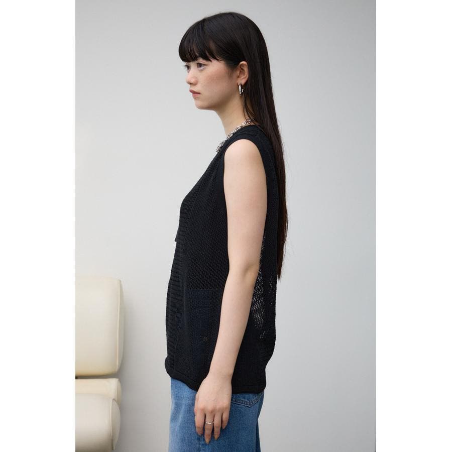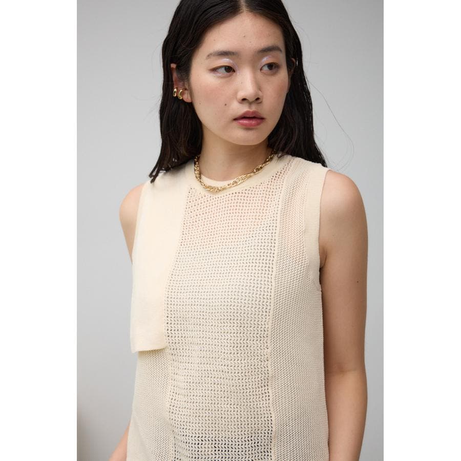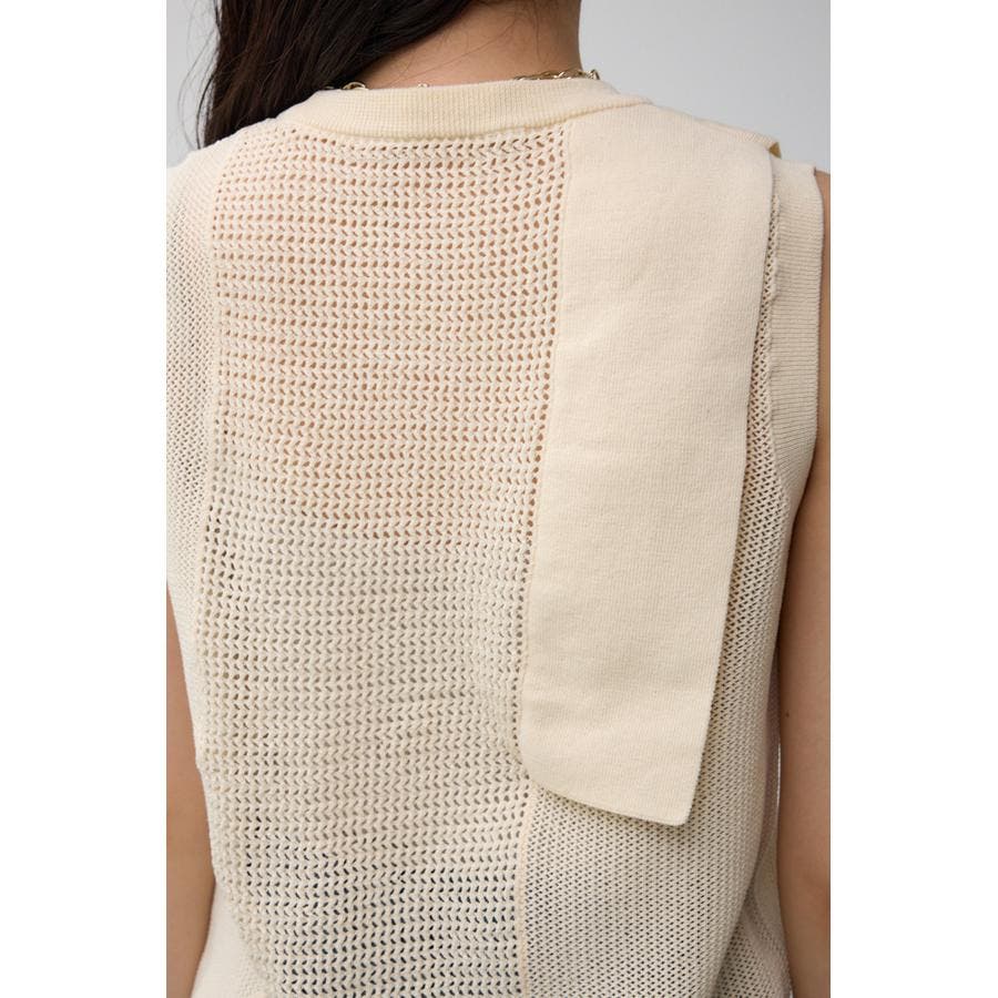 ■商品(デザイン)ポイント:異なるサイズのメッシュ網切り替えがポイントのニットタンクです。