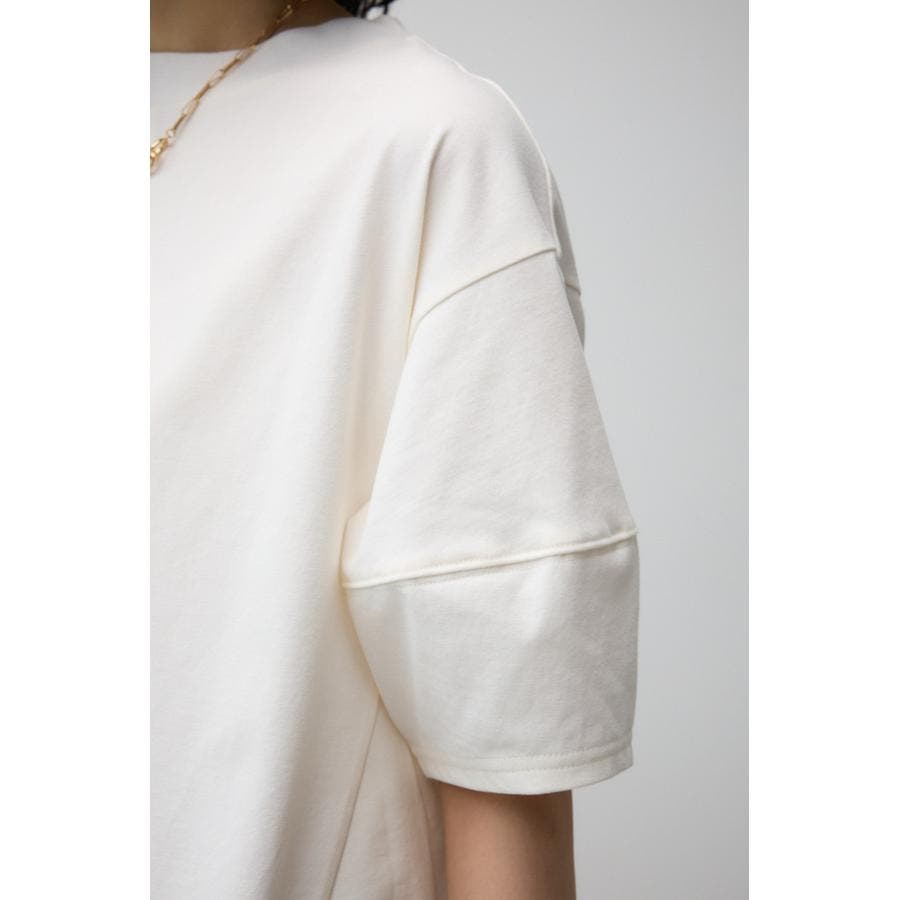 ■商品(デザイン)ポイント:異素材切り替えがポイントのバルーンシルエットカットソーです。