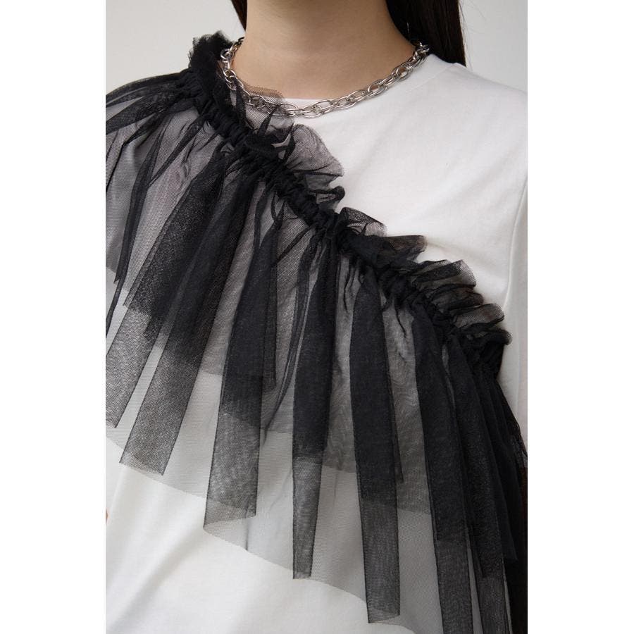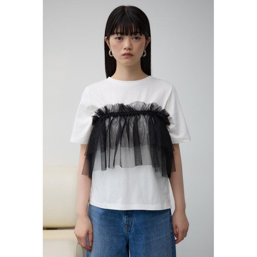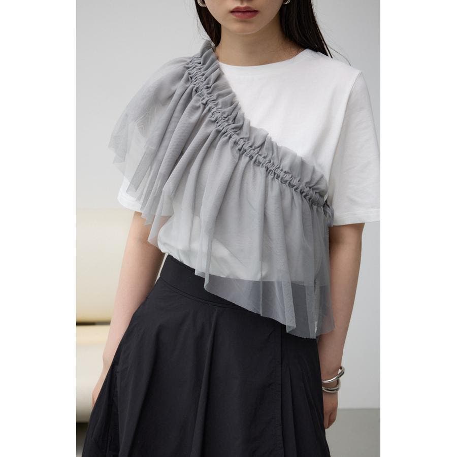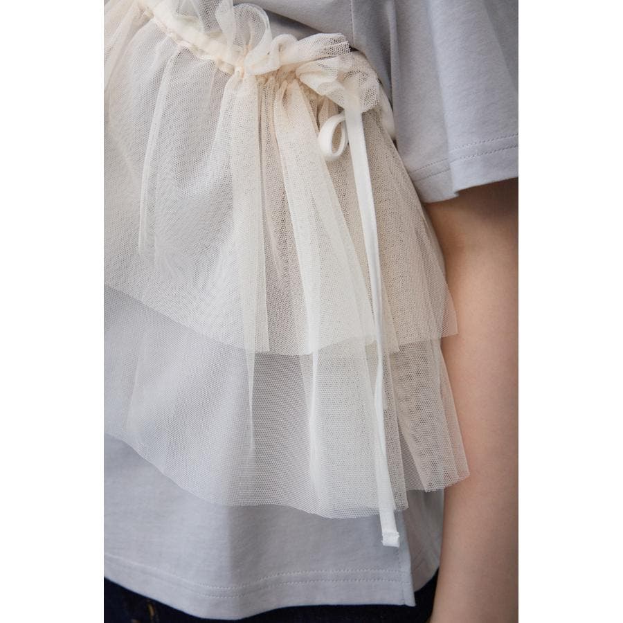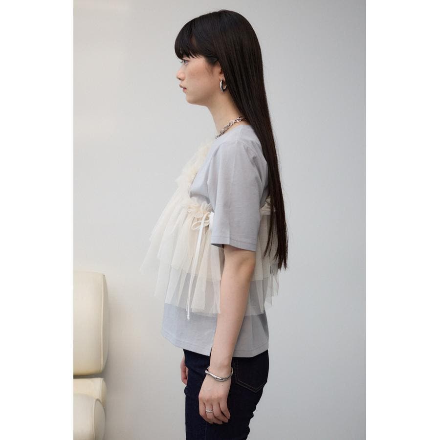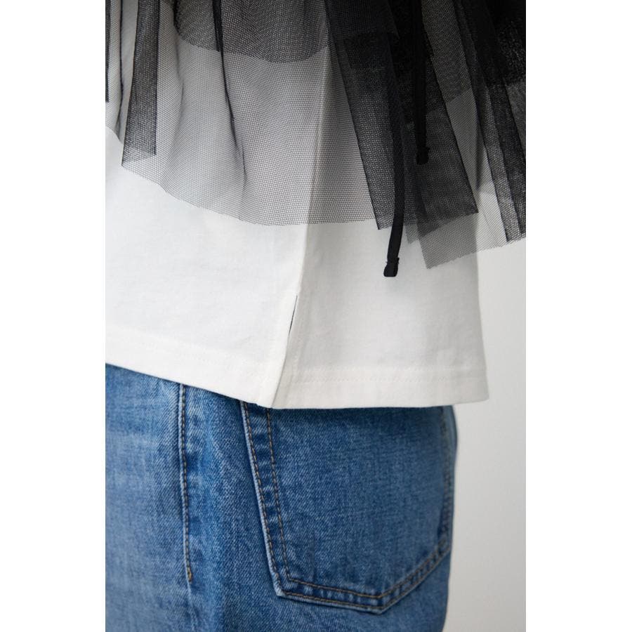 ■商品ディティール:レイヤードされたチュールデザイン で、Tシャツとセットになったマルチウェイアイテムです。