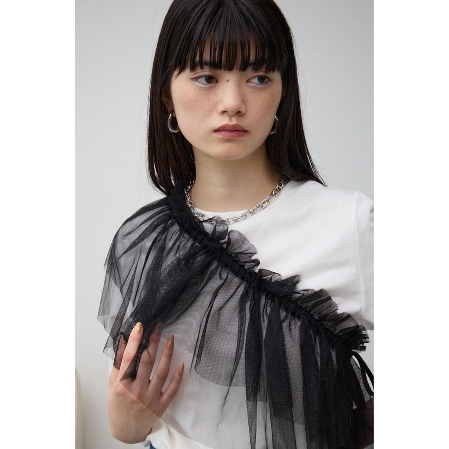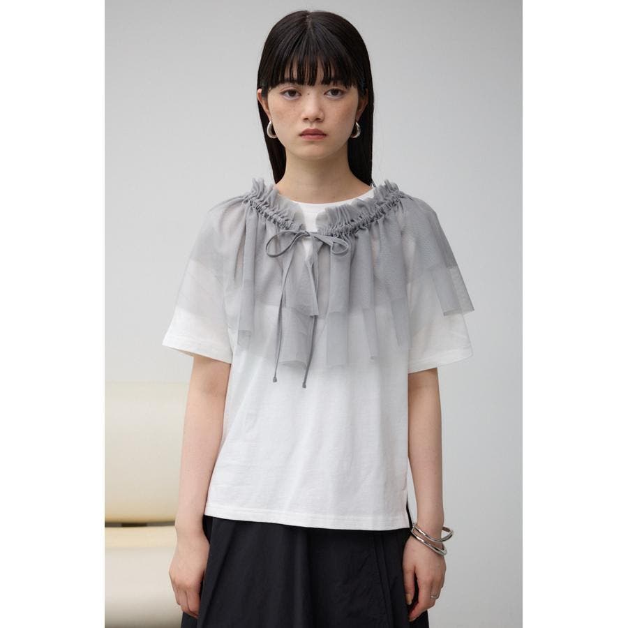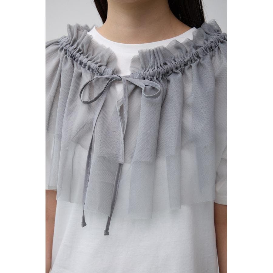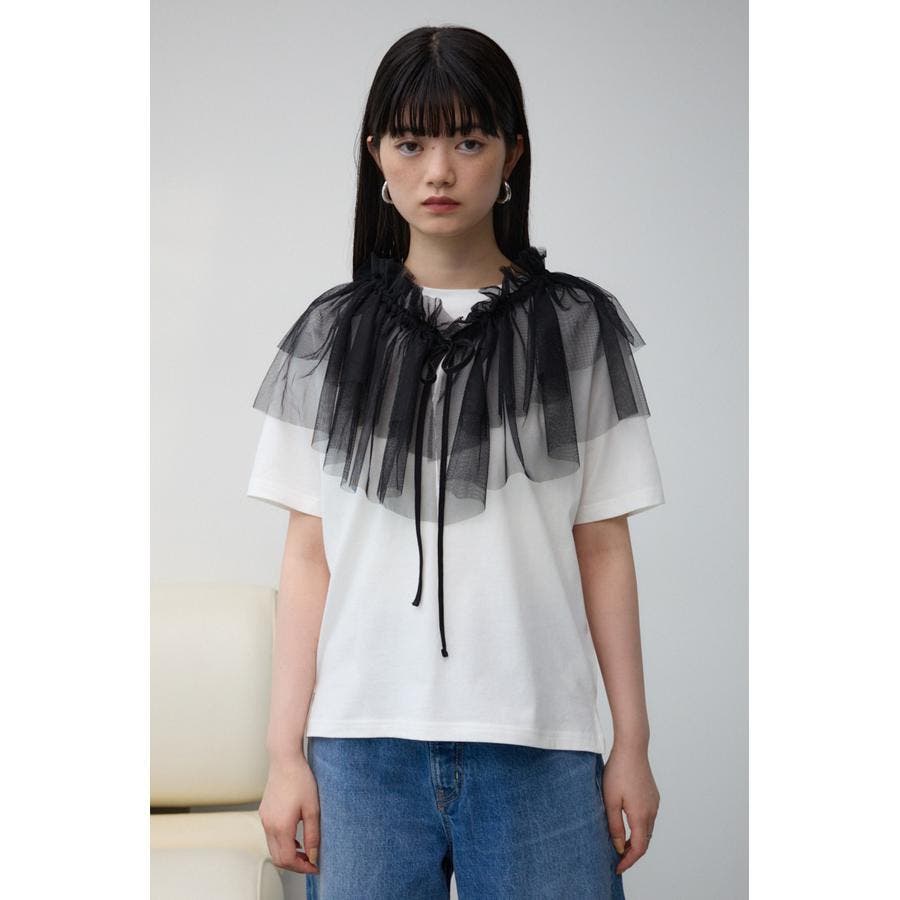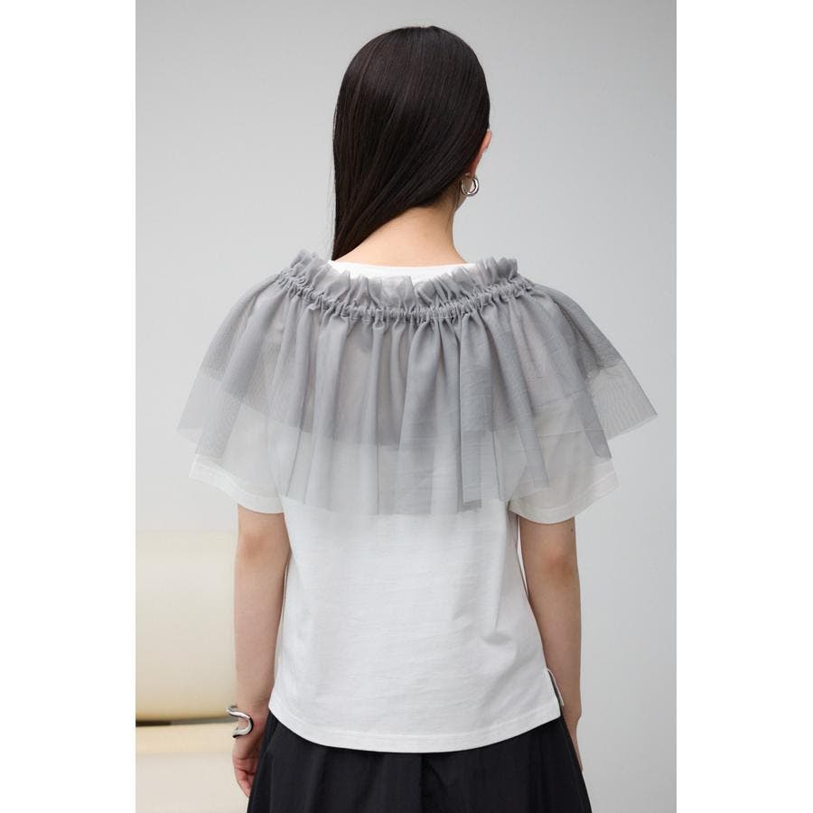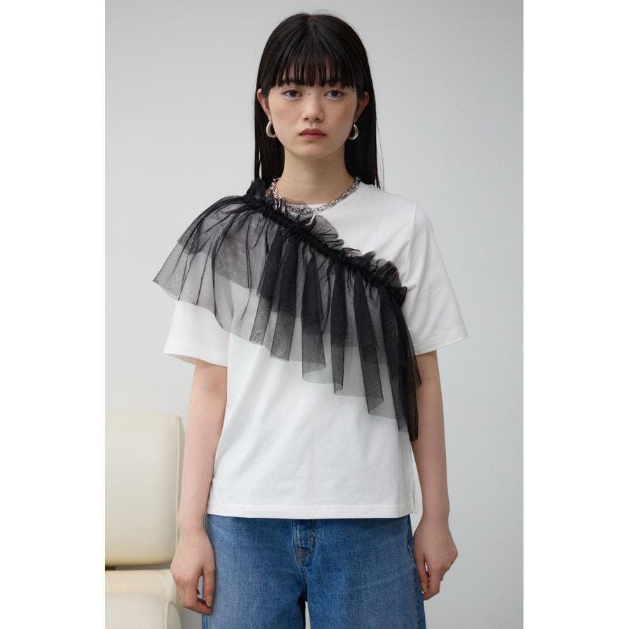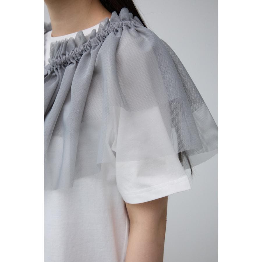 ■商品ディティール:レイヤードされたチュールデザイン で、Tシャツとセットになったマルチウェイアイテムです。