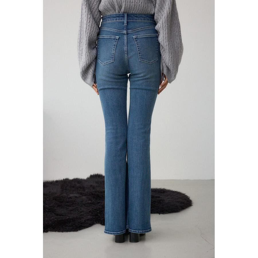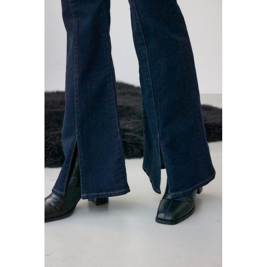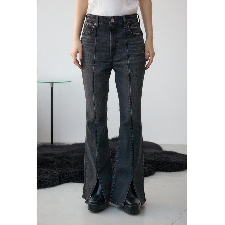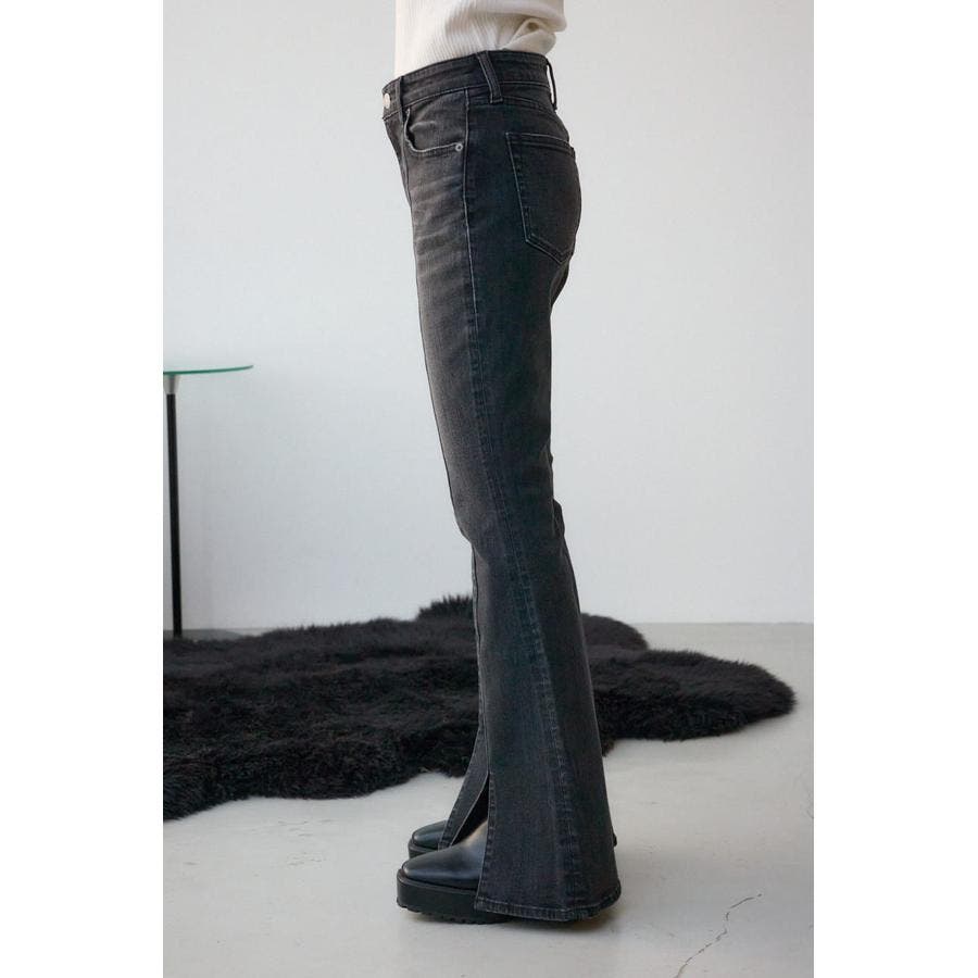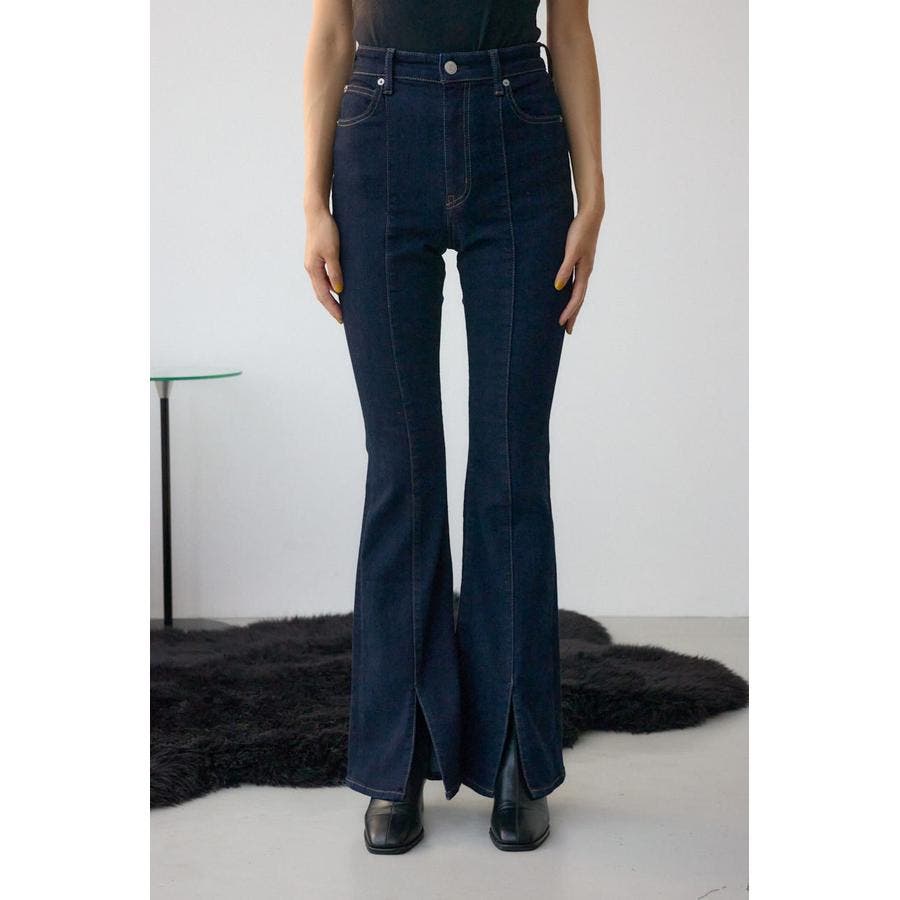 トレンドのフレアシルエットに、裾スリット入りのフレアデニムが登場。