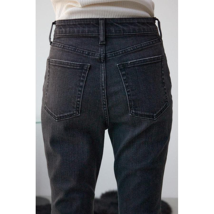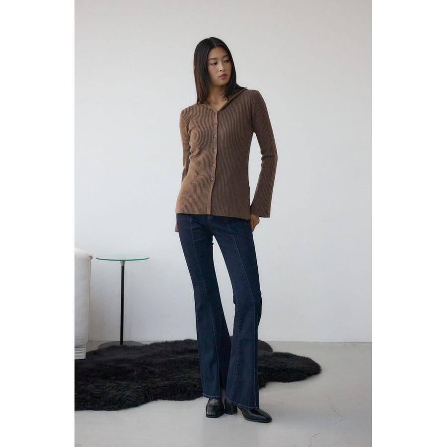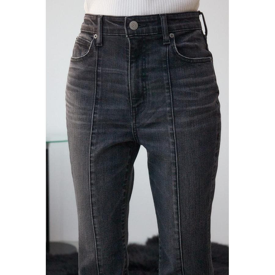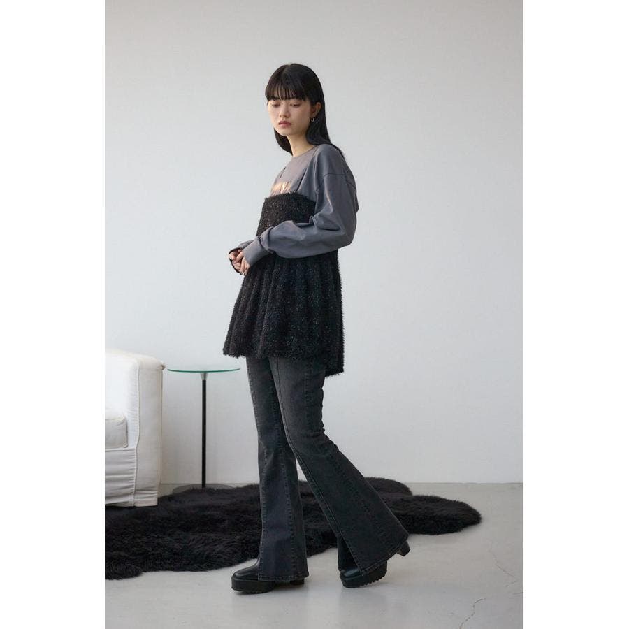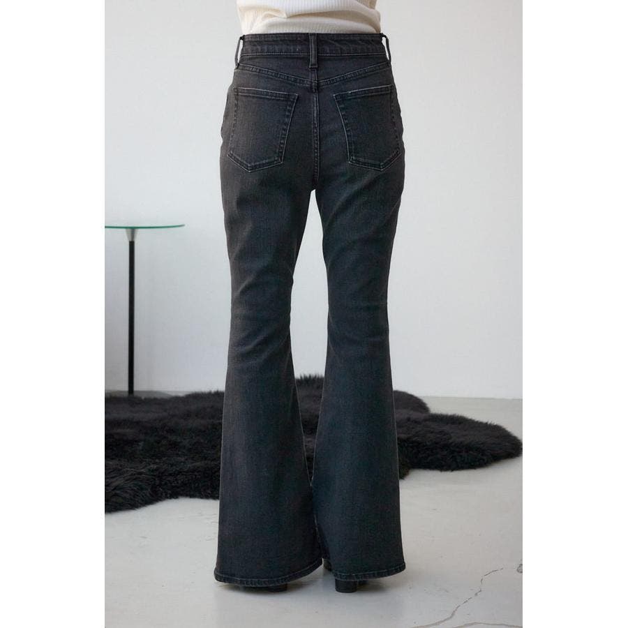 トレンドのフレアシルエットに、裾スリット入りのフレアデニムが登場。