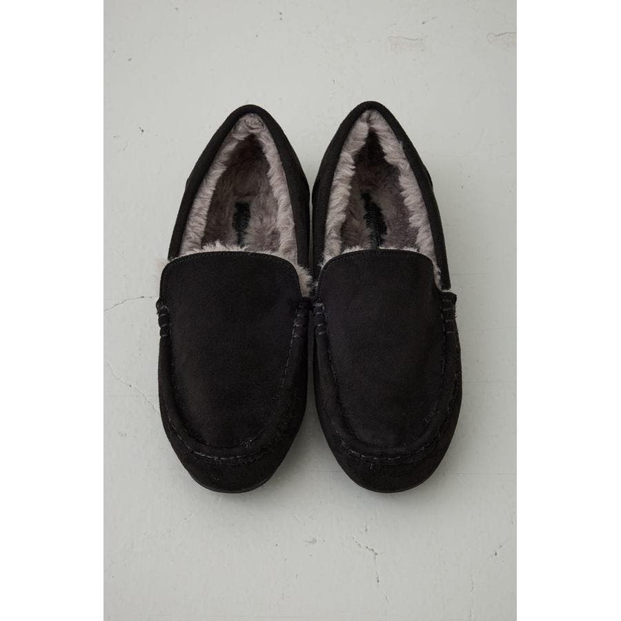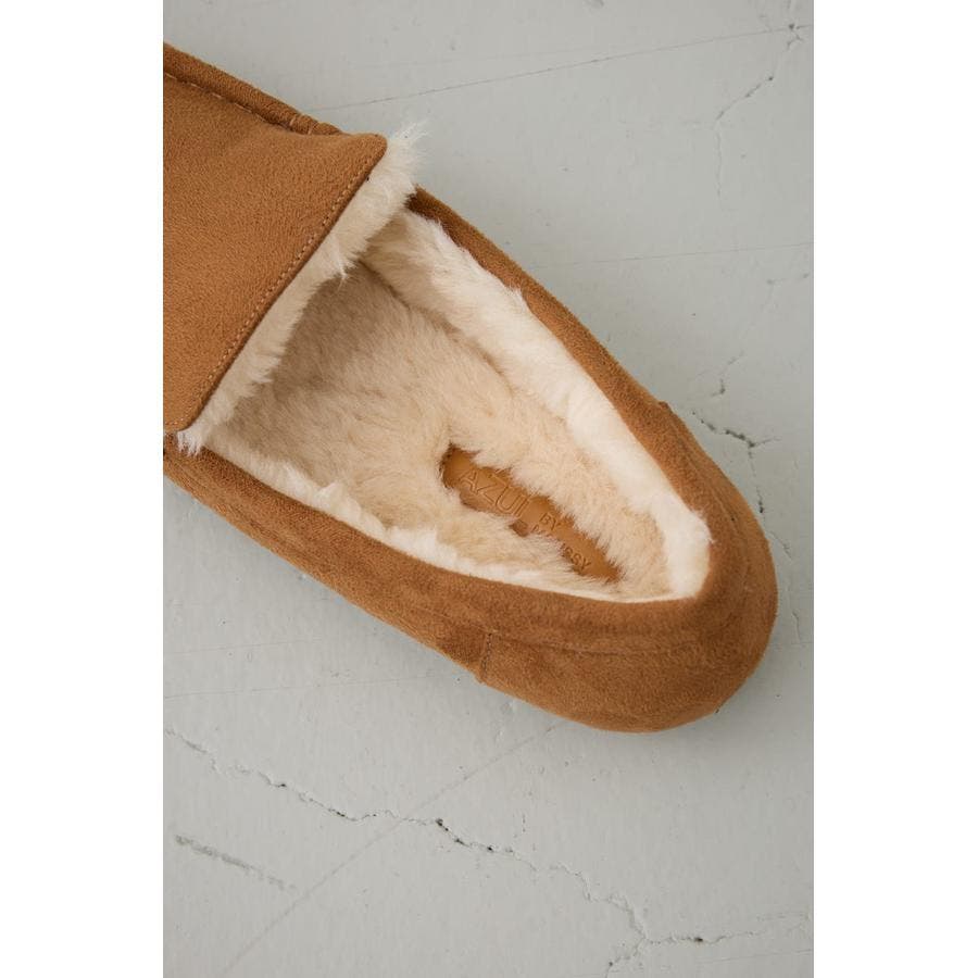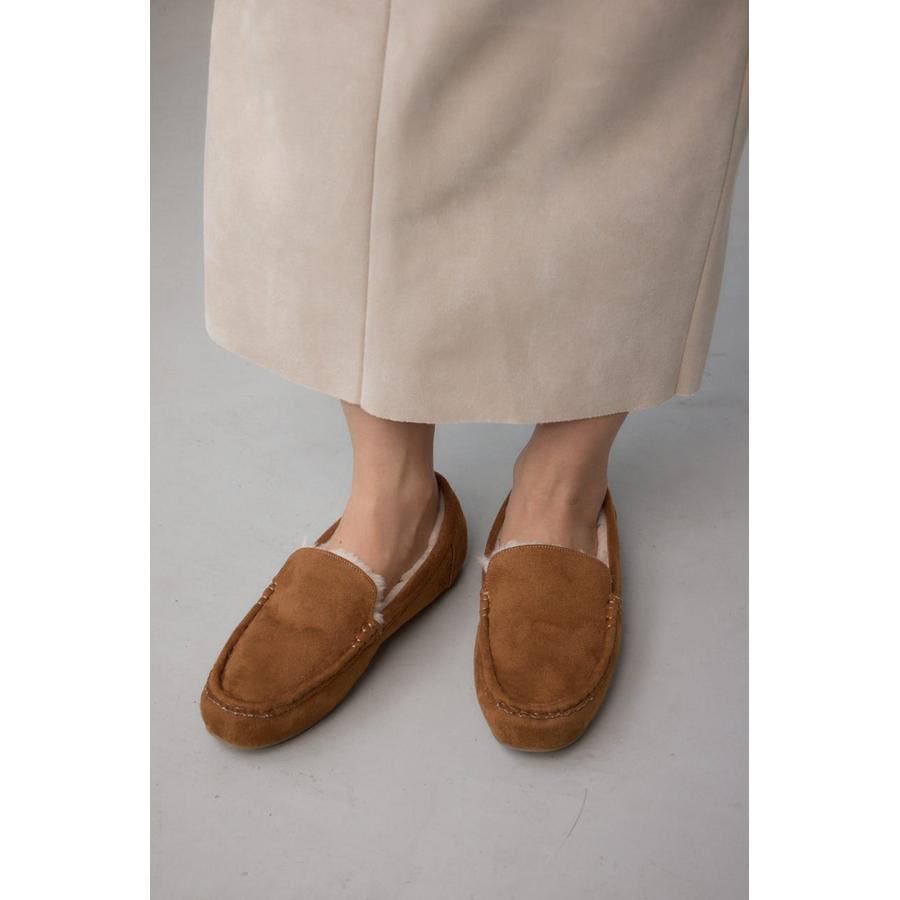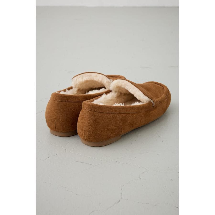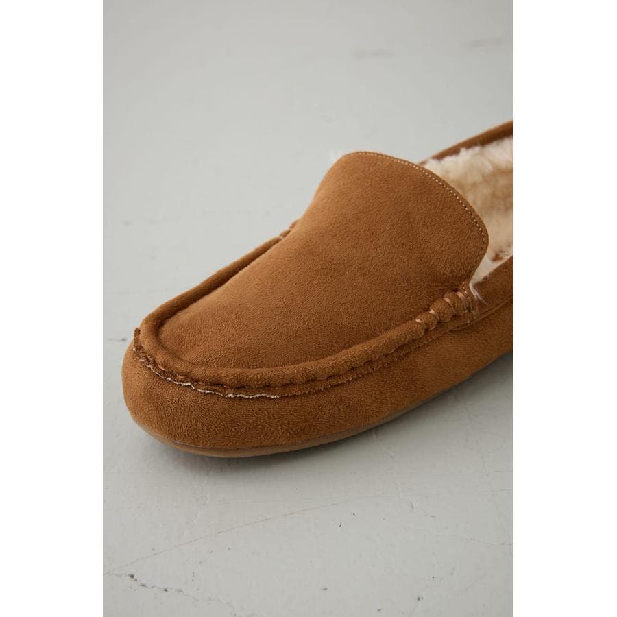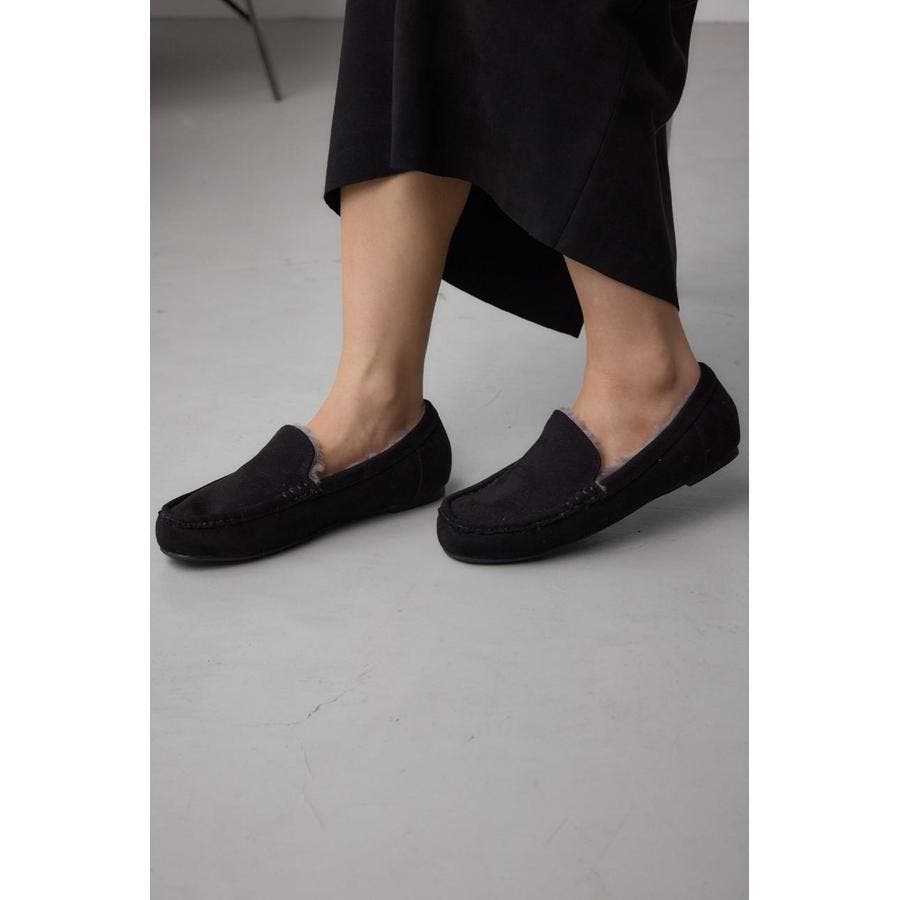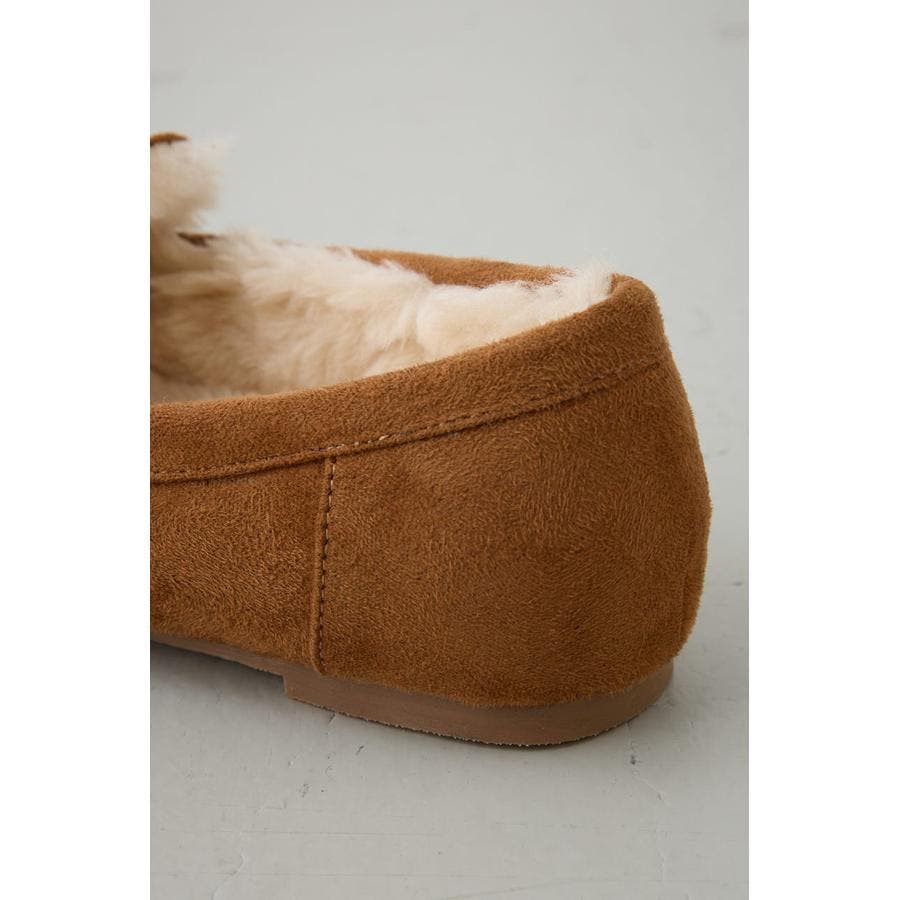 内側にファーをあしらい、素足でも快適な履き心地の一足。