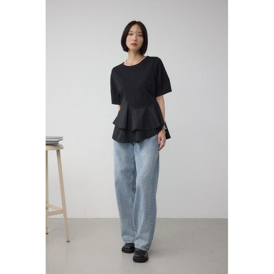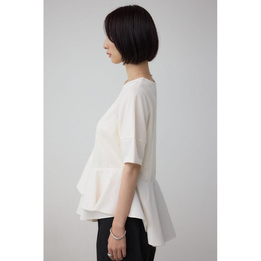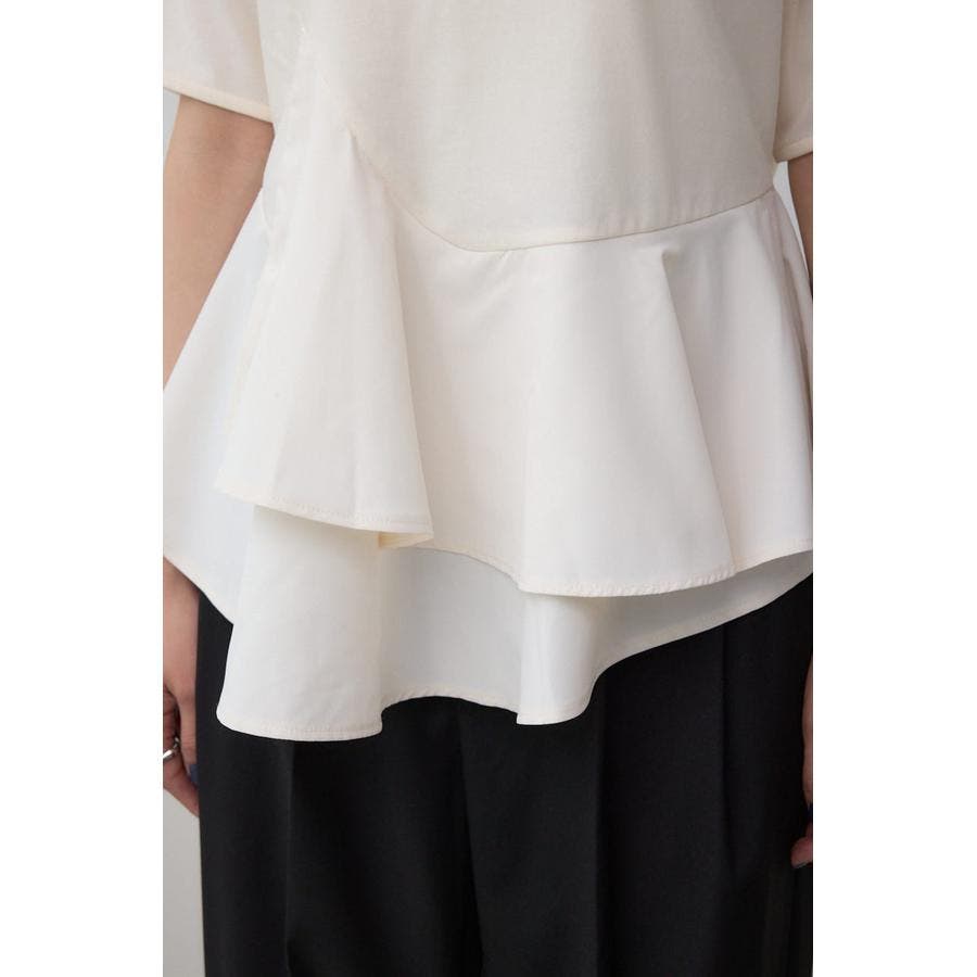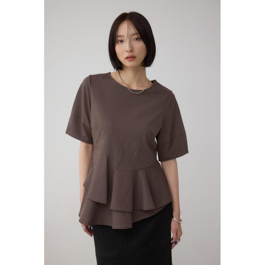 ウエスト切り替えのペプラムデザインで体形カバーをしつつ、フェミニンな印象になります。