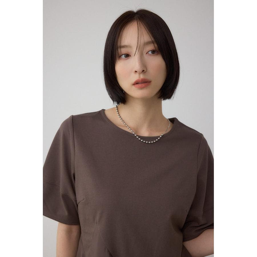 カット部分にフレアの切り替えを入れることで立体感が生まれ、シンプルながらも華やかな印象に仕上がります。
