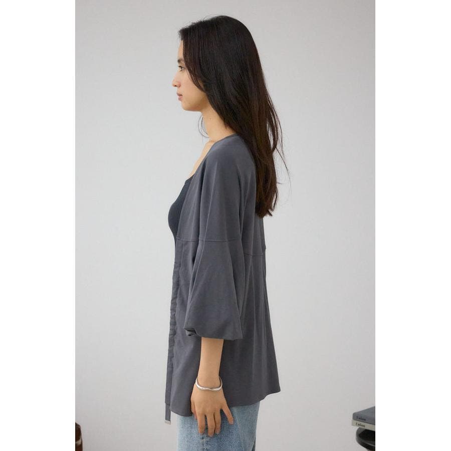 トレンドデザインの裾ドロスト仕様が施されたトッパーカーディガンです。