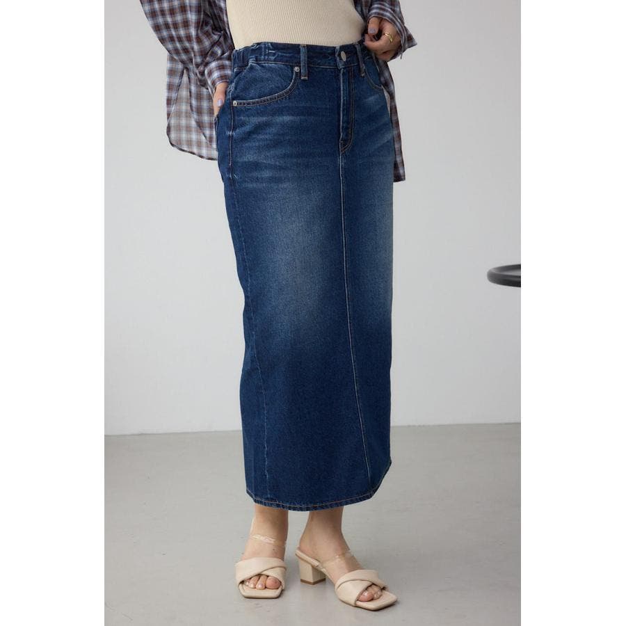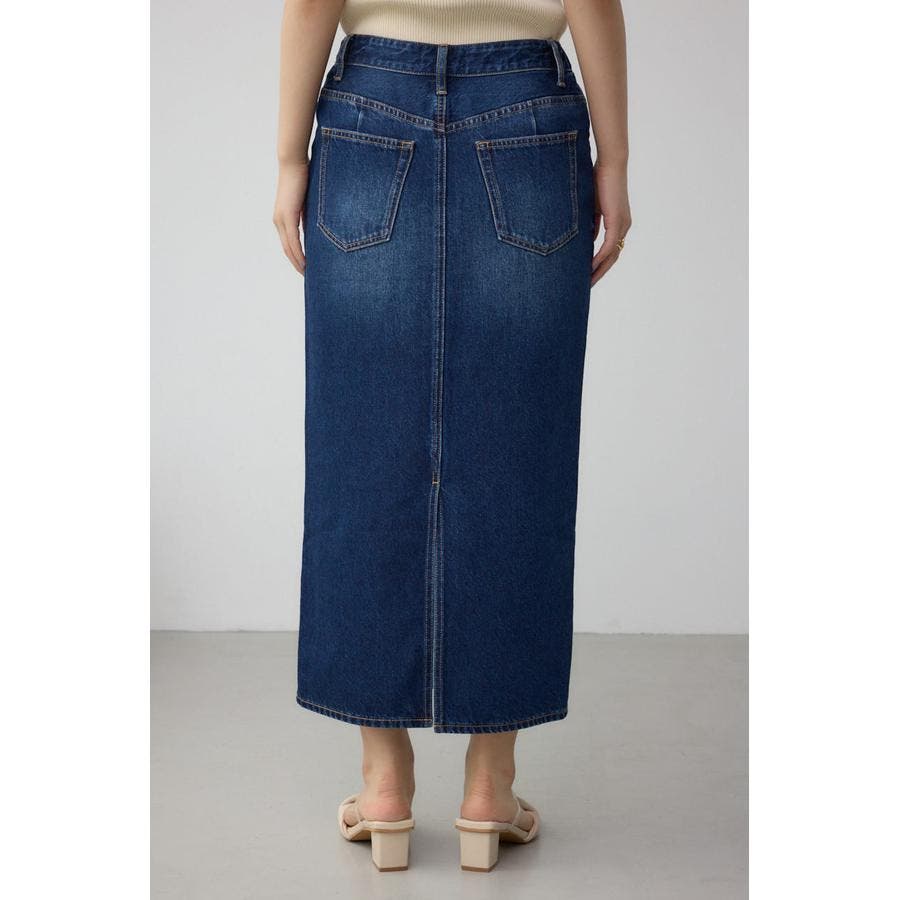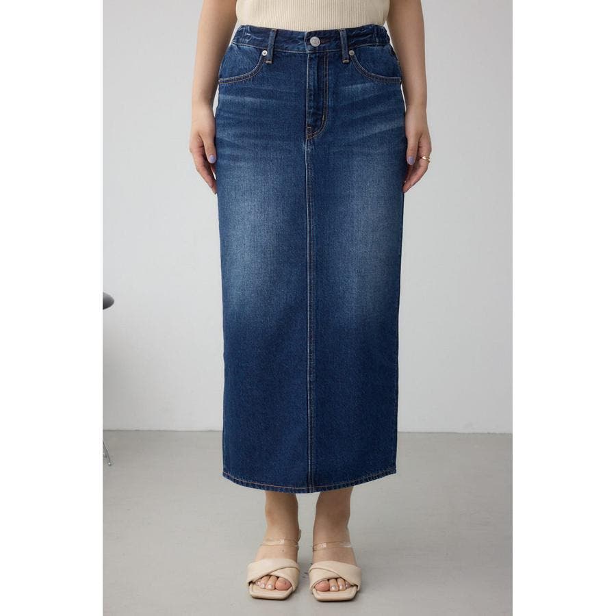 ひんやり冷感素材を使用した、優しいフィット感のストレートデニムスカート。