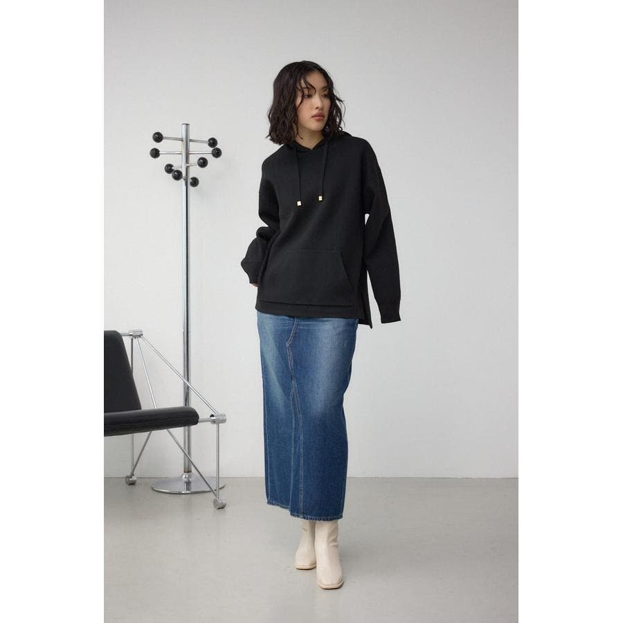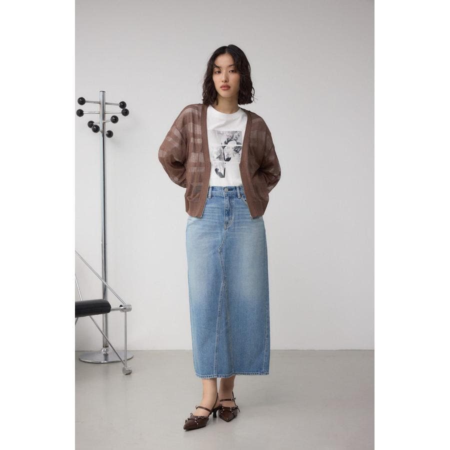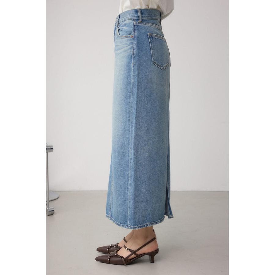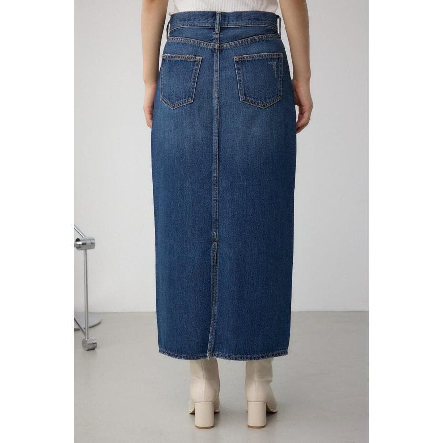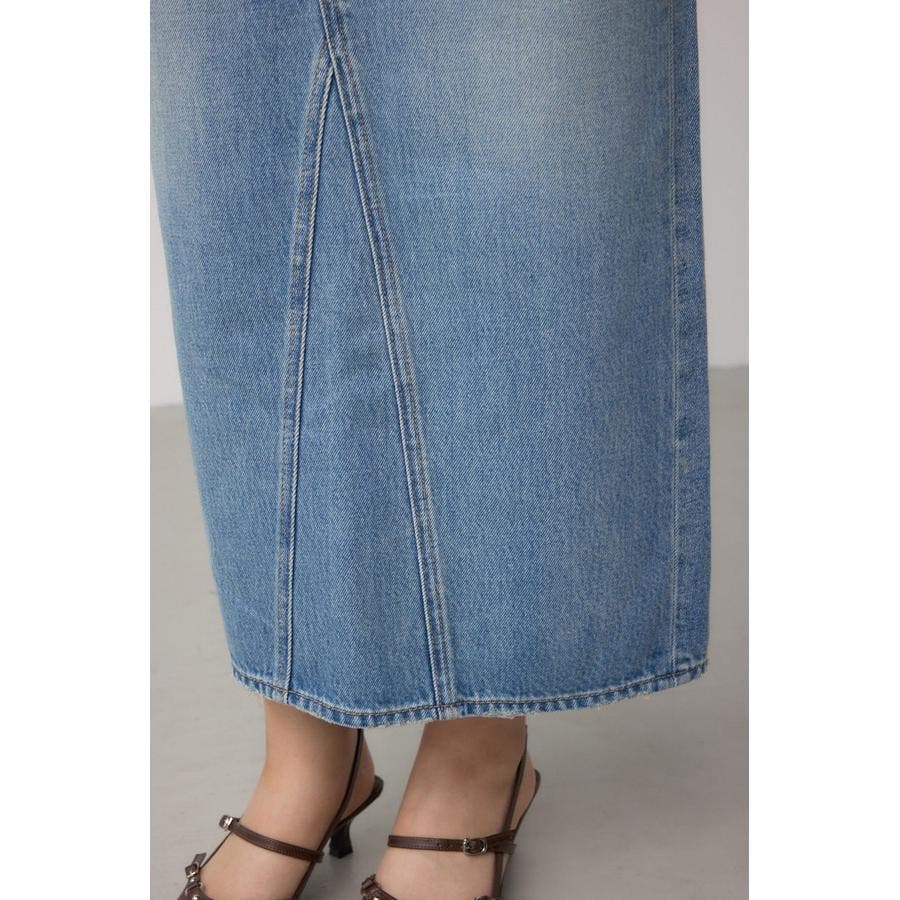 縦のラインをすっきり強調し、スタイルアップを叶えるストレートシルエットのデニムスカート。