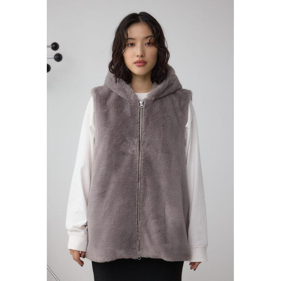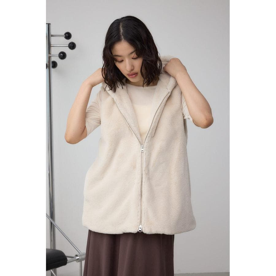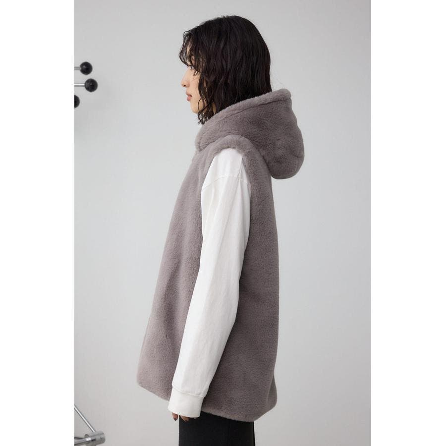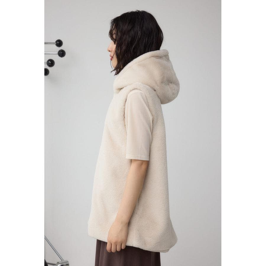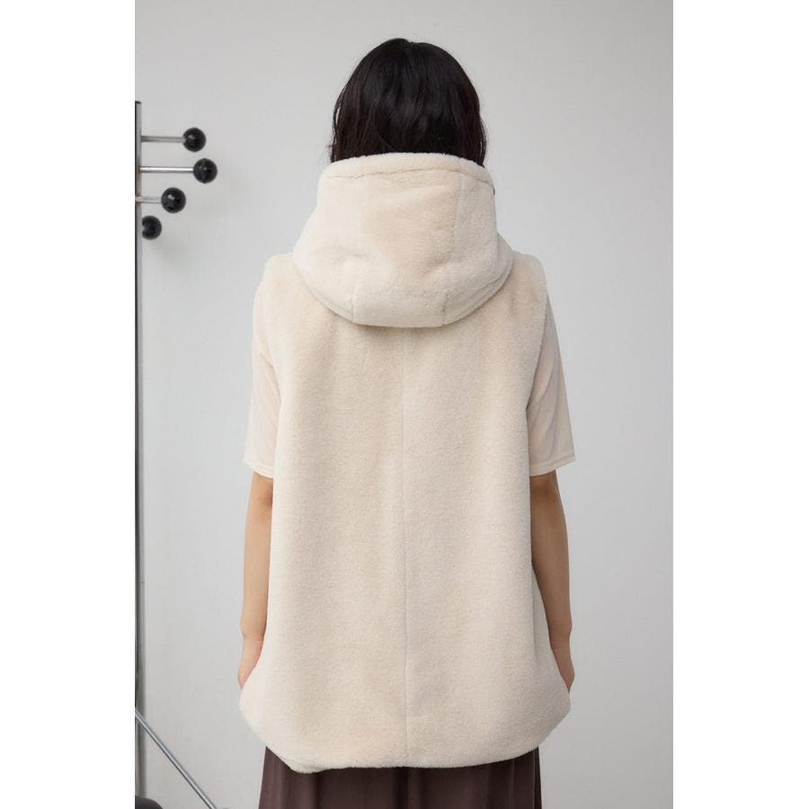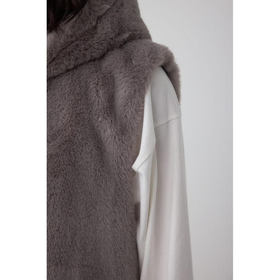 軽く、滑らかな風合いのフェイクファー素材を使用したフーディーベスト。