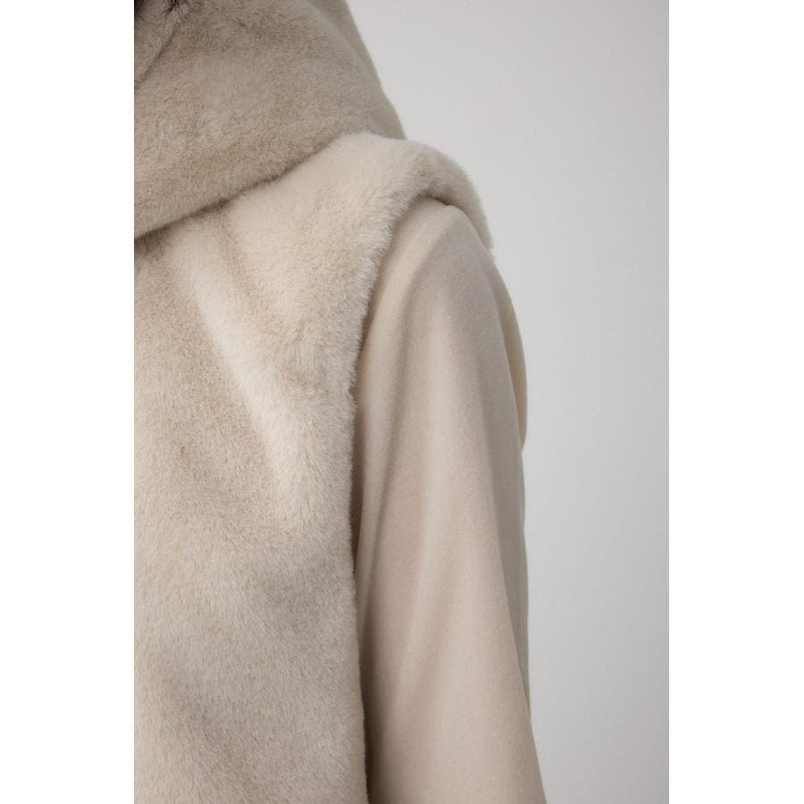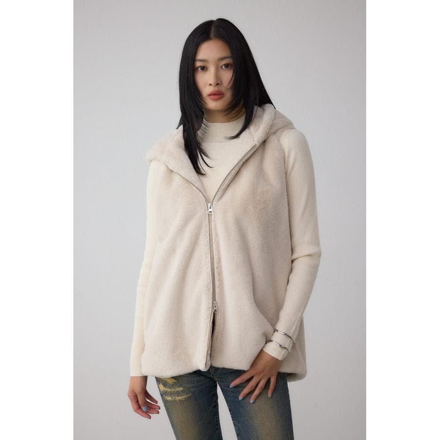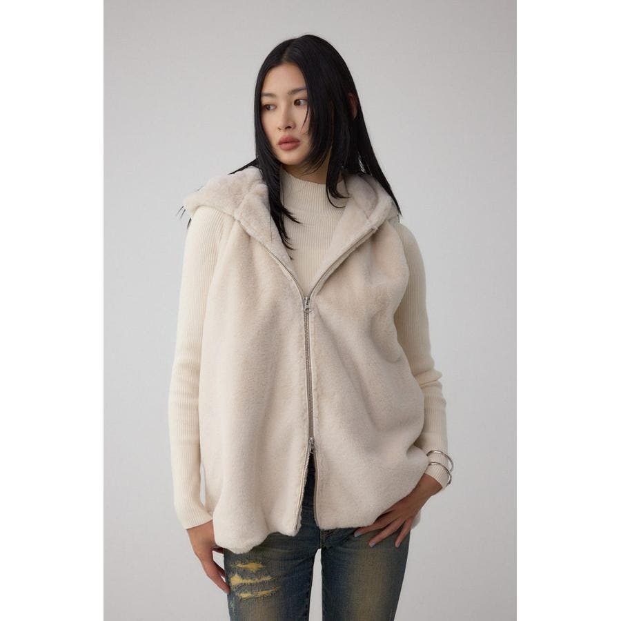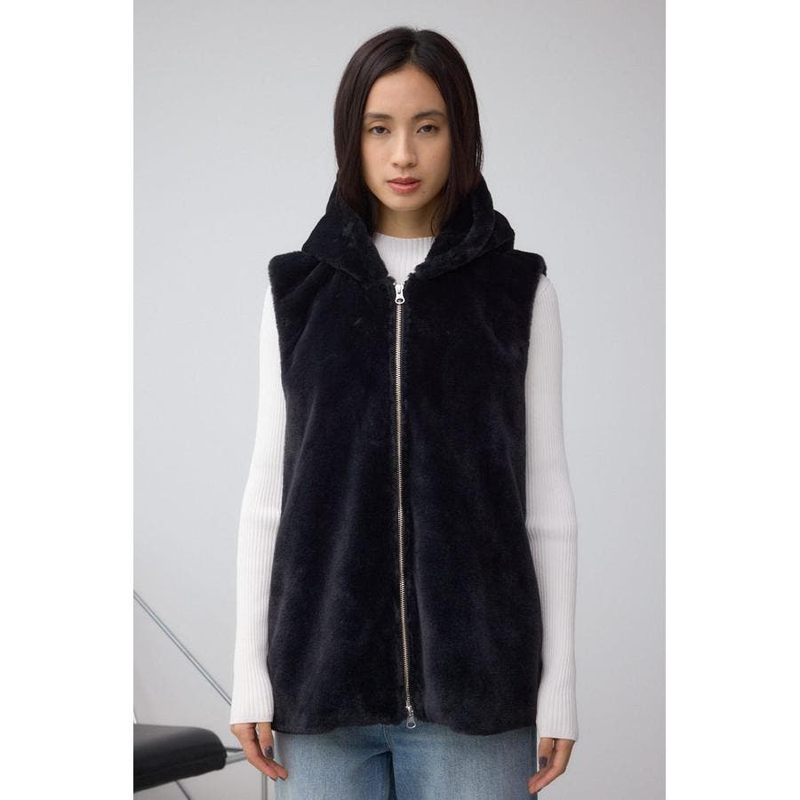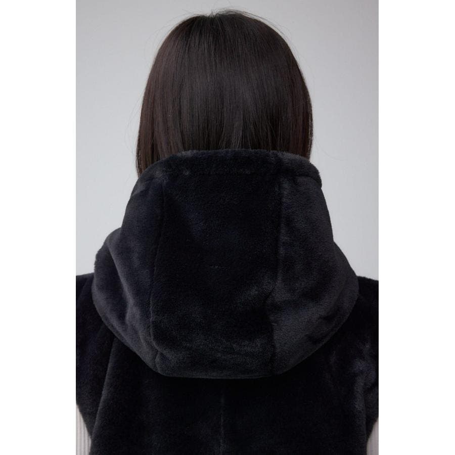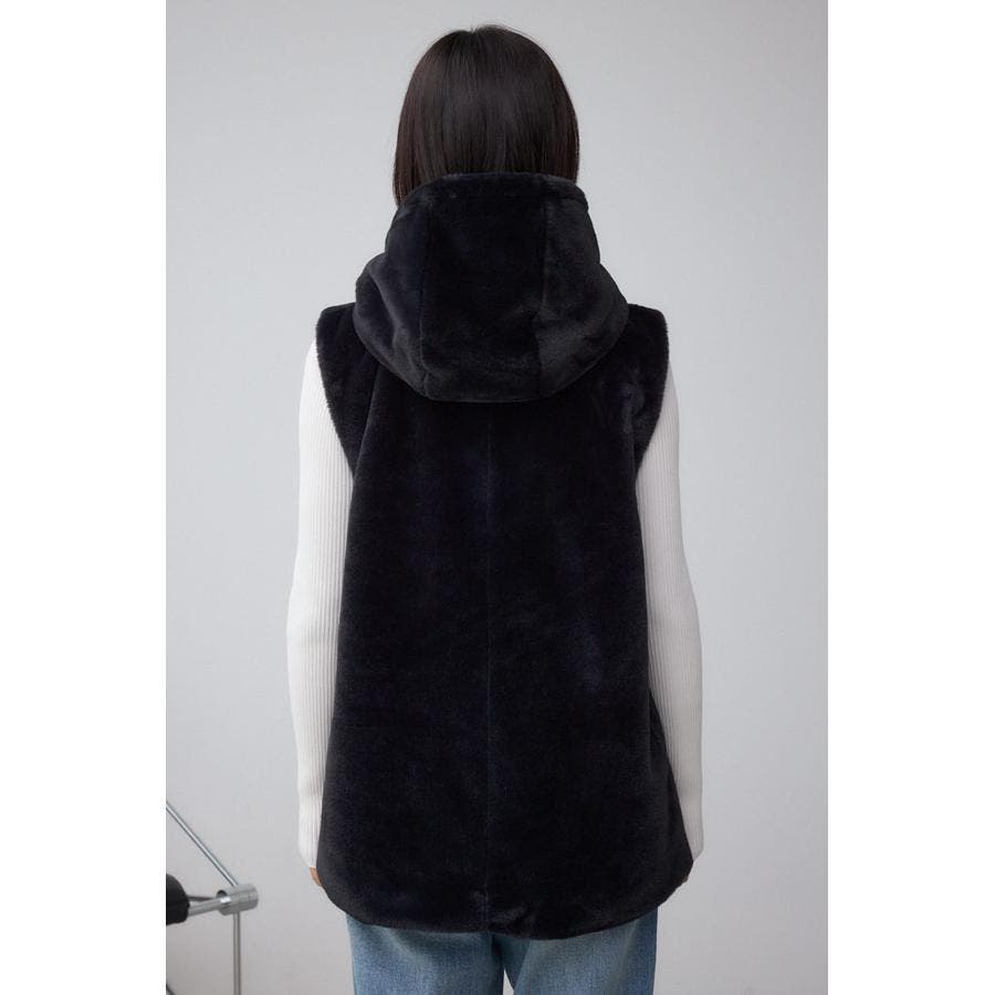 軽く、滑らかな風合いのフェイクファー素材を使用したフーディーベスト。