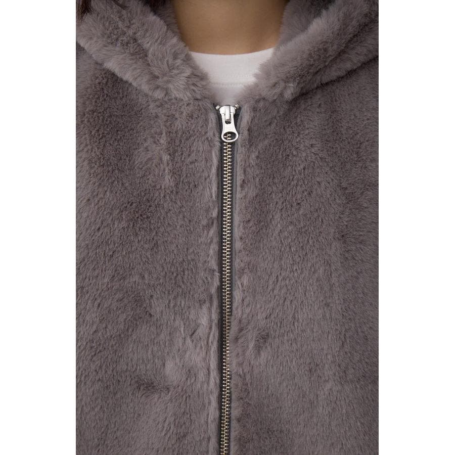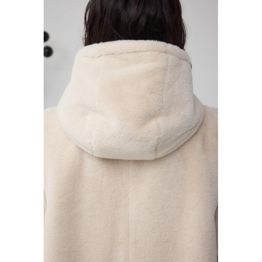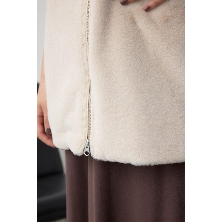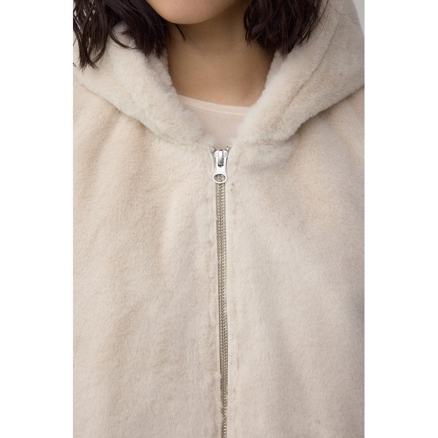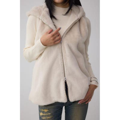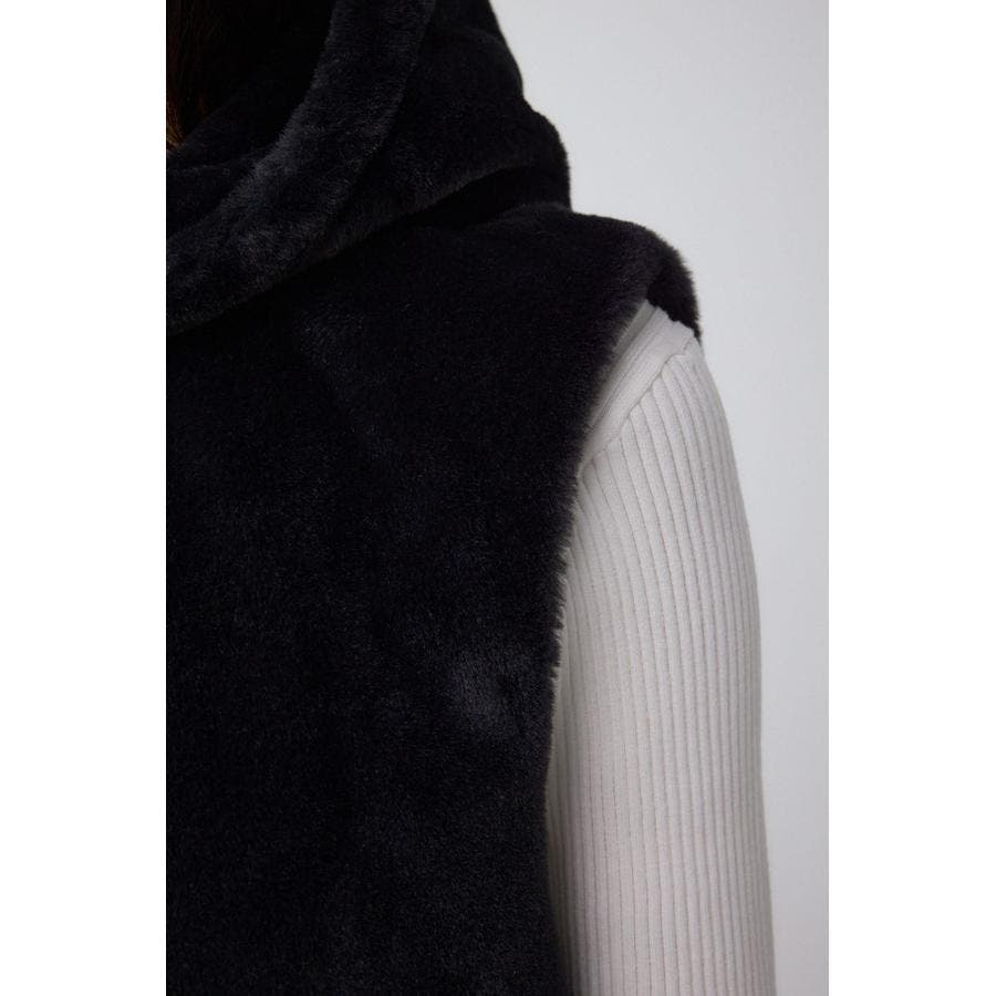 軽く、滑らかな風合いのフェイクファー素材を使用したフーディーベスト。