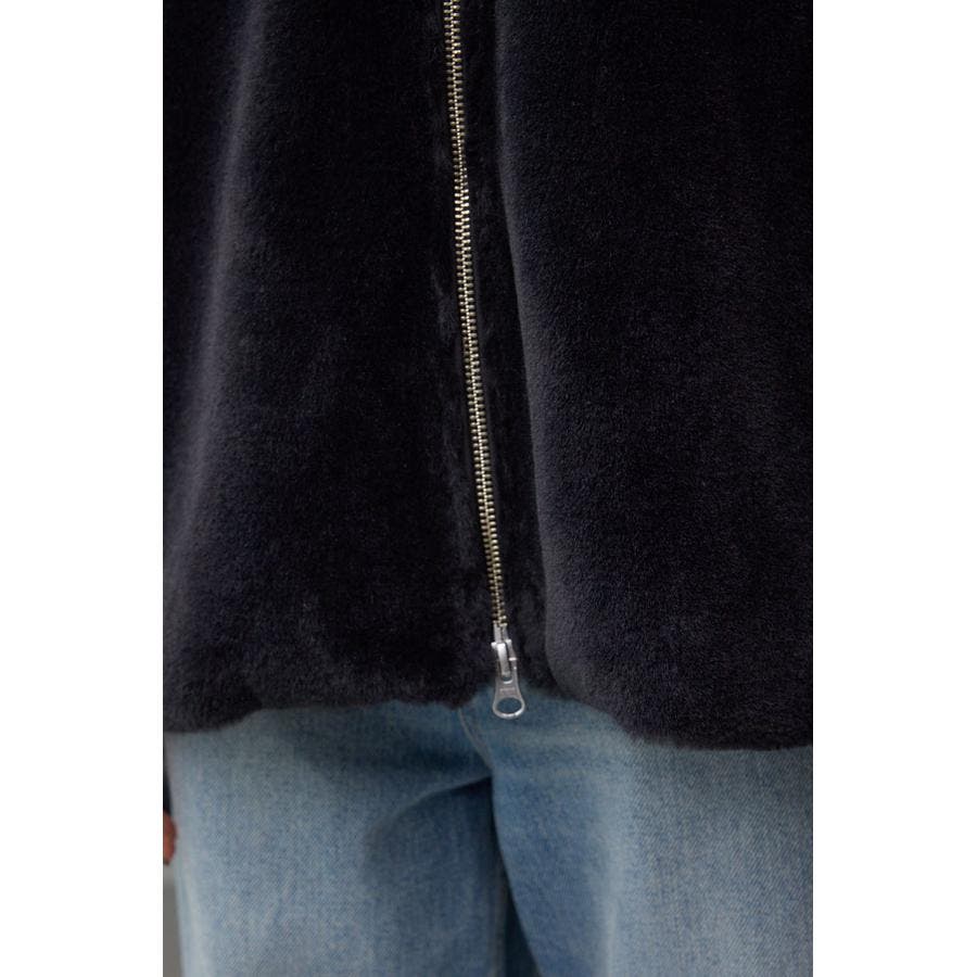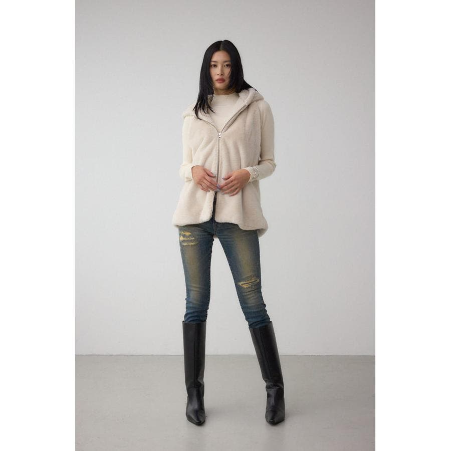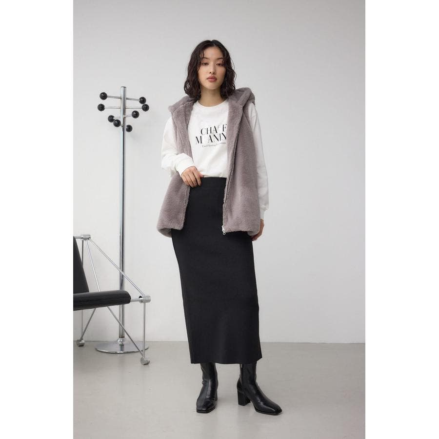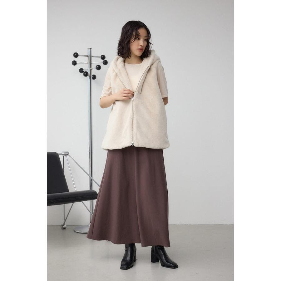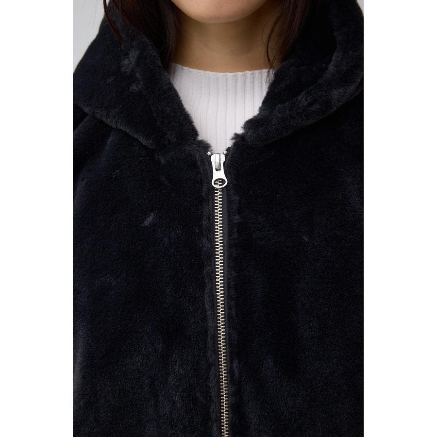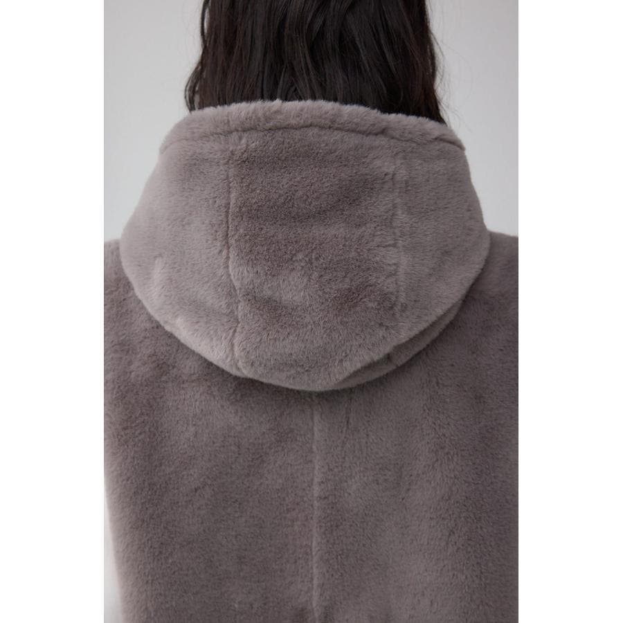 軽く、滑らかな風合いのフェイクファー素材を使用したフーディーベスト。