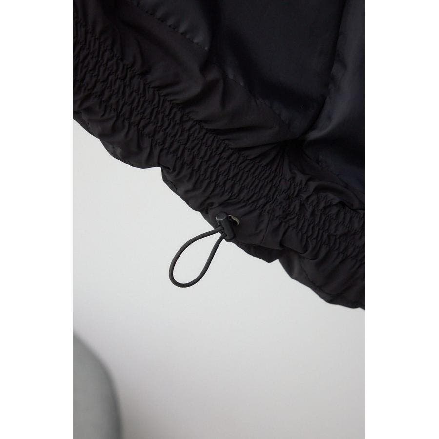 裾のドローコードを絞って着用すると、よりきれいなフォルムが出ます。