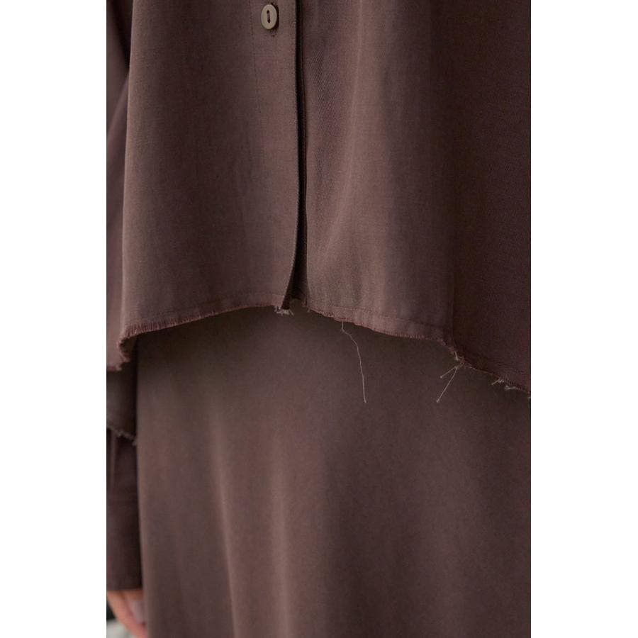 タンクやTシャツの上から羽織りとしての着用はもちろん、同素材の250IAB31-124H セミフレアスカートとのセットアップ着用もおすすめです。