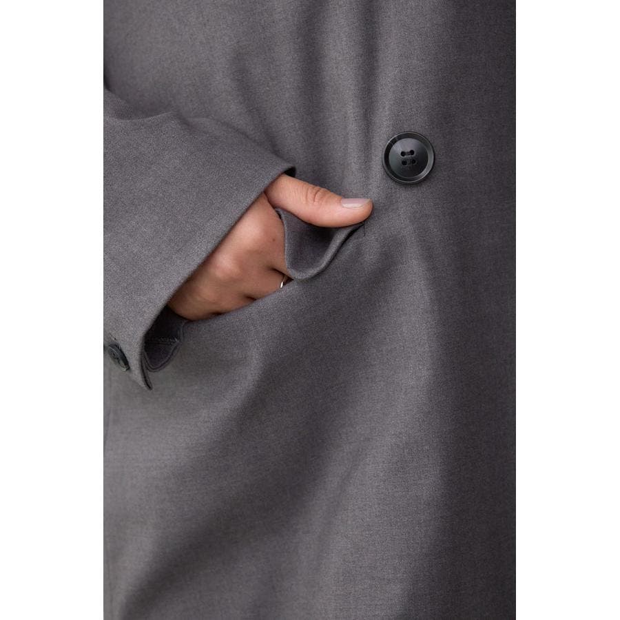 ゆったりとしたボックスシルエットのダブルブレストデザイン。