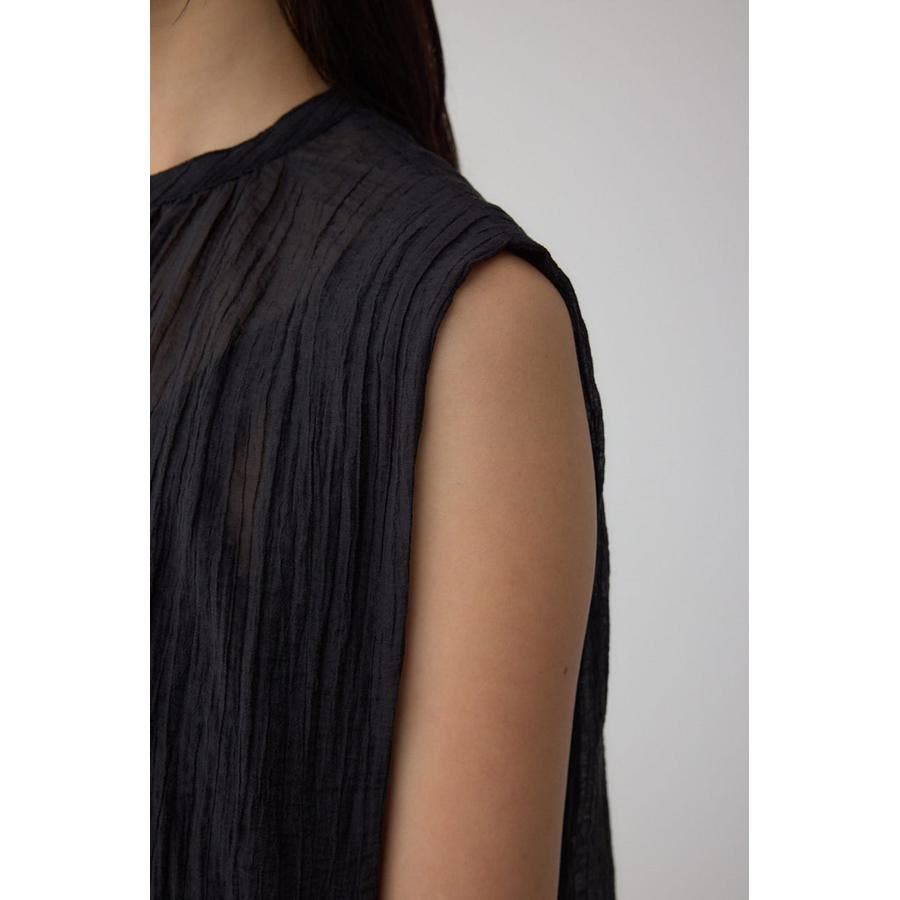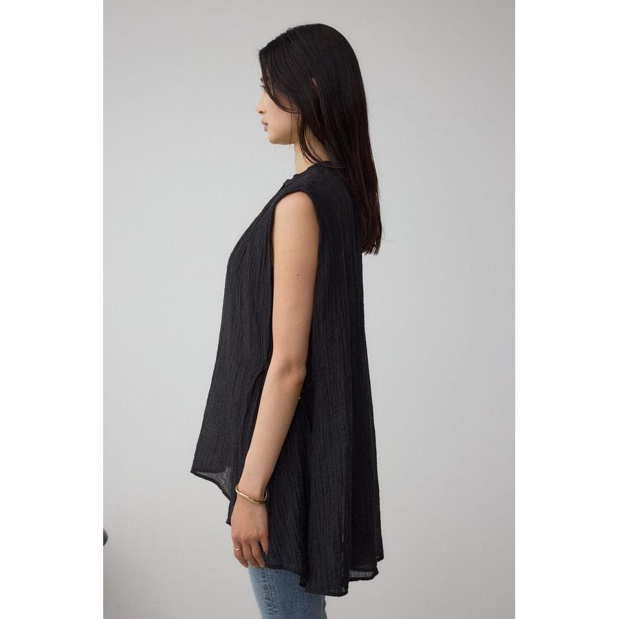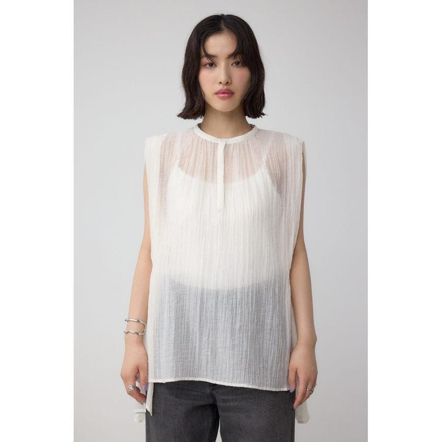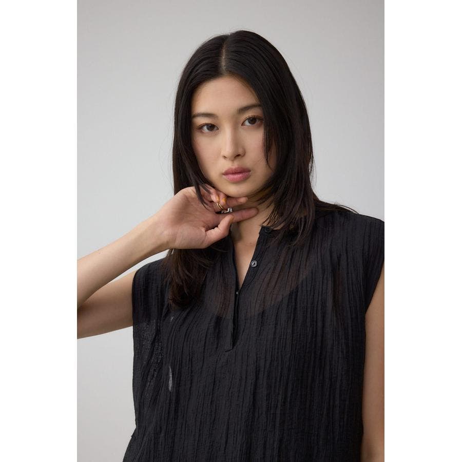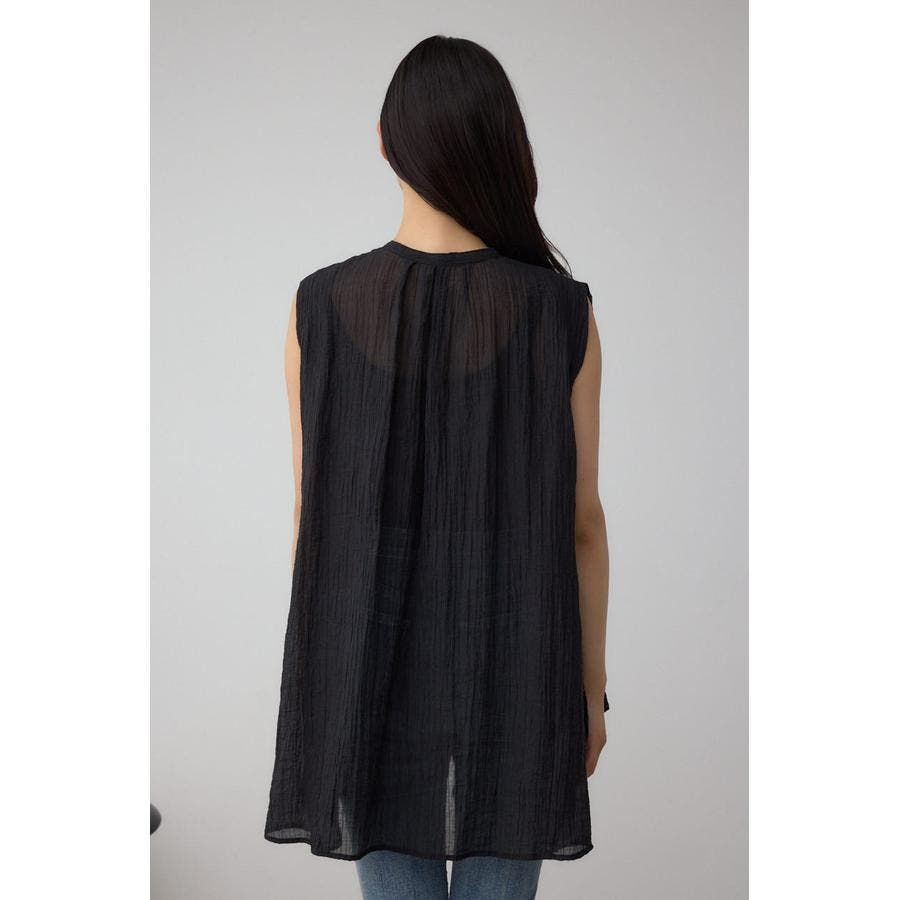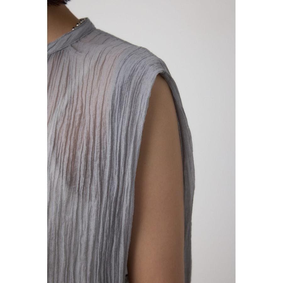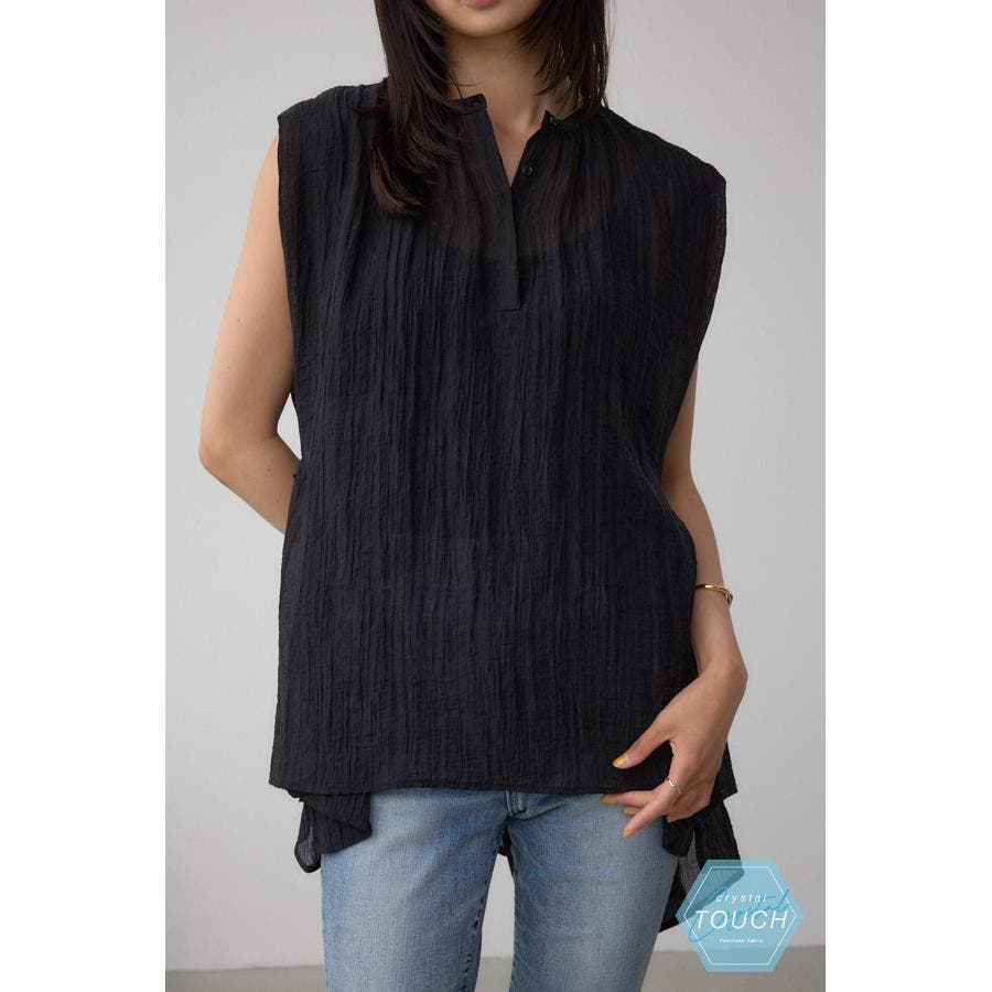 シアー感が少しある接触冷感機能素材を使用したノースリーブブラウス。