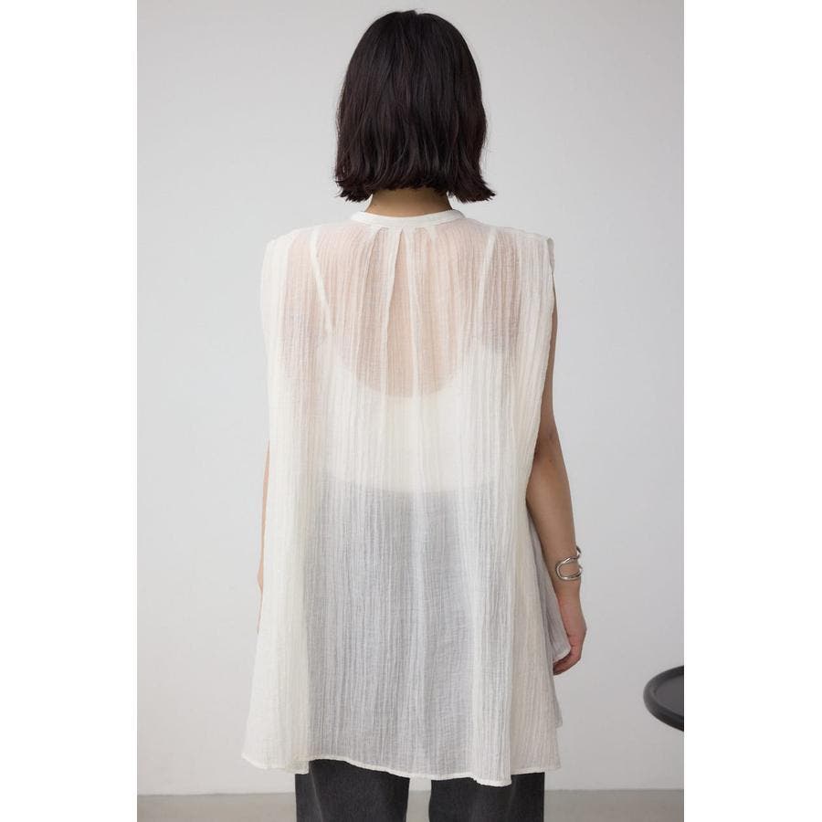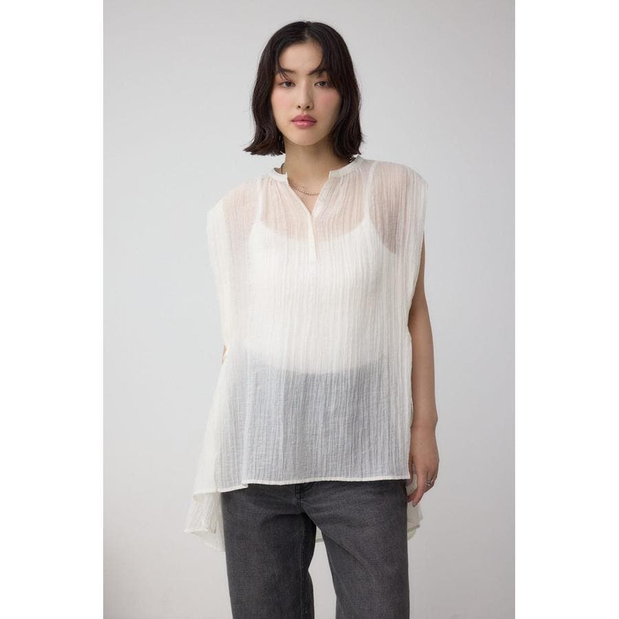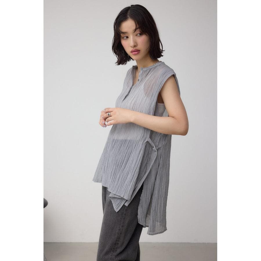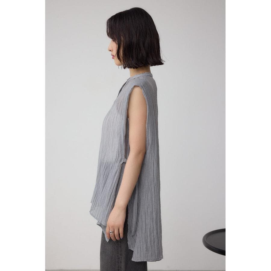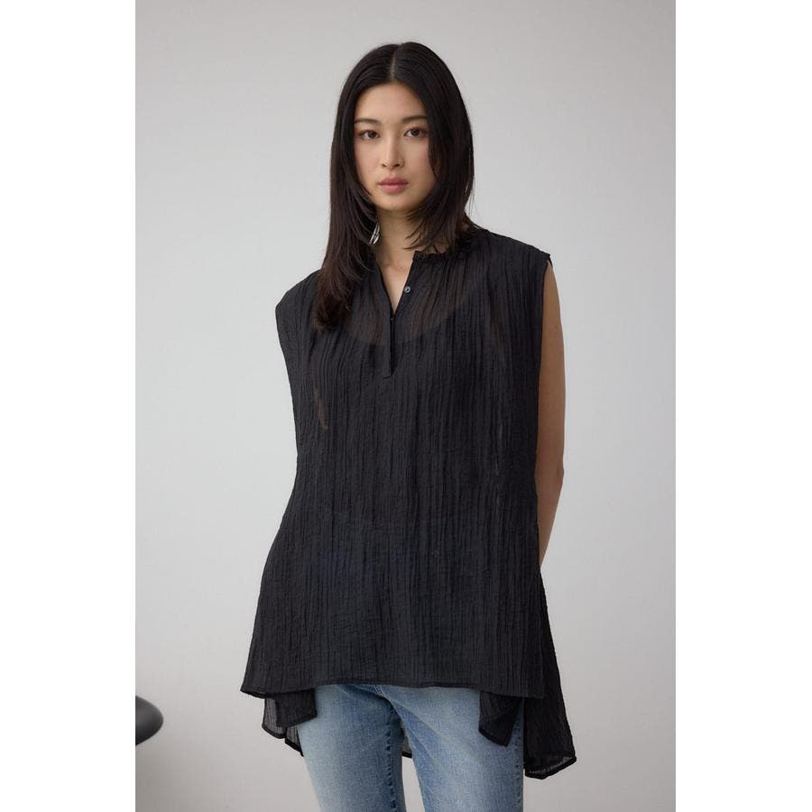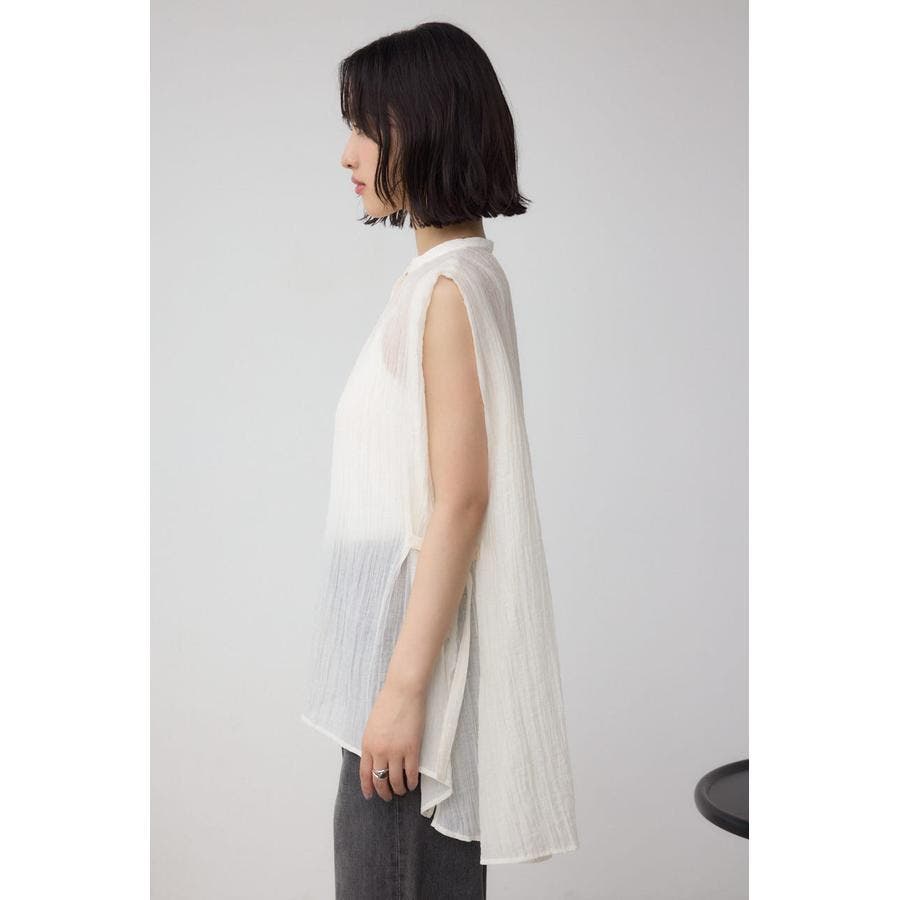 シアー感が少しある接触冷感機能素材を使用したノースリーブブラウス。
